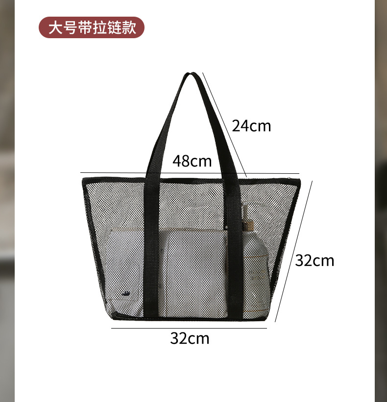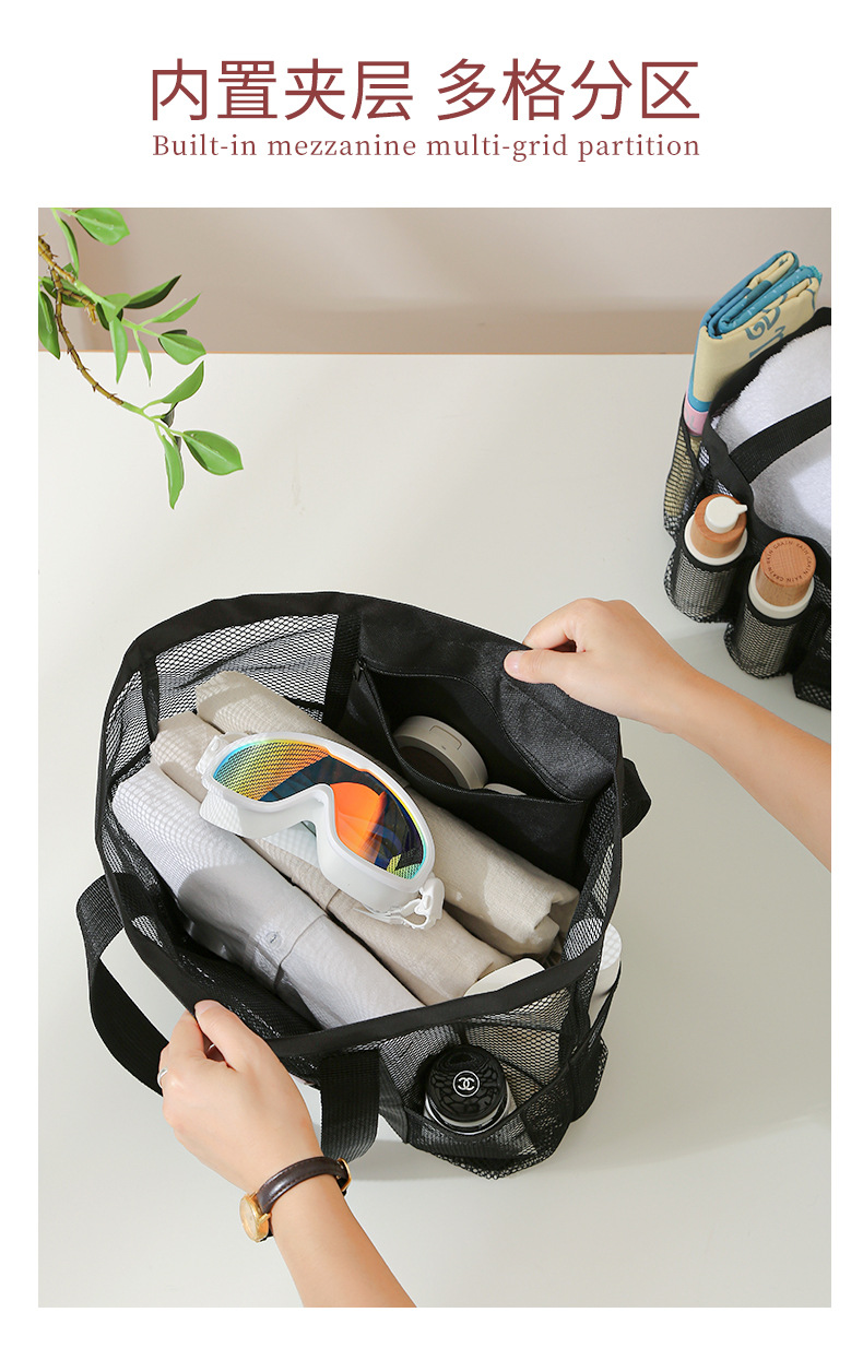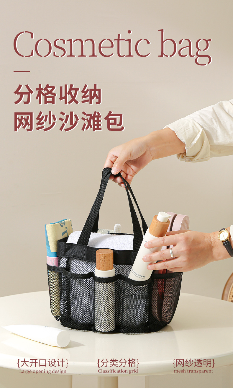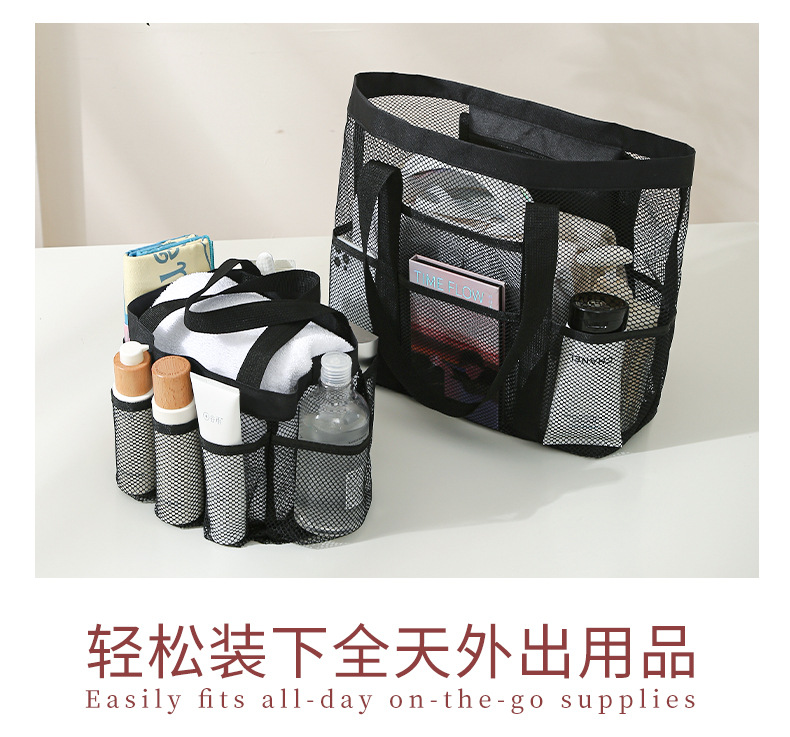 网纱洗漱包户外透气可视化妆包便携大容量沙滩包可折叠手提收纳袋