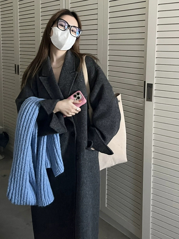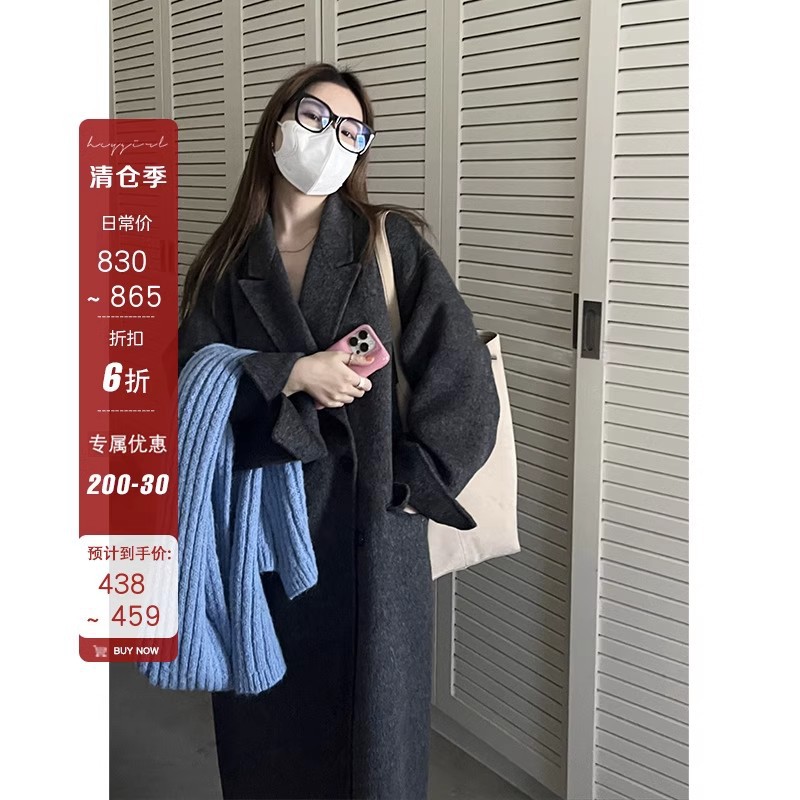 HEYGIRL黑哥 挪威冬天经典廓形羊毛双面呢子大衣女冬双面羊绒大衣