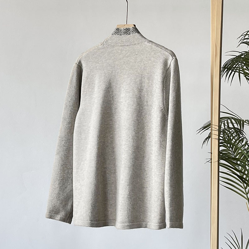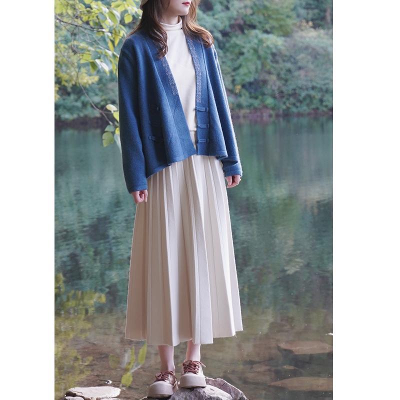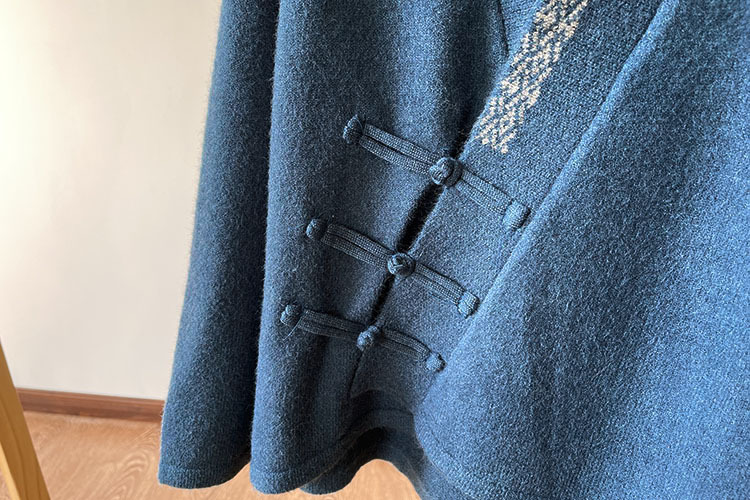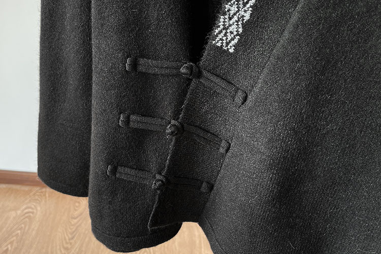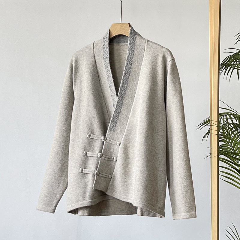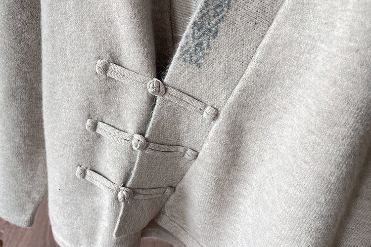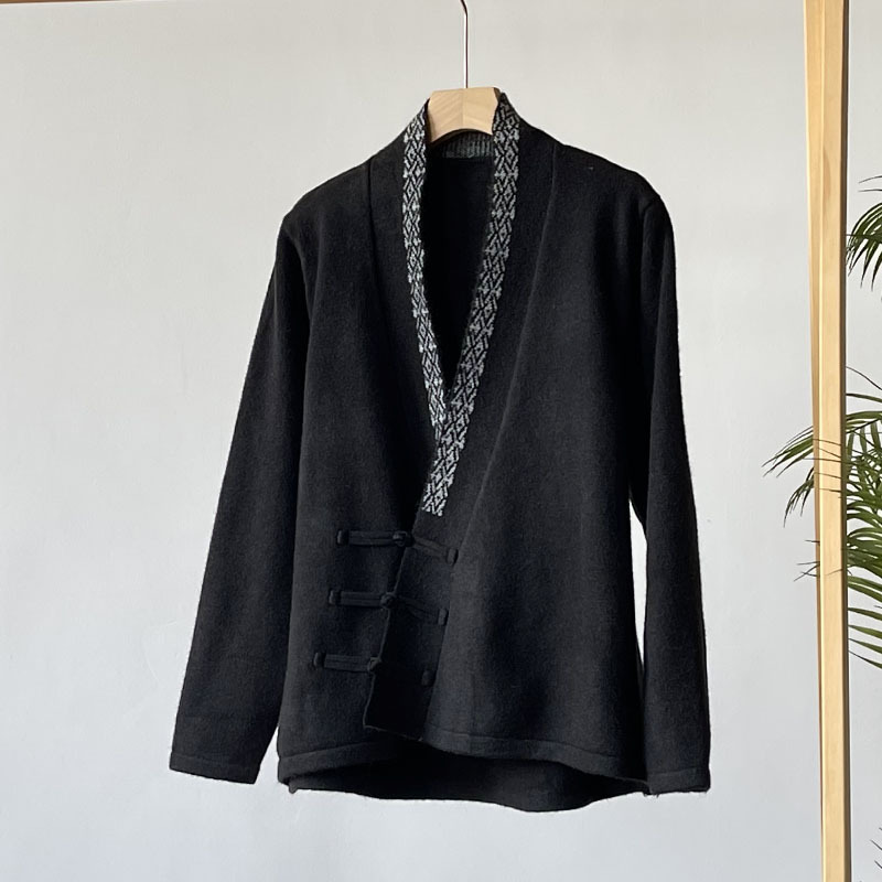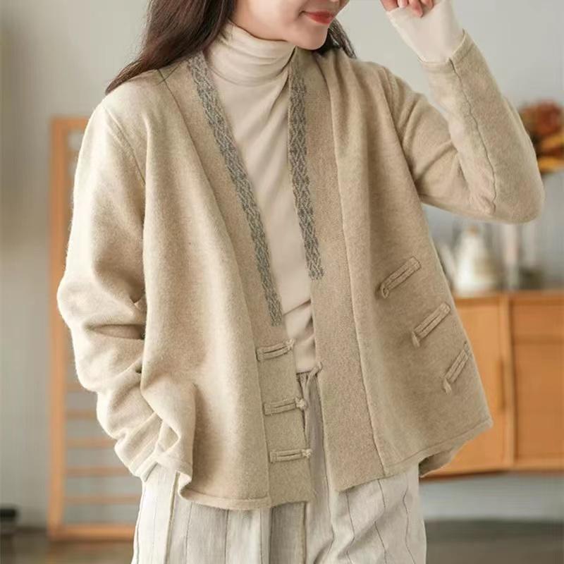 国风毛衣 V领针织外套新款冬季女装中式斜襟盘扣毛衣开衫50869
