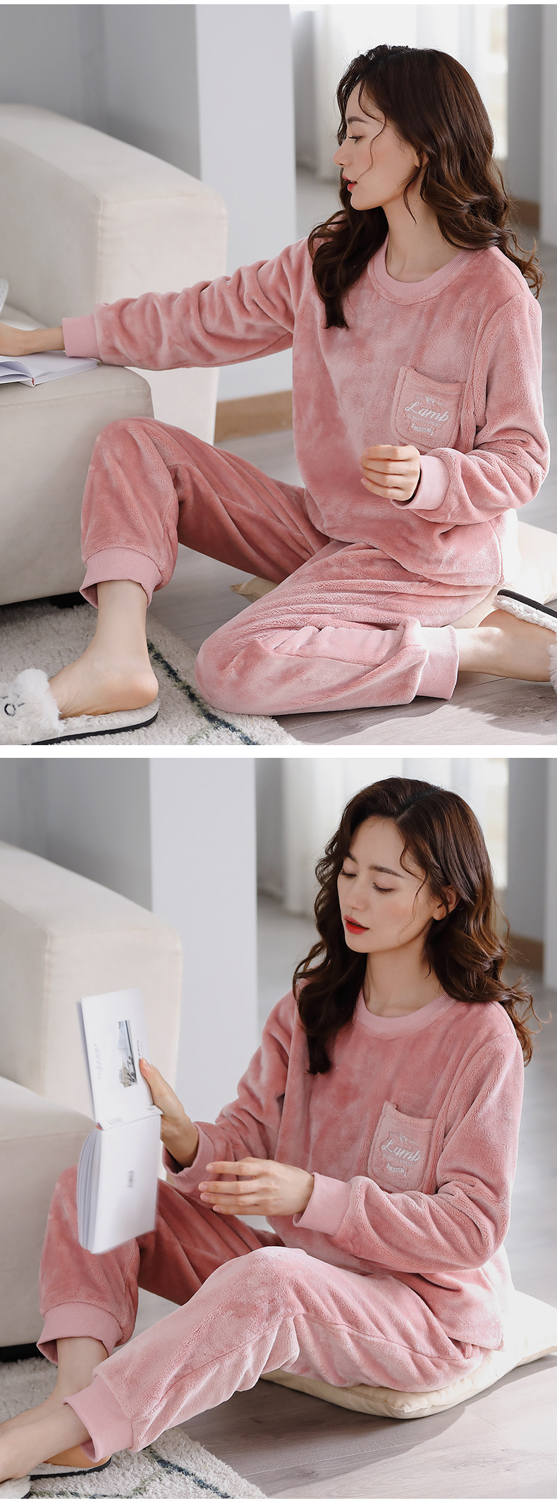 冬季睡衣女士法兰绒长袖长裤套装秋冬可爱少女保暖珊瑚绒家居服