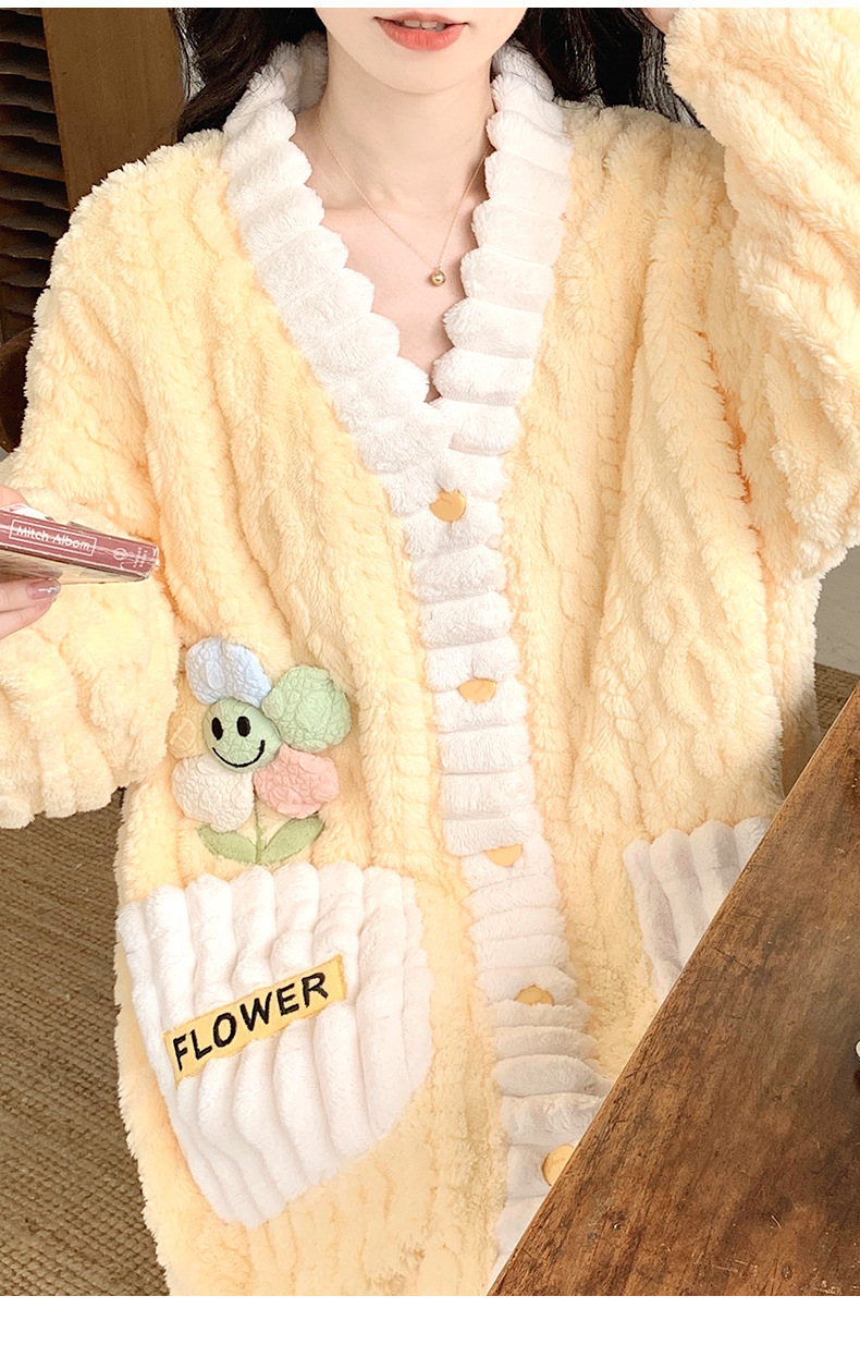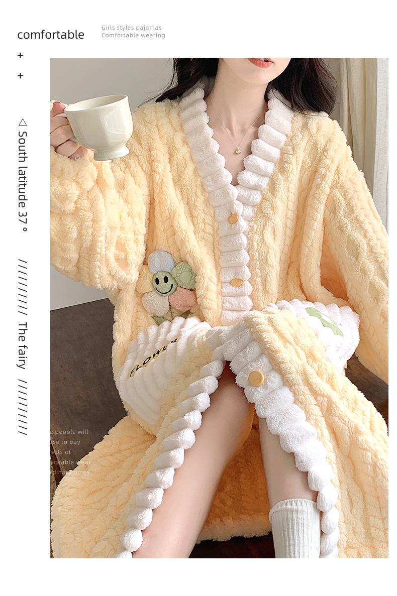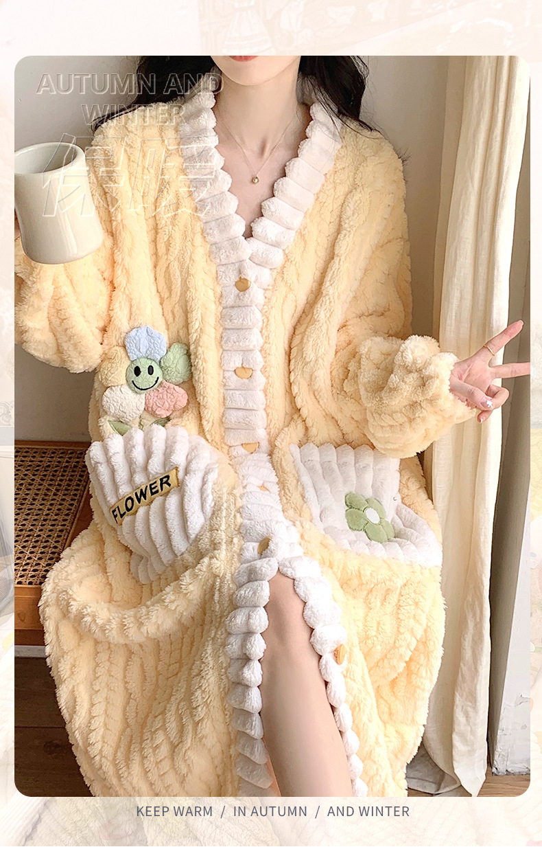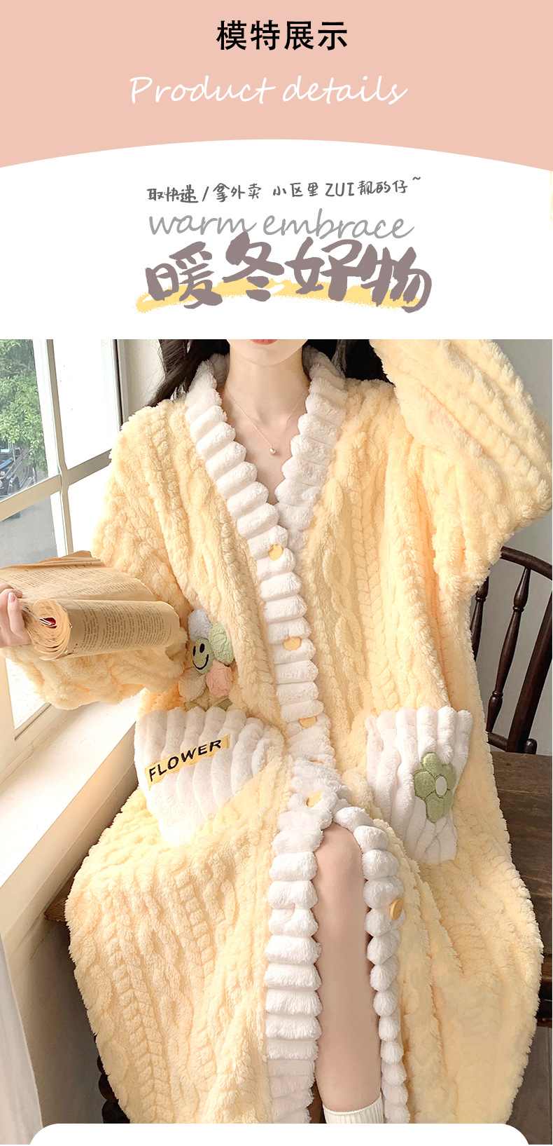 珊瑚绒睡袍女秋冬季睡裙长款冬款大码加绒加厚法兰绒浴袍睡衣外套