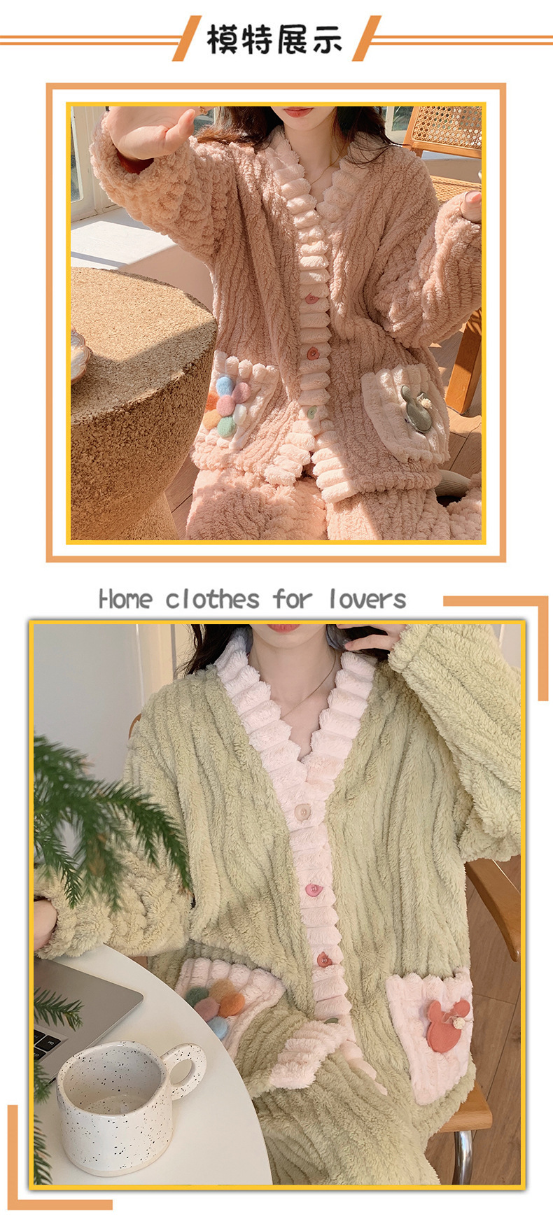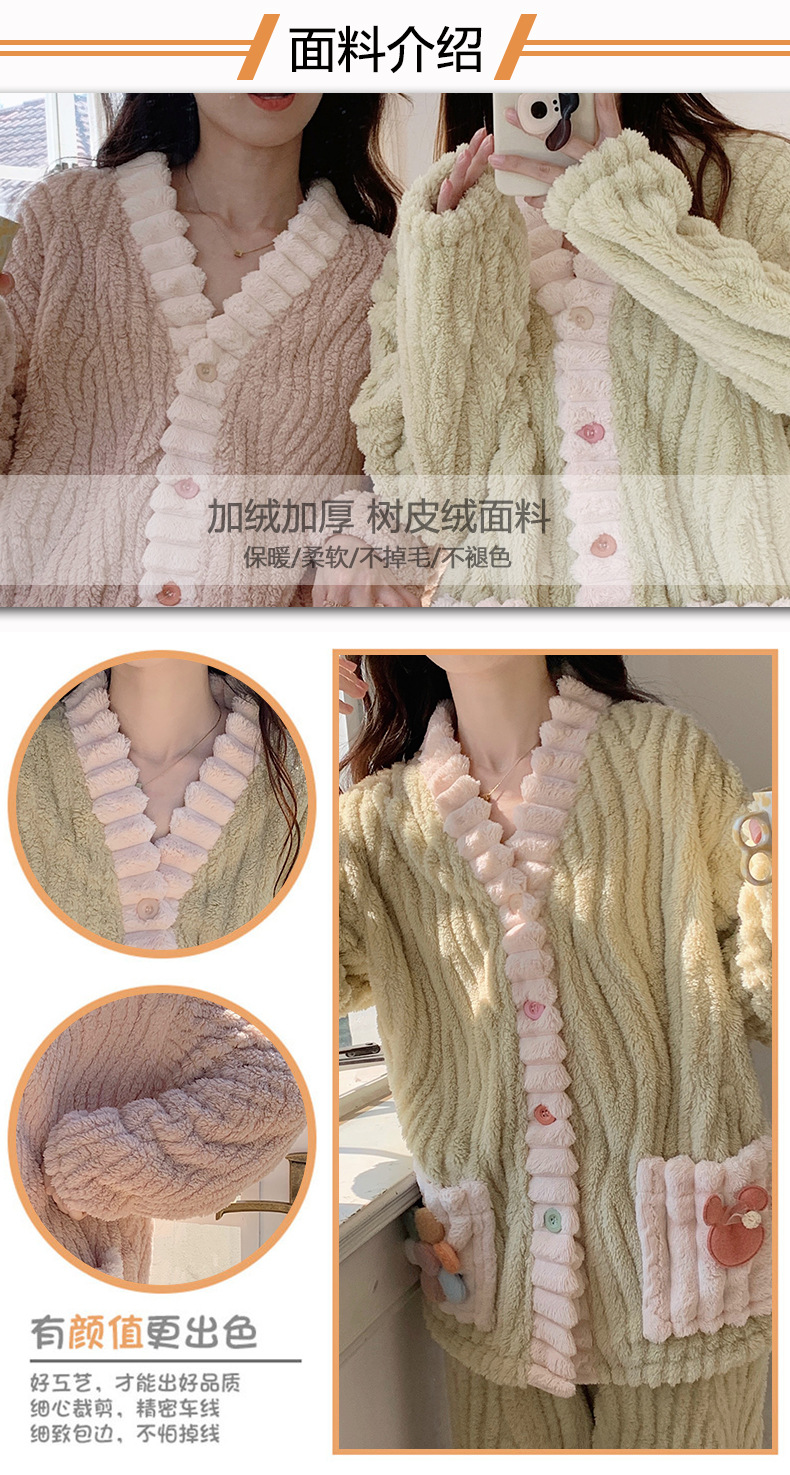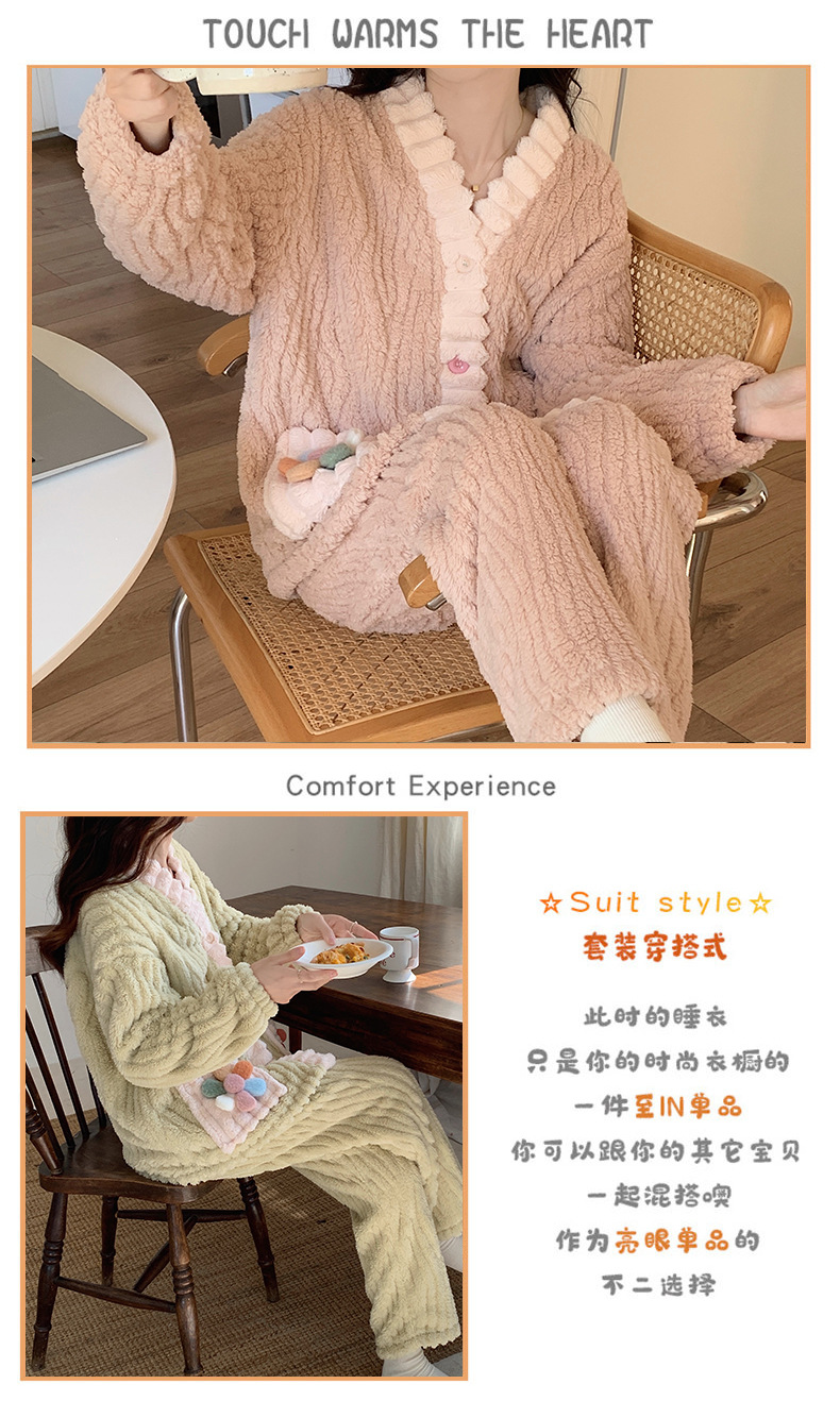冬季可爱睡衣女提花绒甜美风加厚家居服保暖套装可外穿2023年新款
