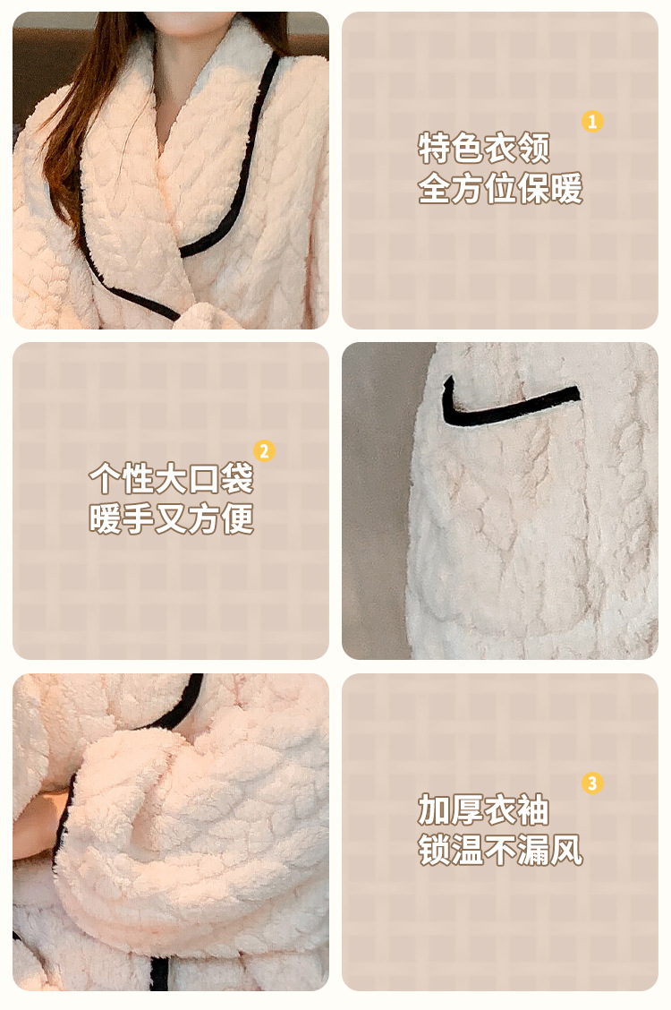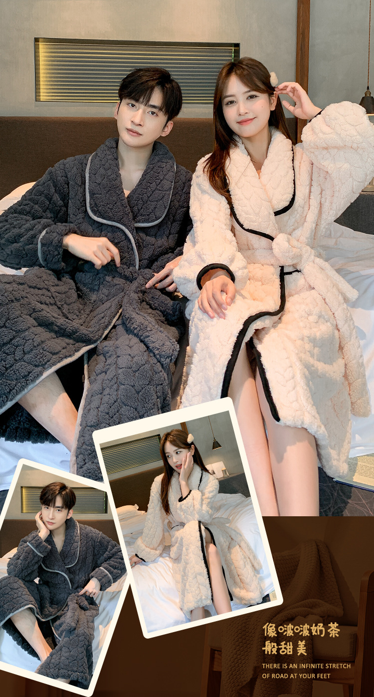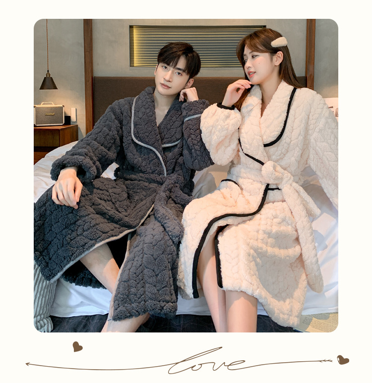 冬季2023年新款珊瑚绒情侣睡袍加绒加厚法兰绒保暖家居服套装