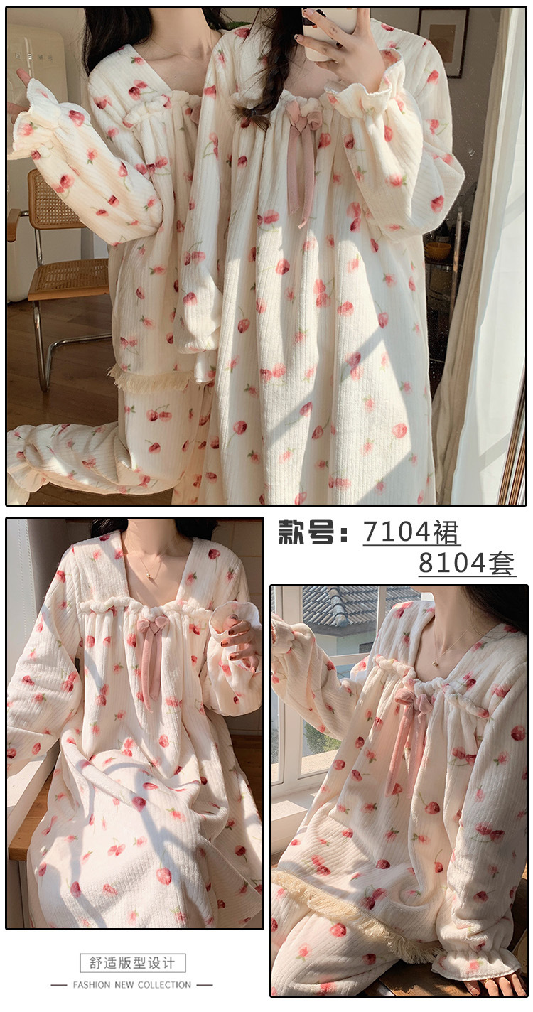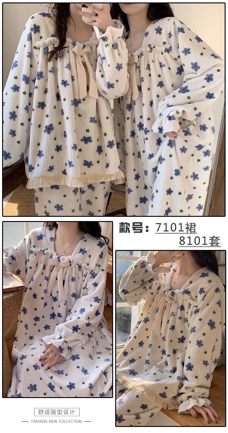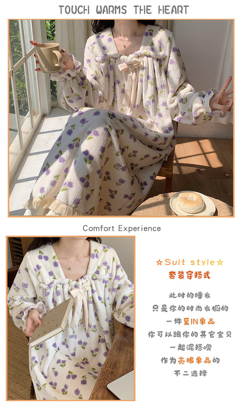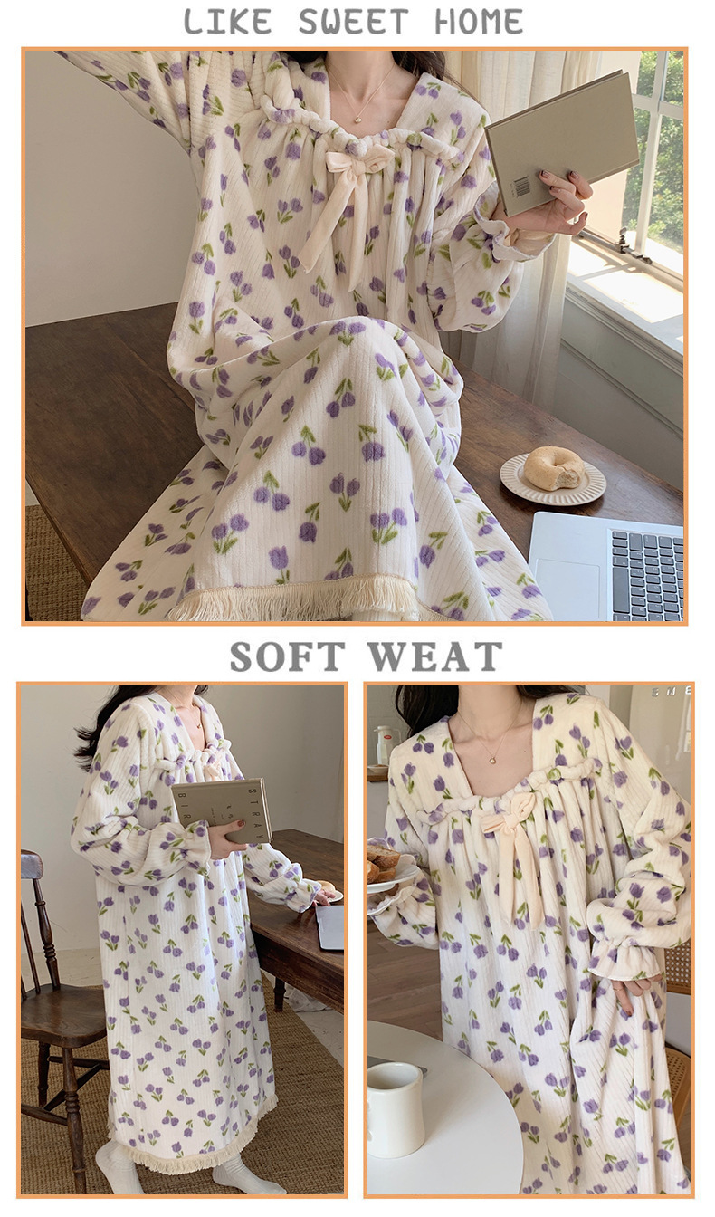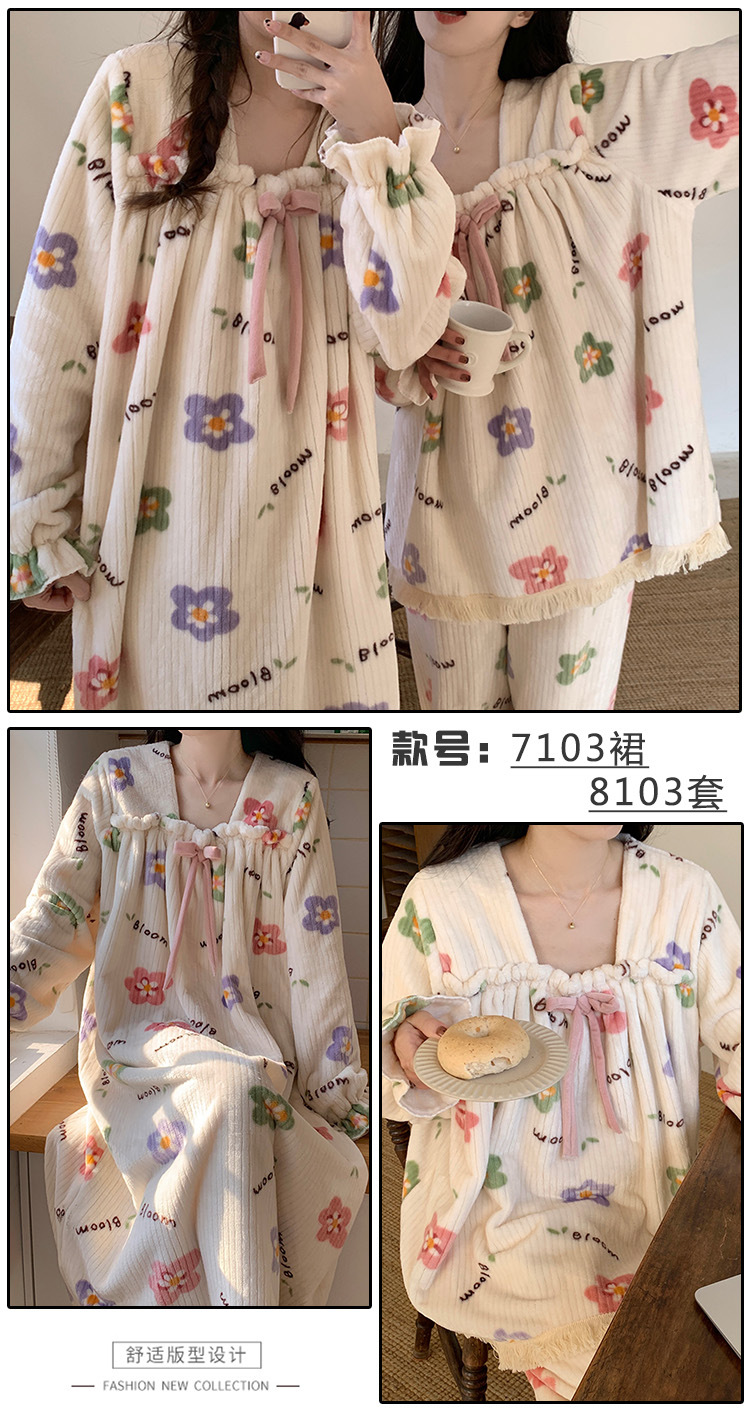 冬季新款珊瑚绒睡裙可爱公主风加厚保暖法兰绒女士长裙舒适家居服