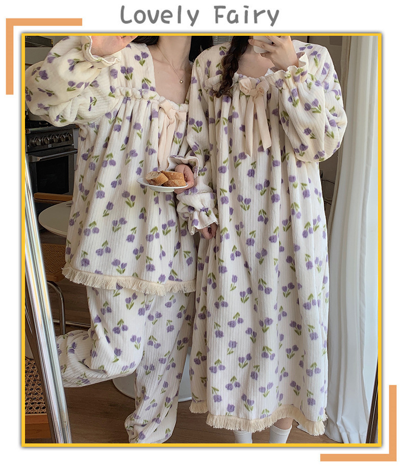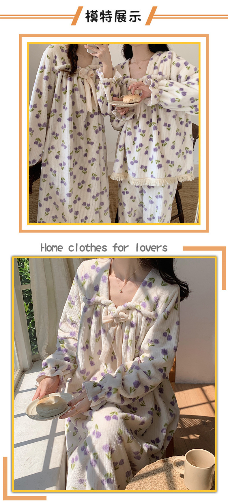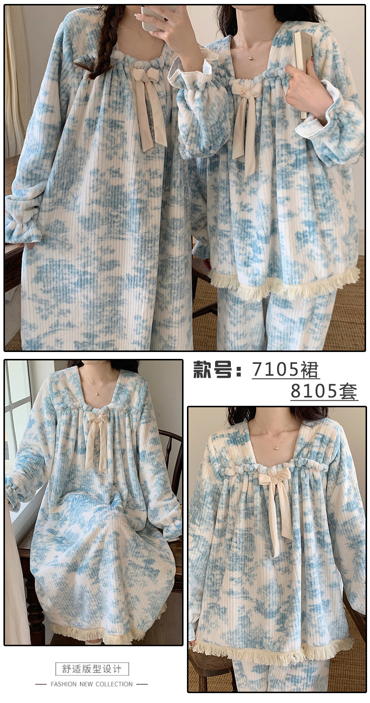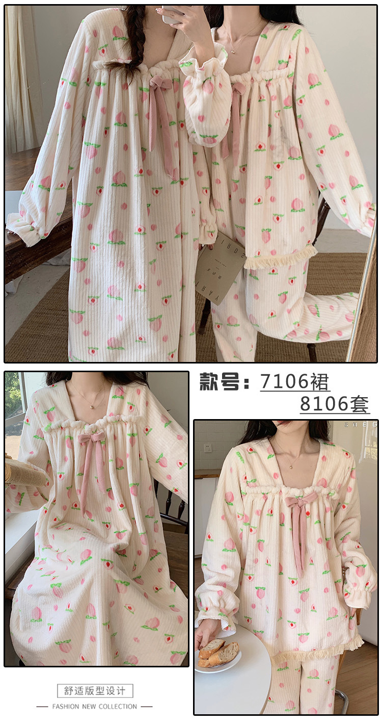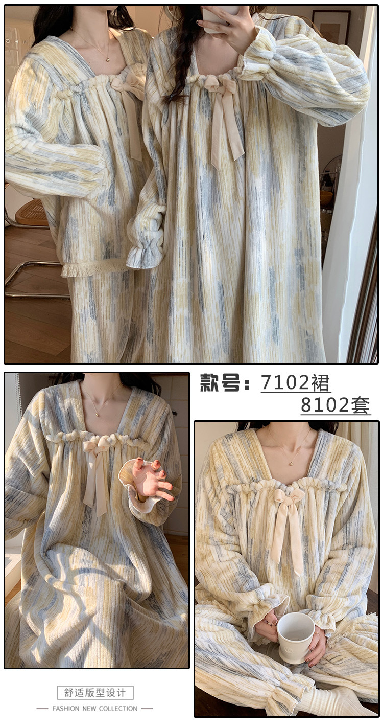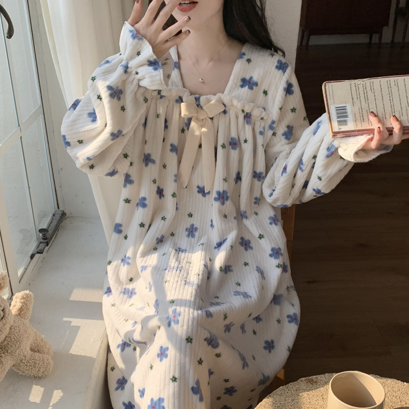 冬季新款珊瑚绒睡裙可爱公主风加厚保暖法兰绒女士长裙舒适家居服