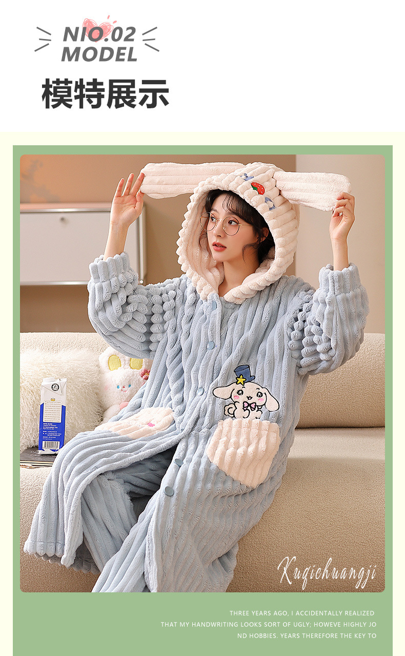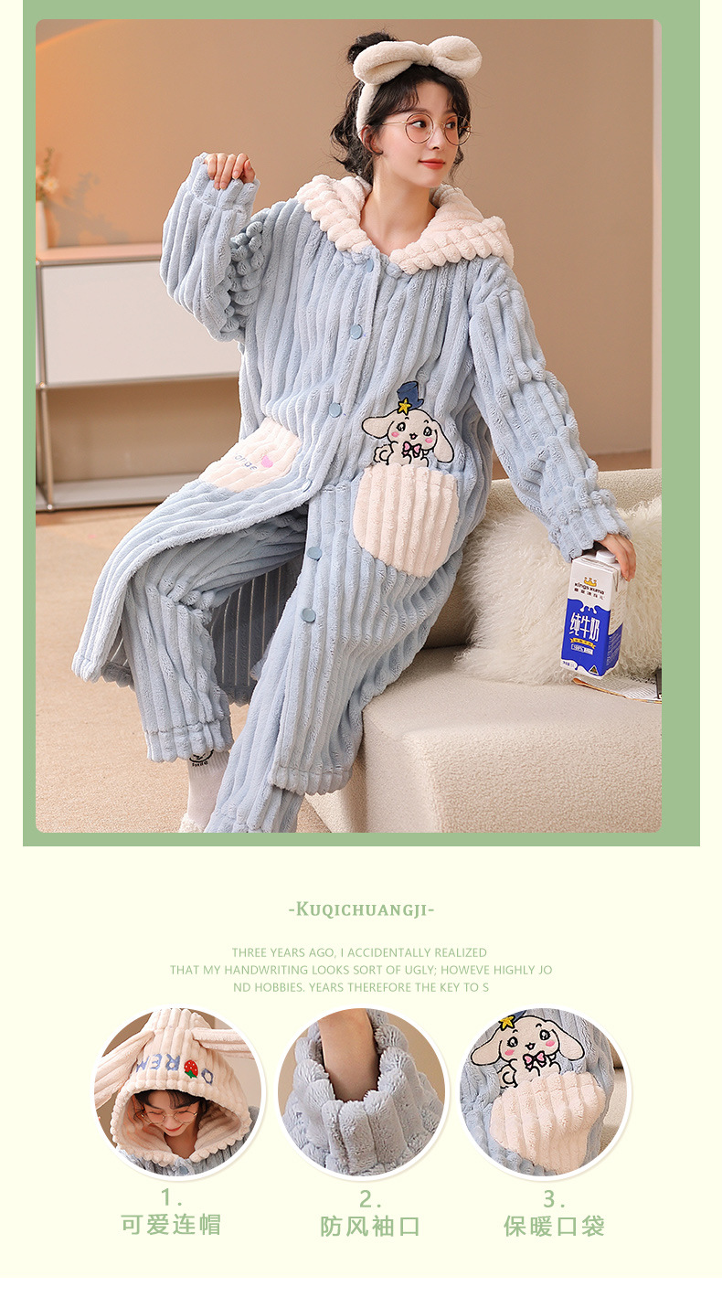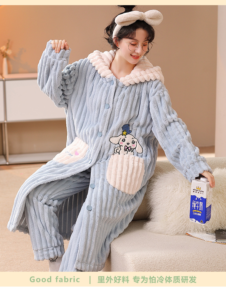 珊瑚绒睡袍女春秋2023年新款加厚加绒法兰绒家居服睡衣女秋冬套装
