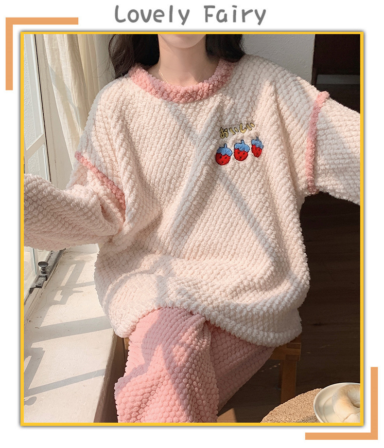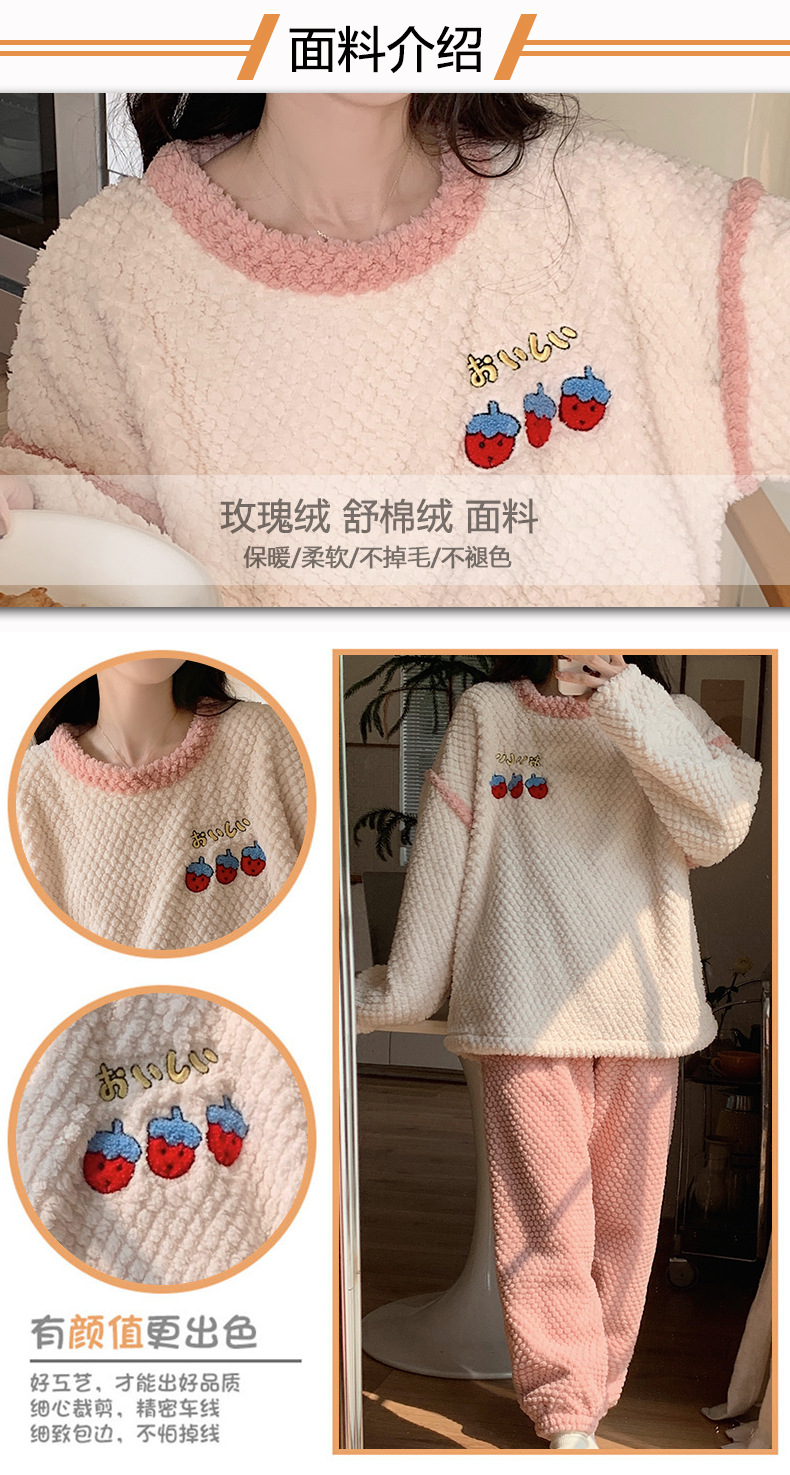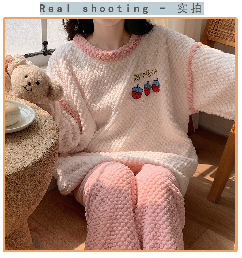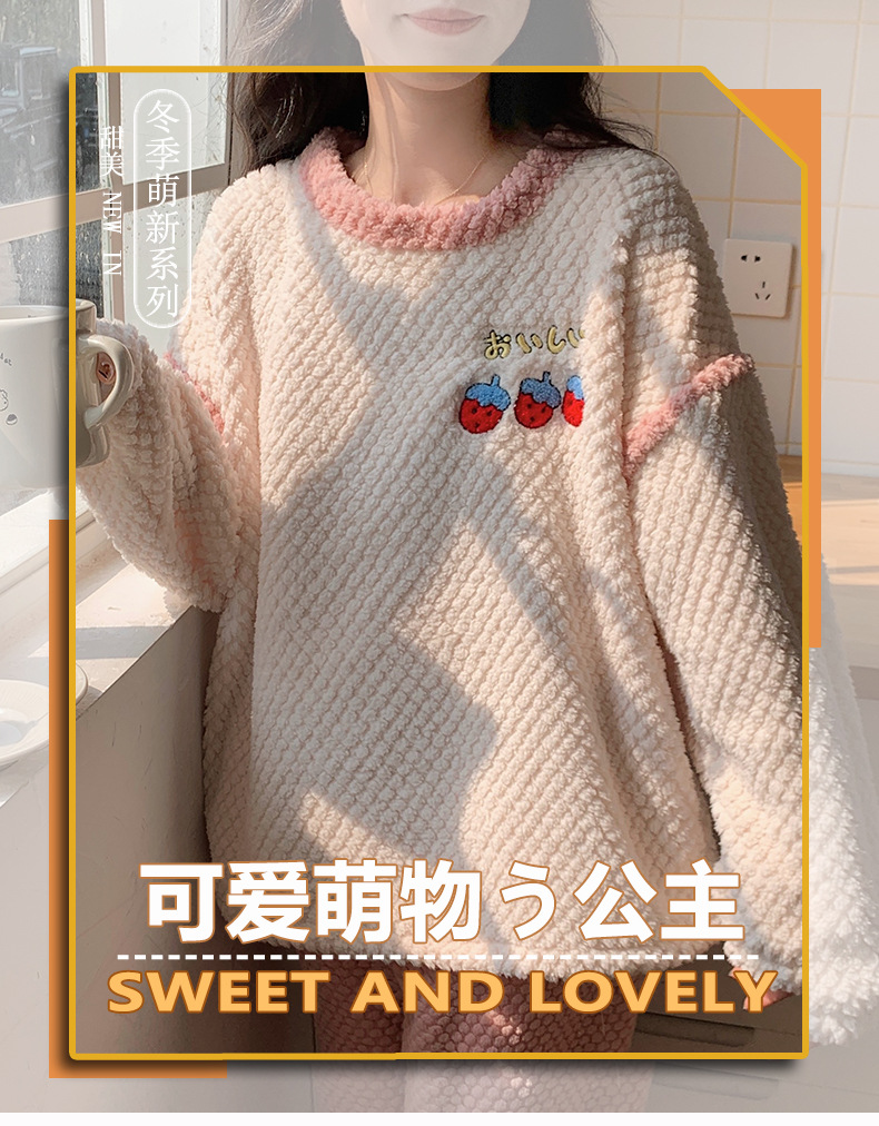 冬季珊瑚绒睡衣女可爱甜美加厚舒适感法兰绒新款家居服可外穿套装