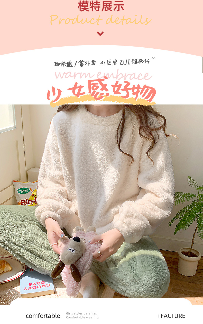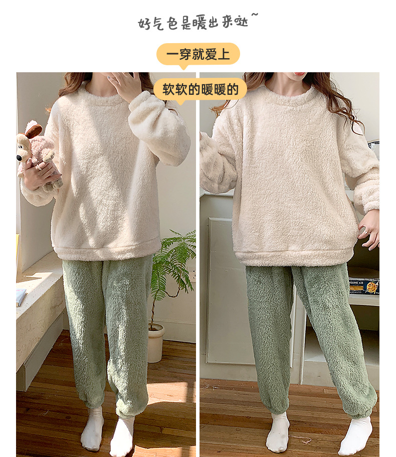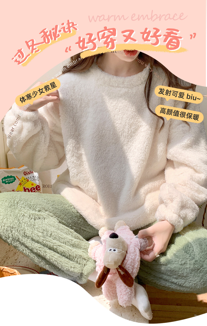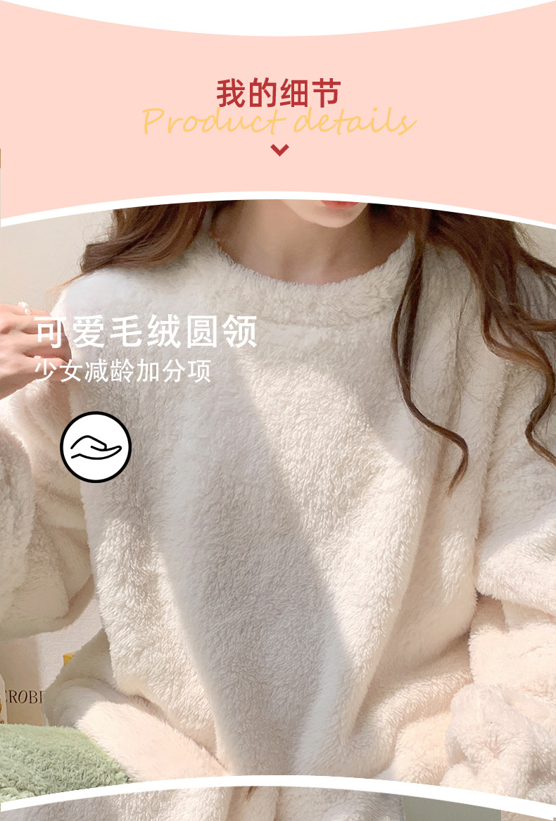 2023年可外穿睡衣女士秋冬季法兰绒加绒加厚套头珊瑚绒家居服套装