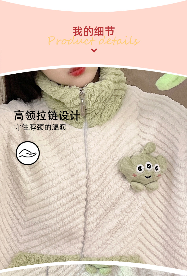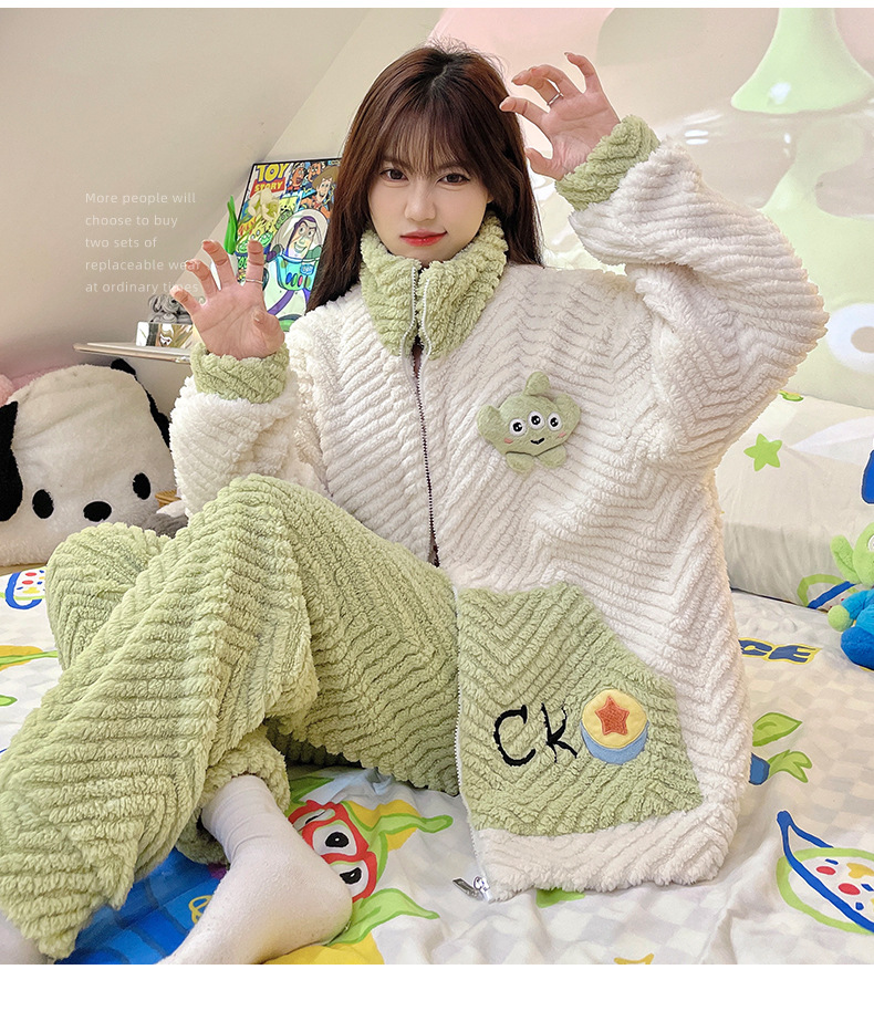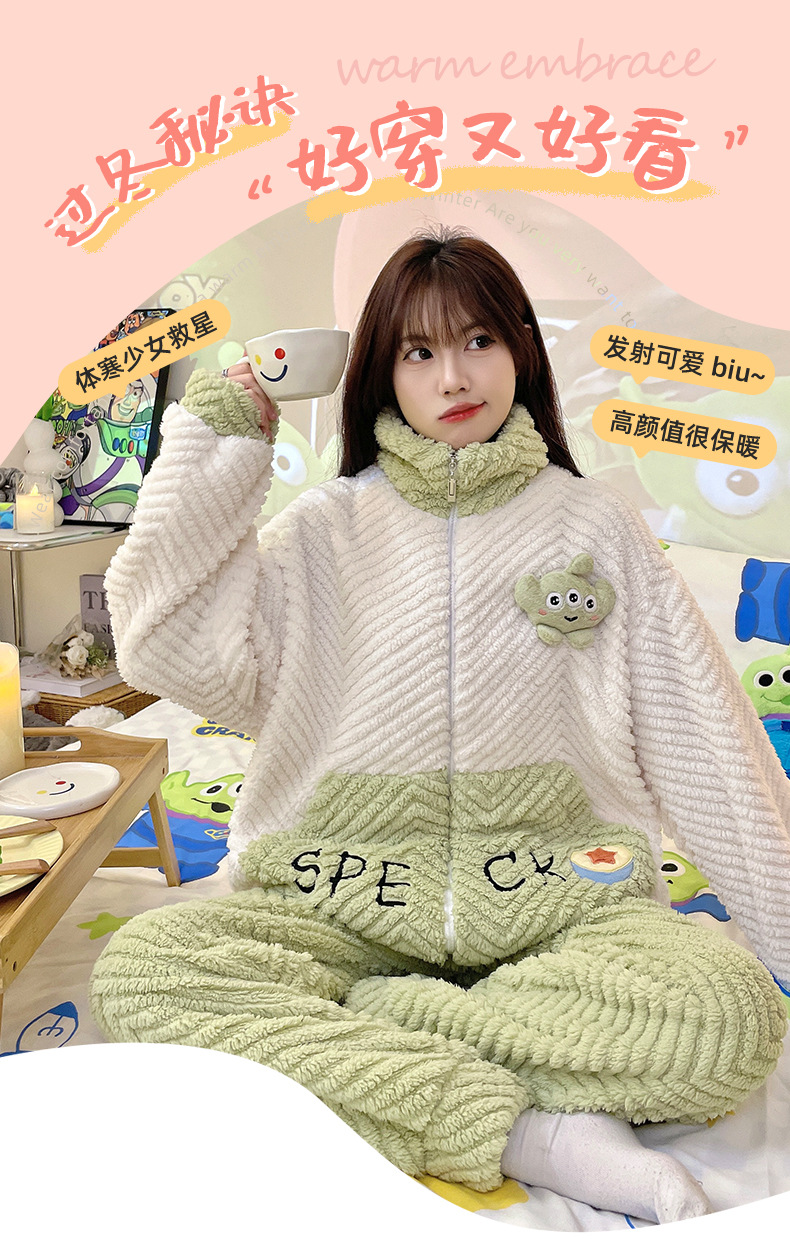 珊瑚绒睡衣女冬季长袖加厚可爱卡通家居服法兰绒春秋款可外穿套装