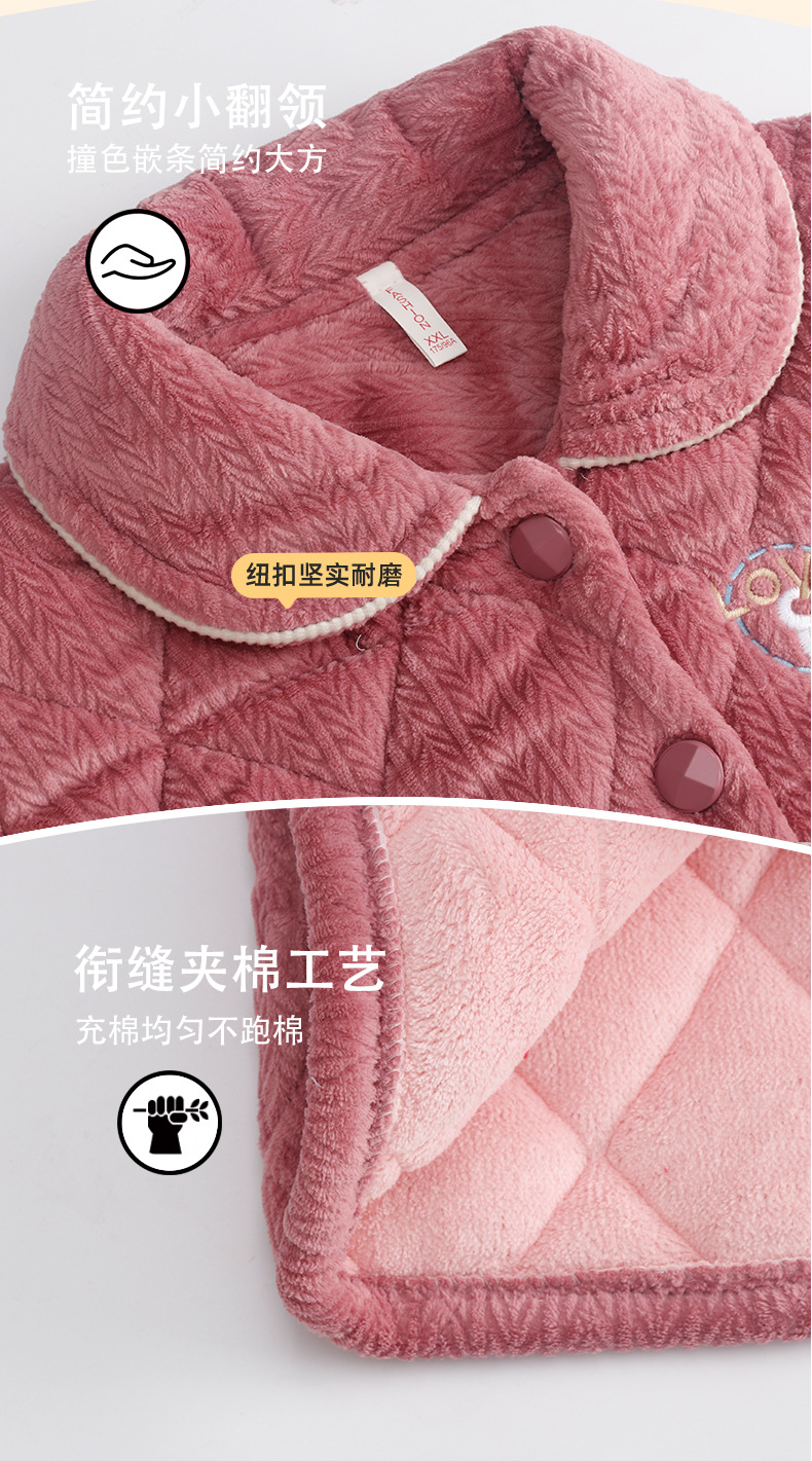 冬季睡衣女士保暖三层夹棉珊瑚绒加厚加绒舒适法兰绒家居服两件套