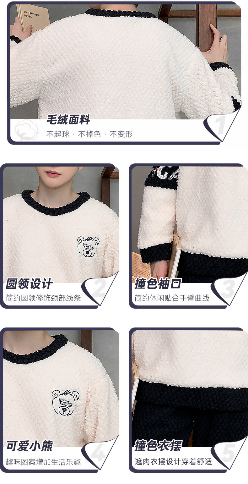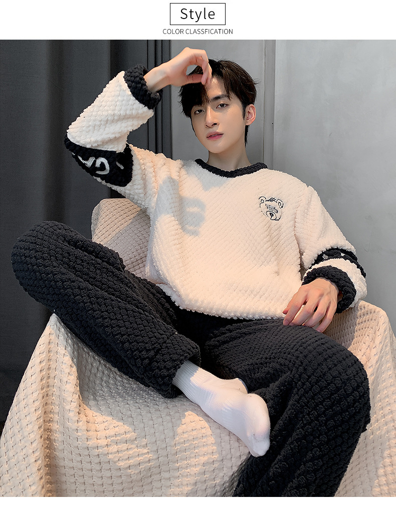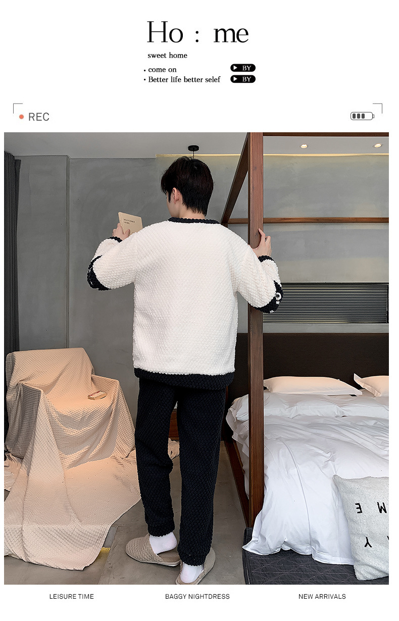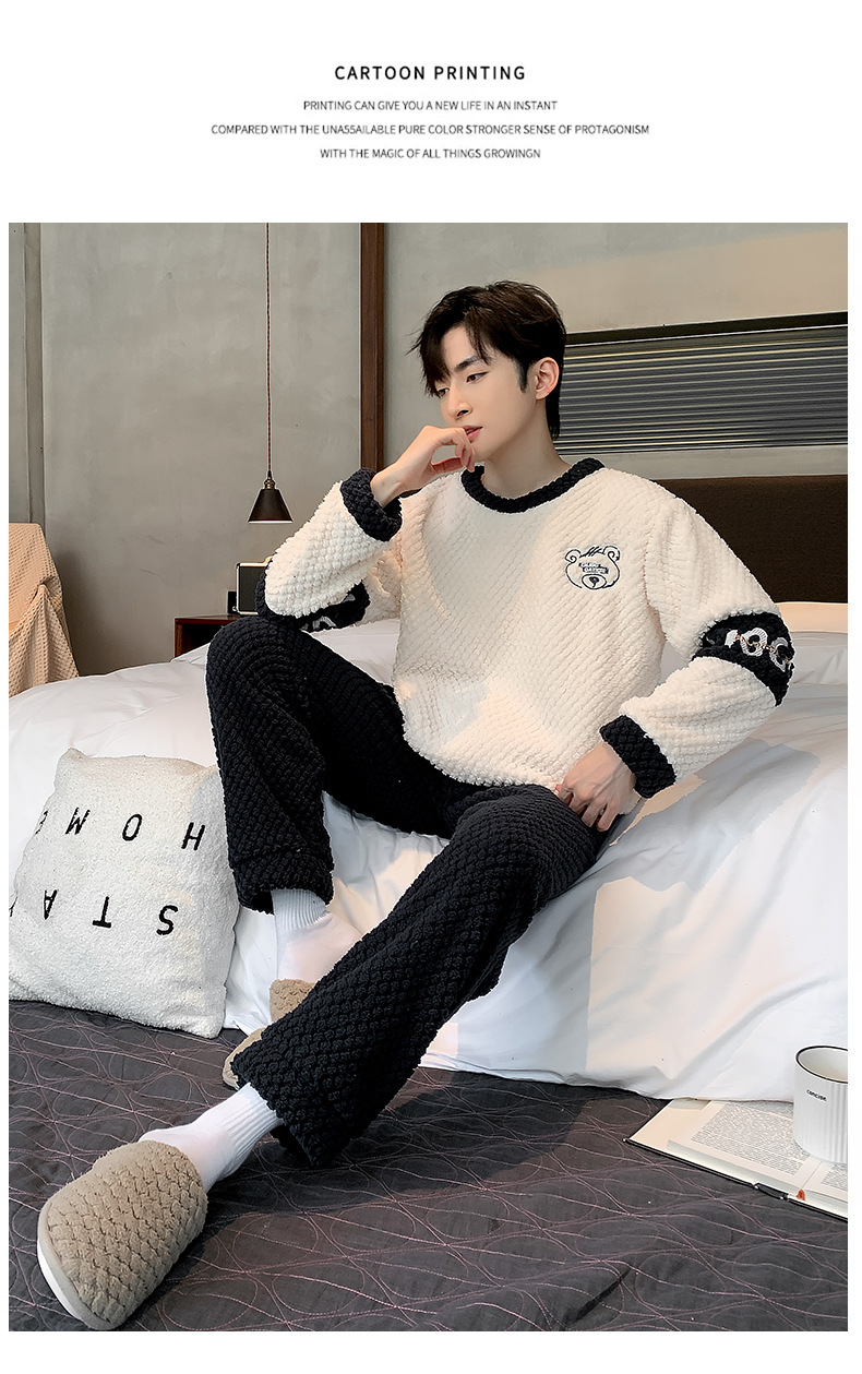 青少年冬季珊瑚绒睡衣男新款卡通时尚加厚法兰绒家居服可外穿套装