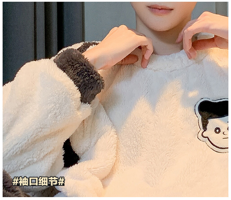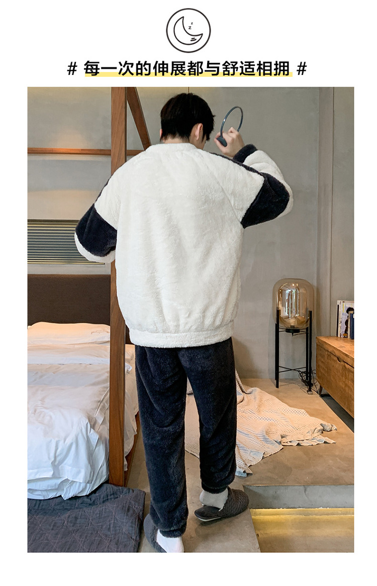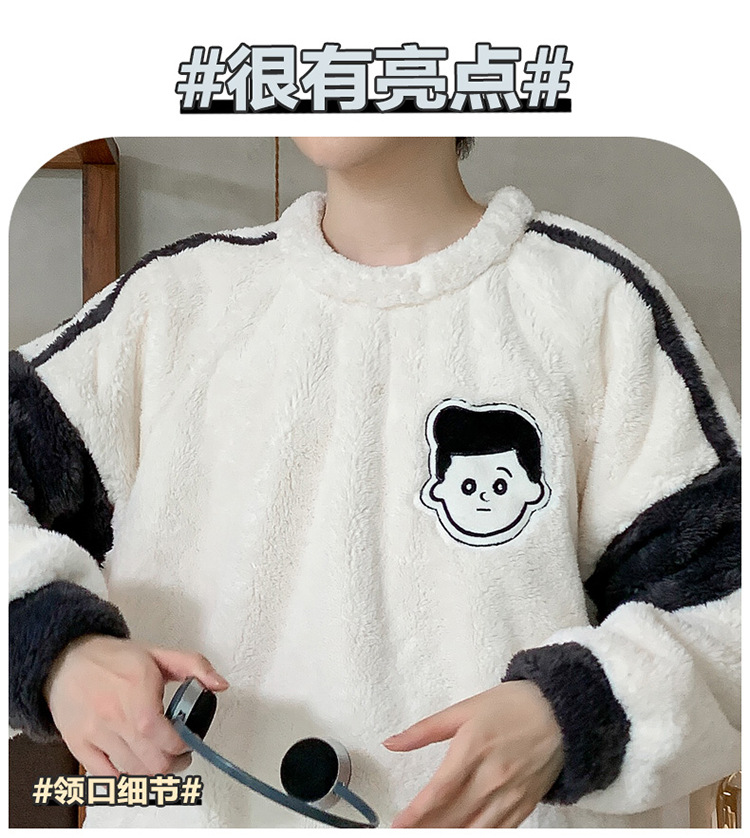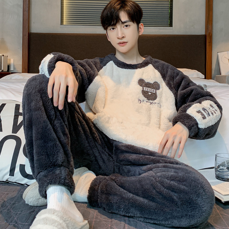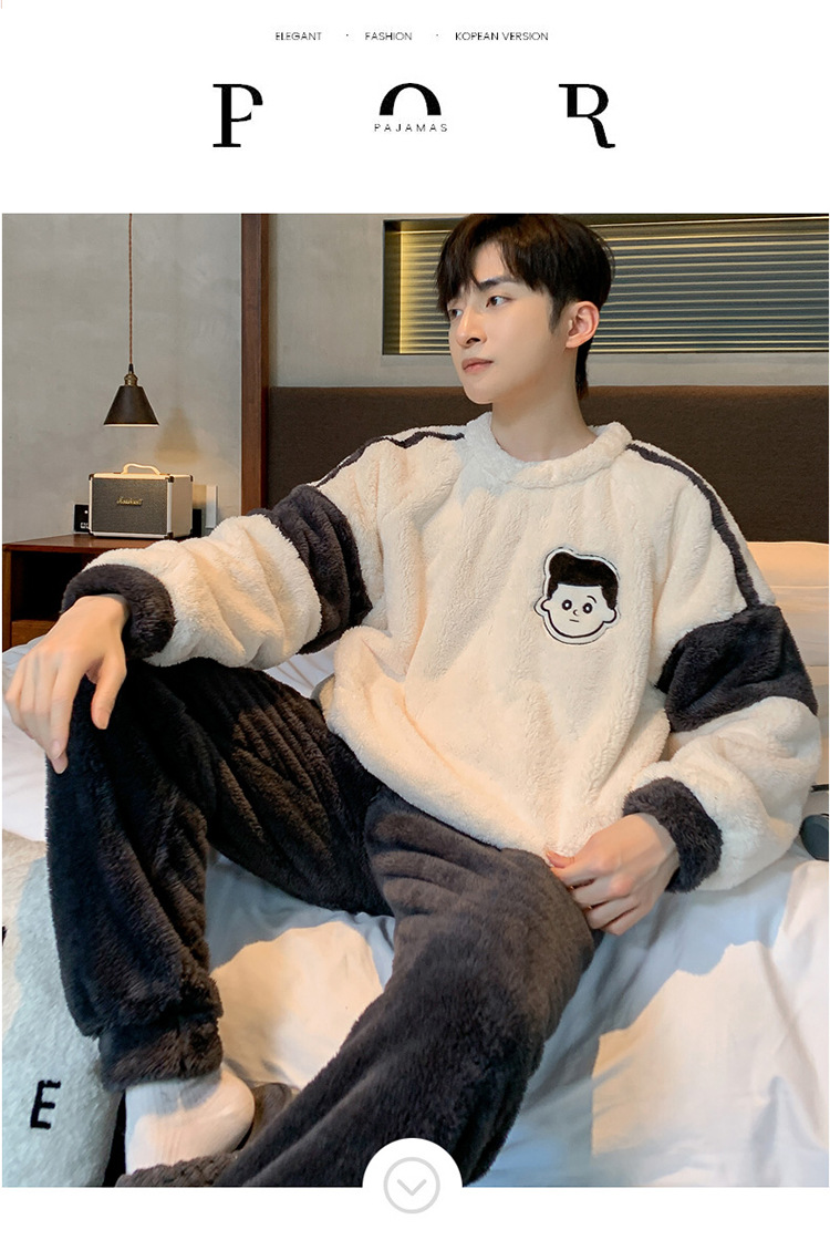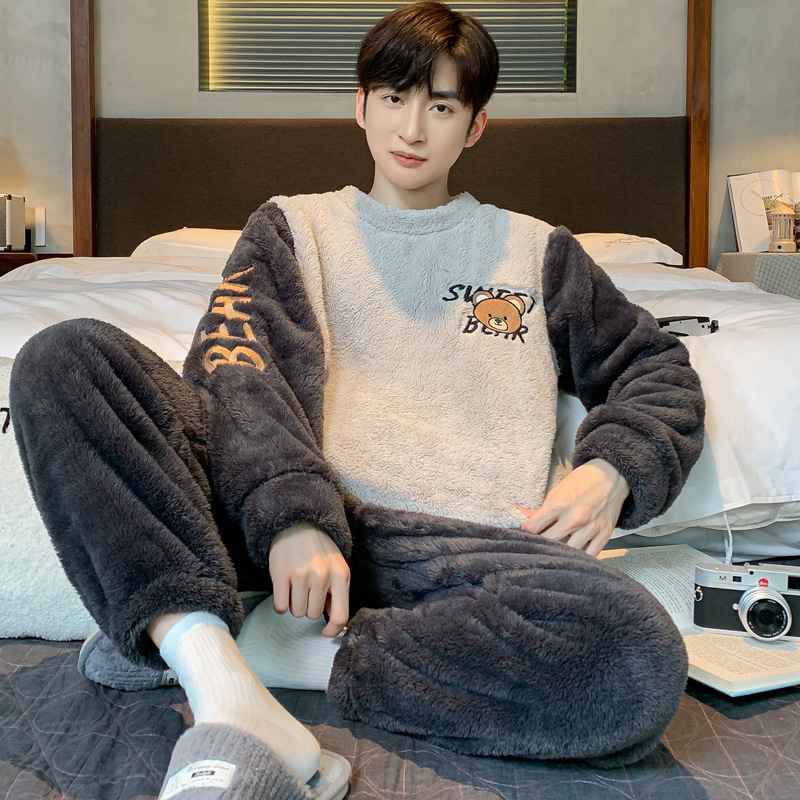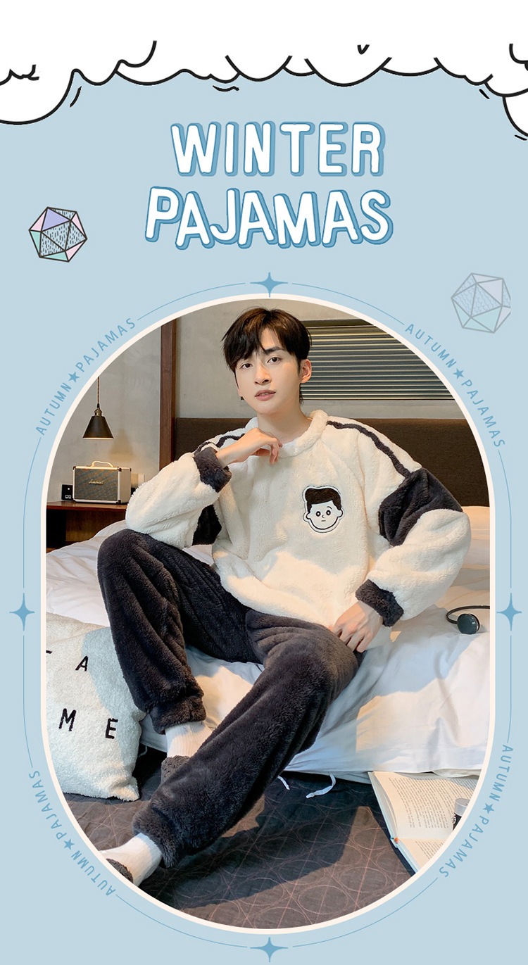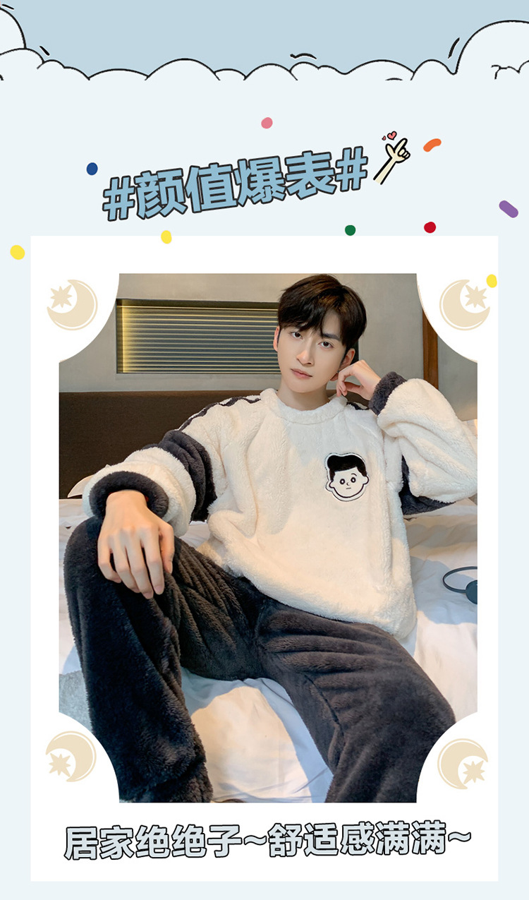 冬季法兰绒睡衣男2023年新款时尚简约小卡通法兰绒家居服套装