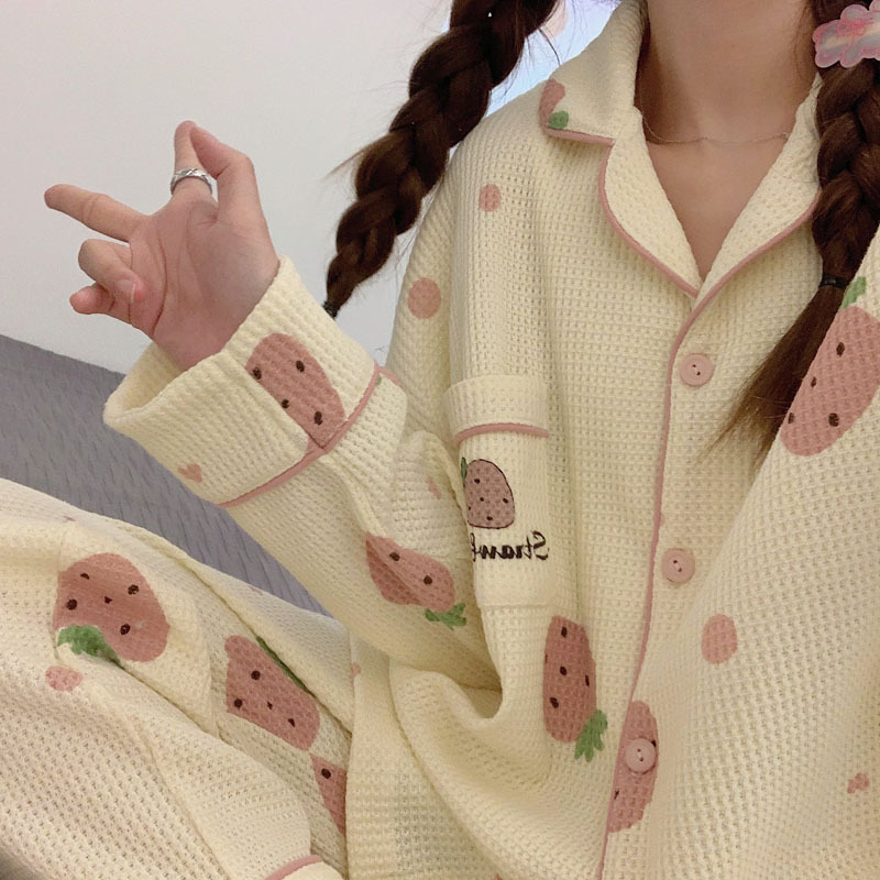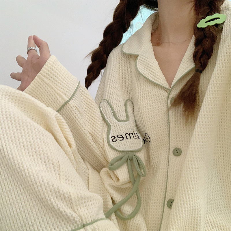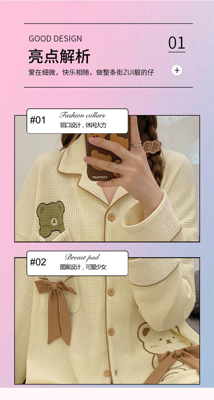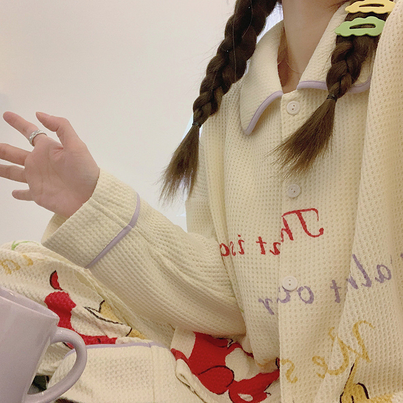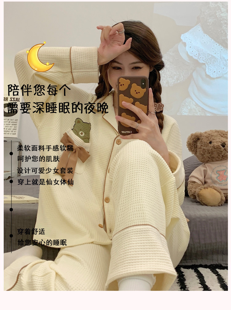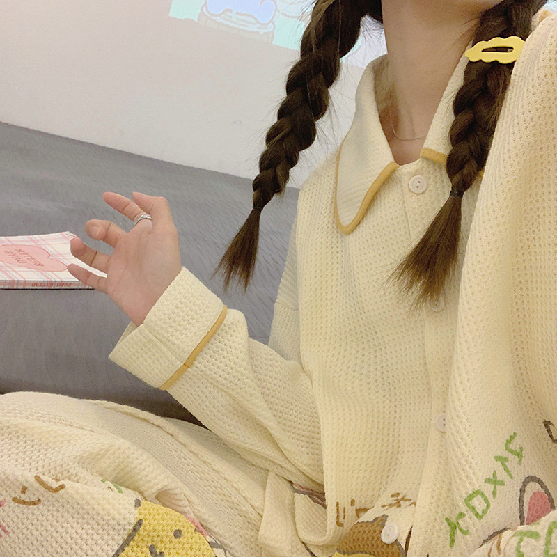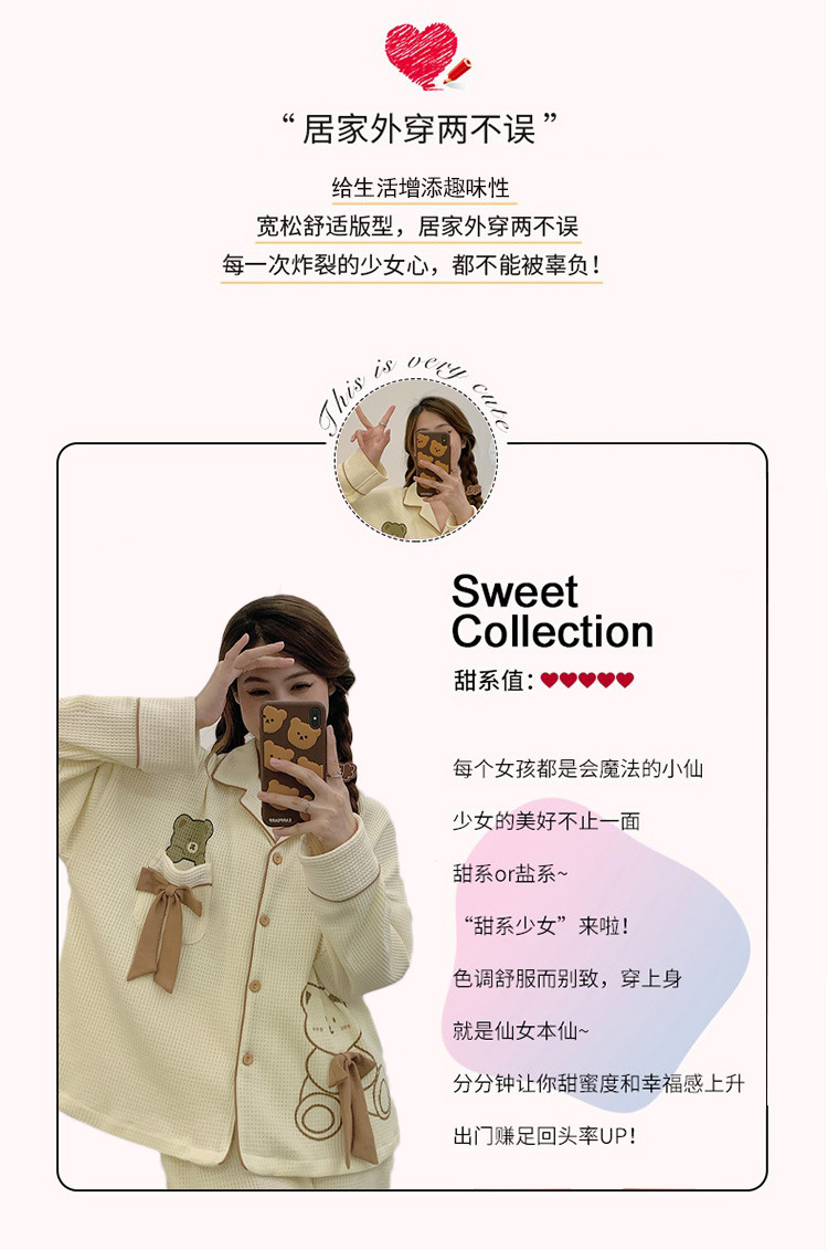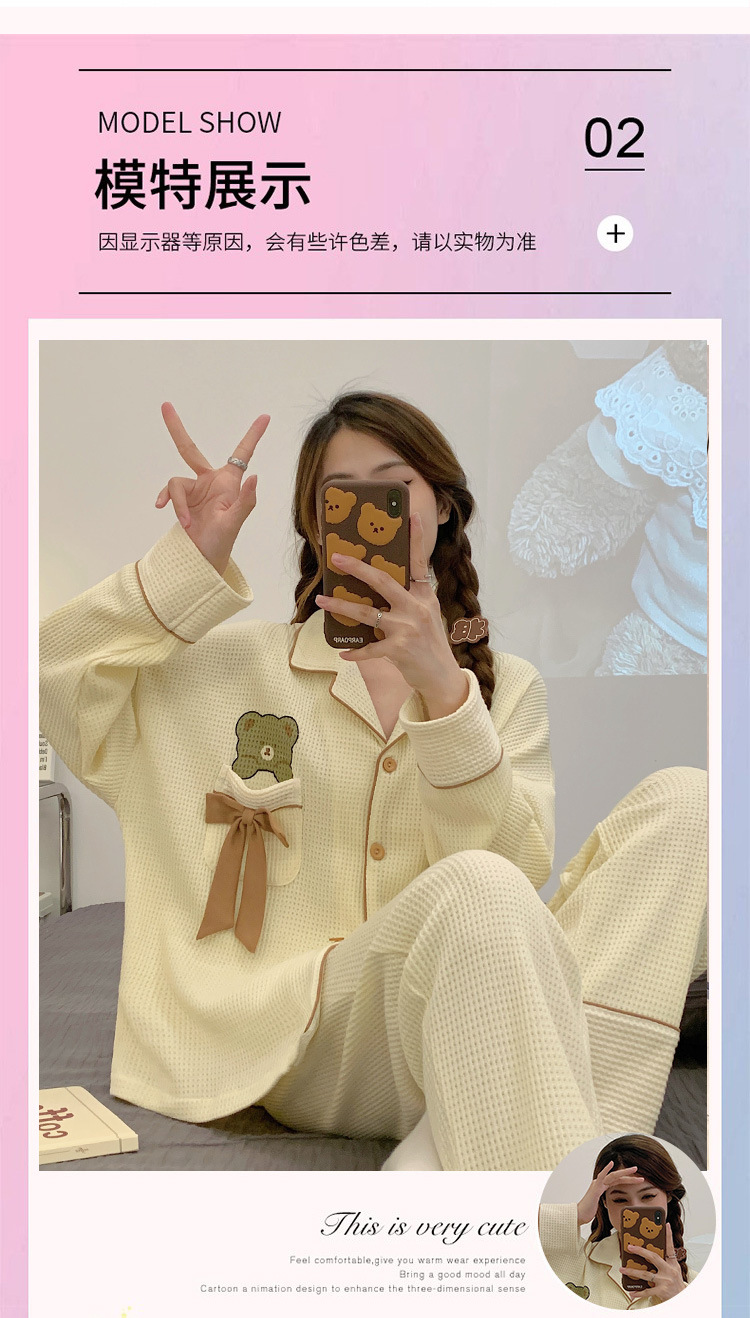 可外穿卡通睡衣女可爱甜美时尚风开衫棉质套装家居服2023秋季新款