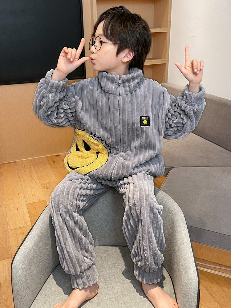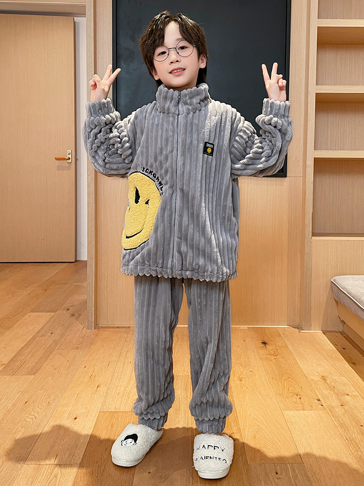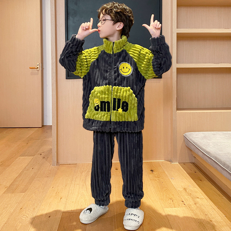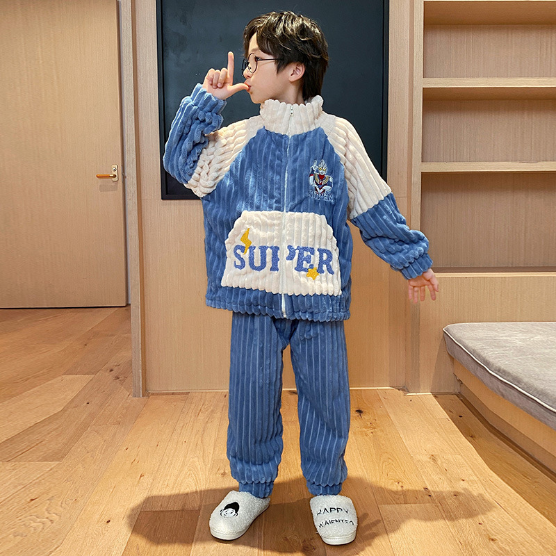 儿童睡衣男冬季2023年新款可爱卡通珊瑚绒保暖舒适拉链家居服套装