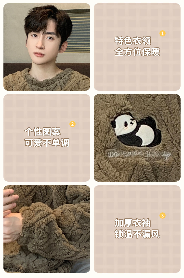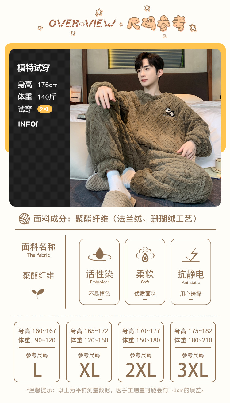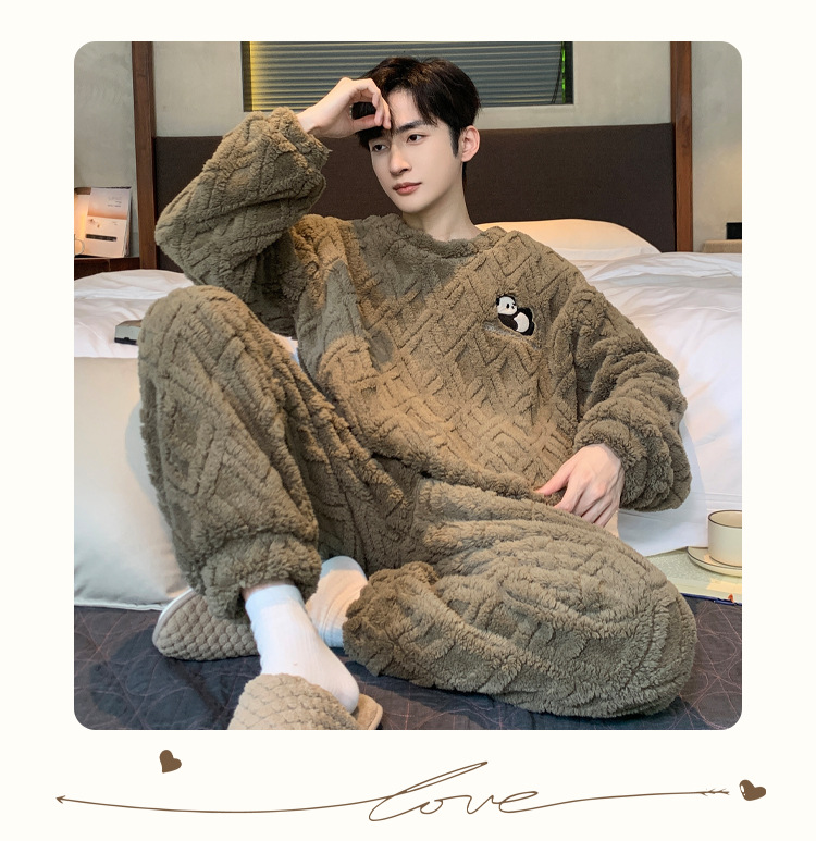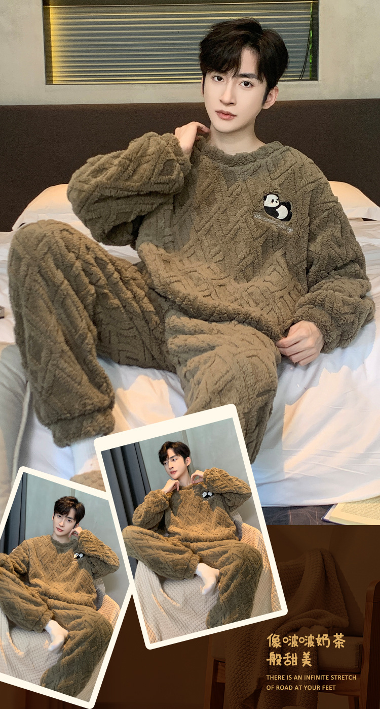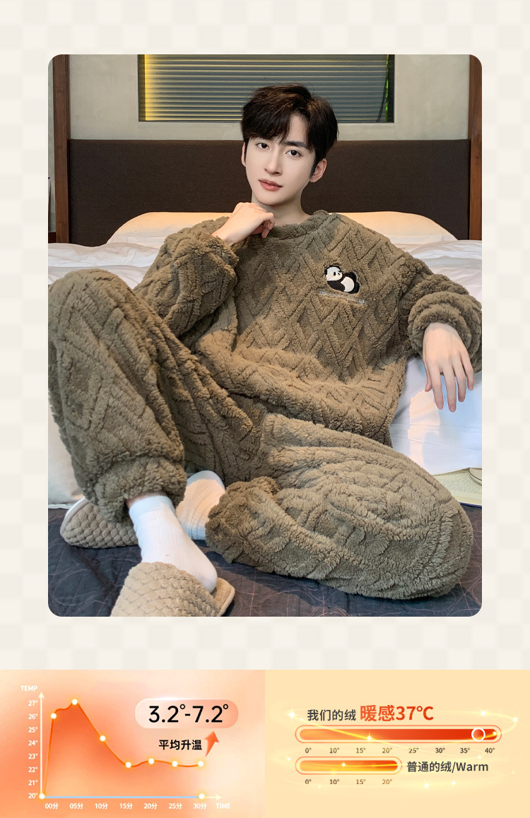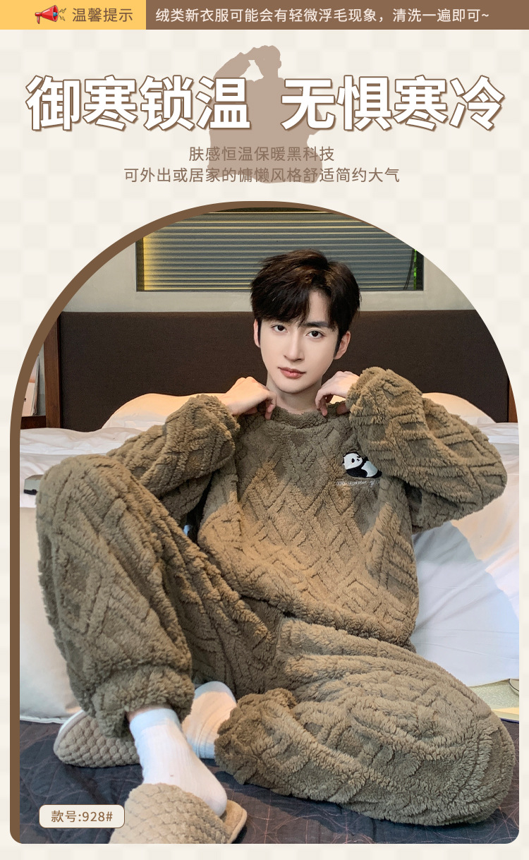 2023新款青少年男士睡衣珊瑚绒卡通时尚提花加厚家居服套装可外穿