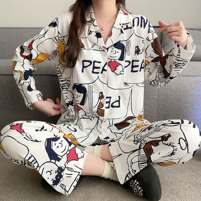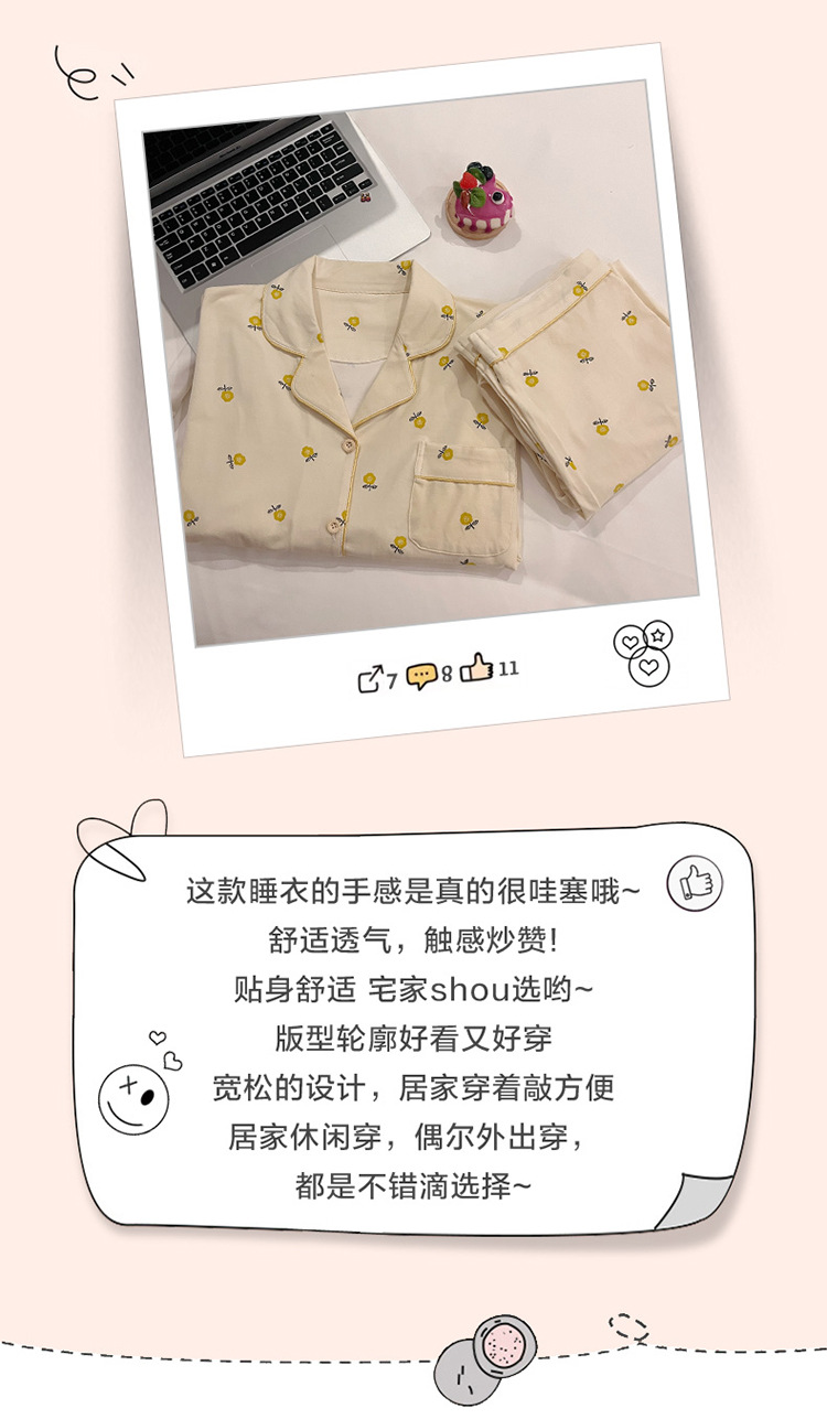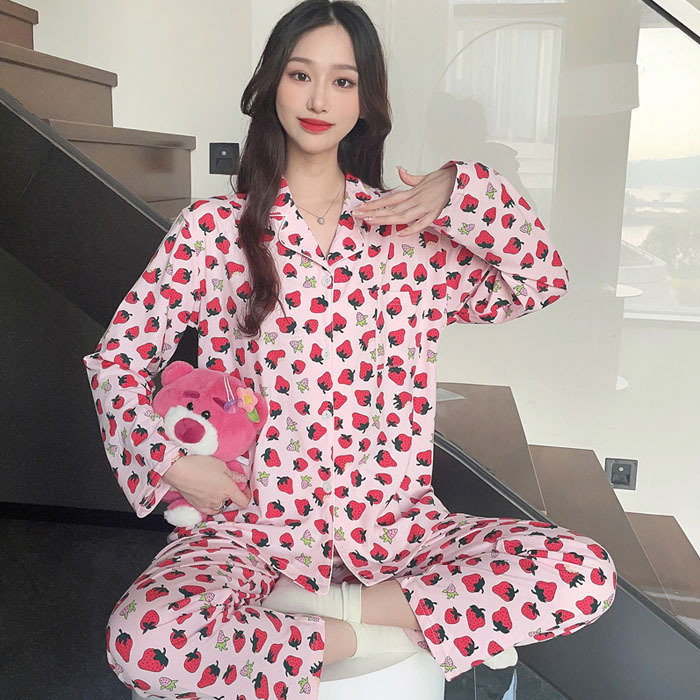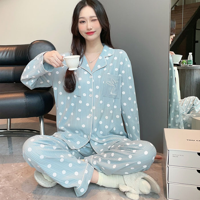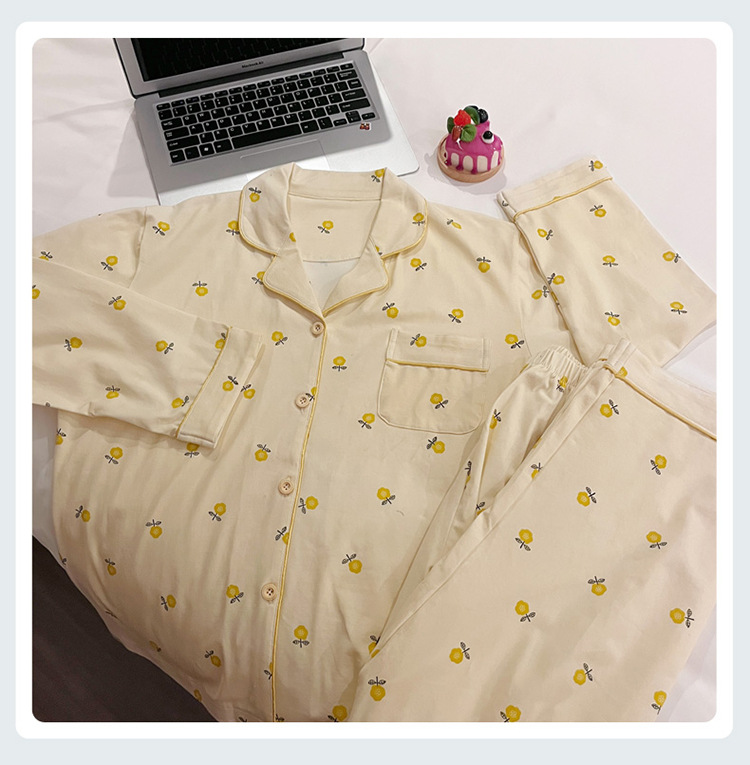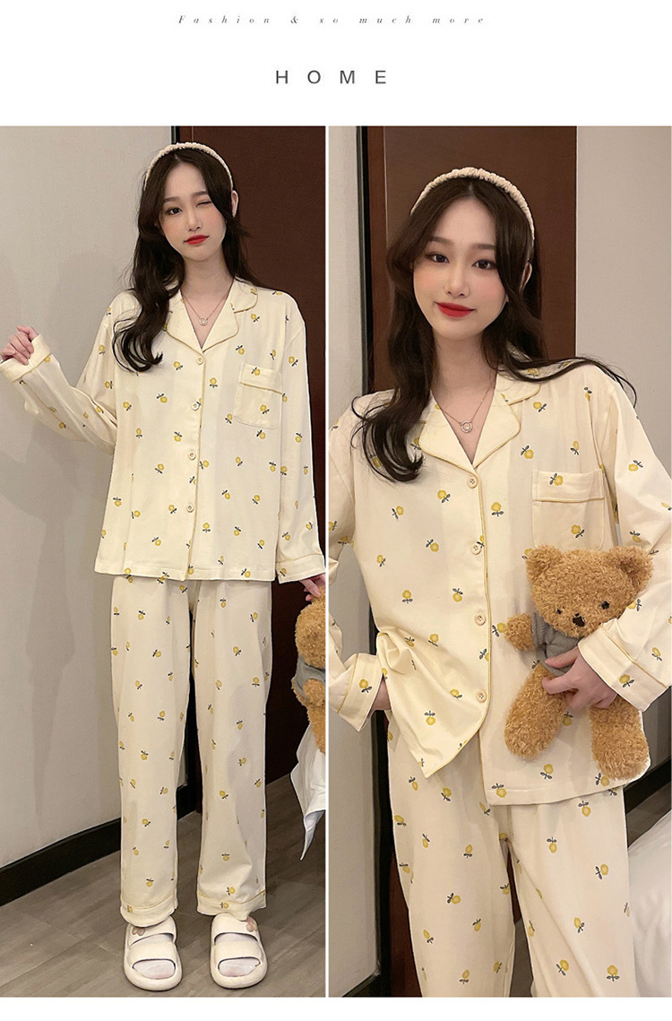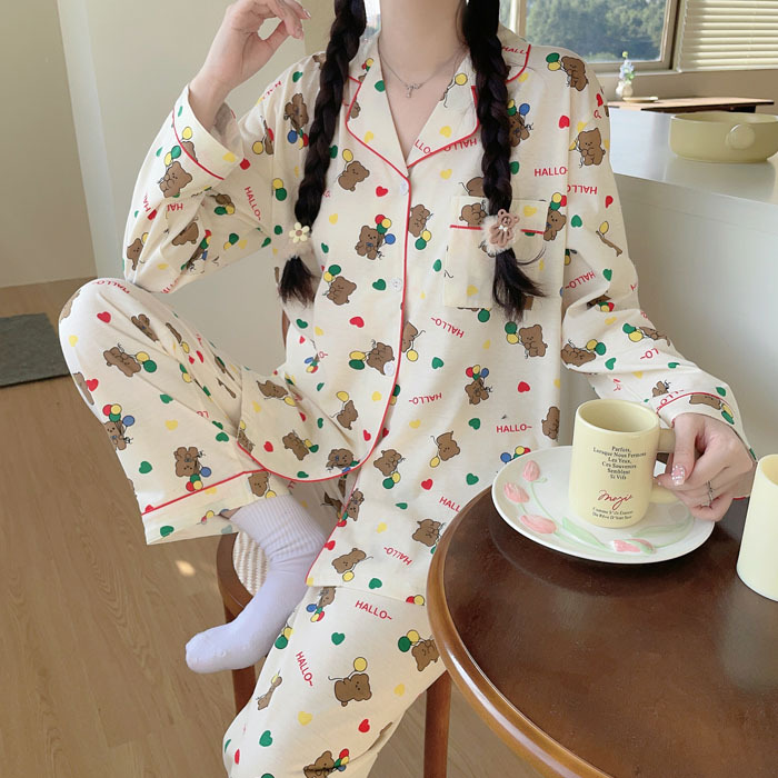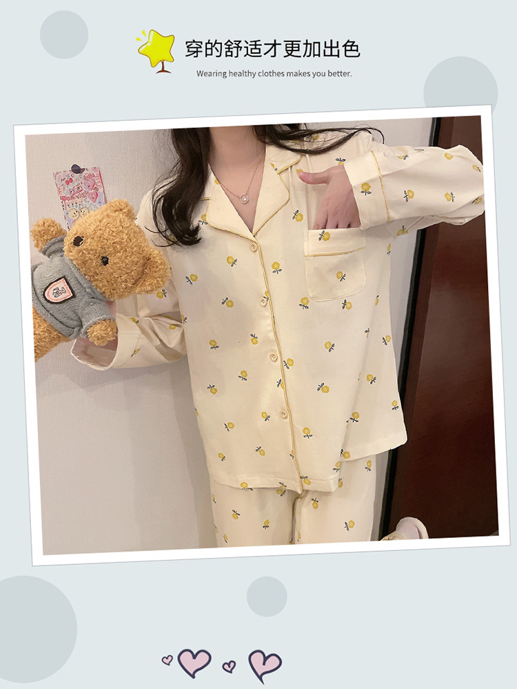 秋天开衫睡衣女可爱清新时尚风舒适棉质家居服套装可外穿2023新款