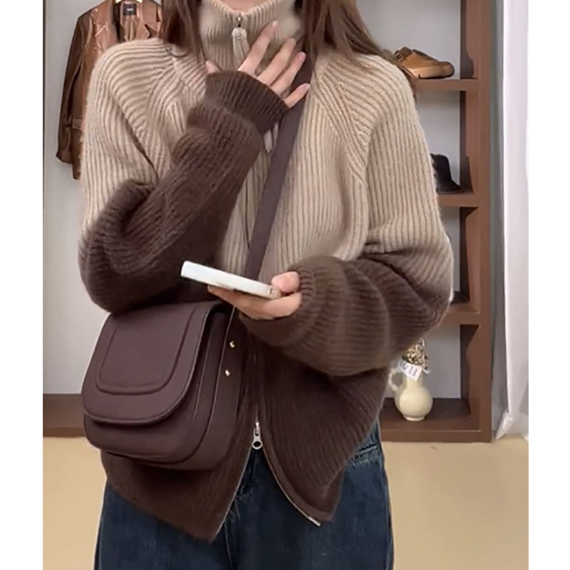 直播新款渐变双拉链毛衣开衫女韩版秋冬复古宽松休闲厚实针织外套
