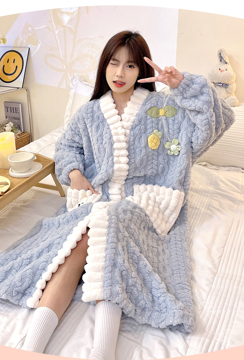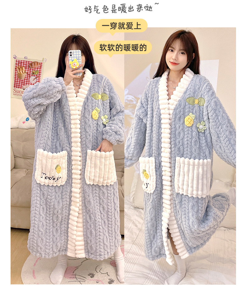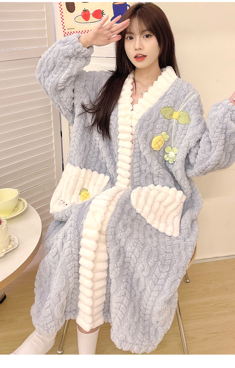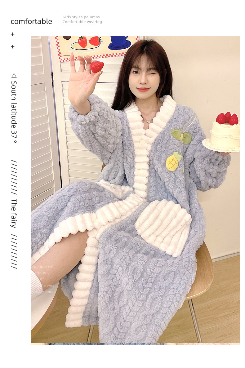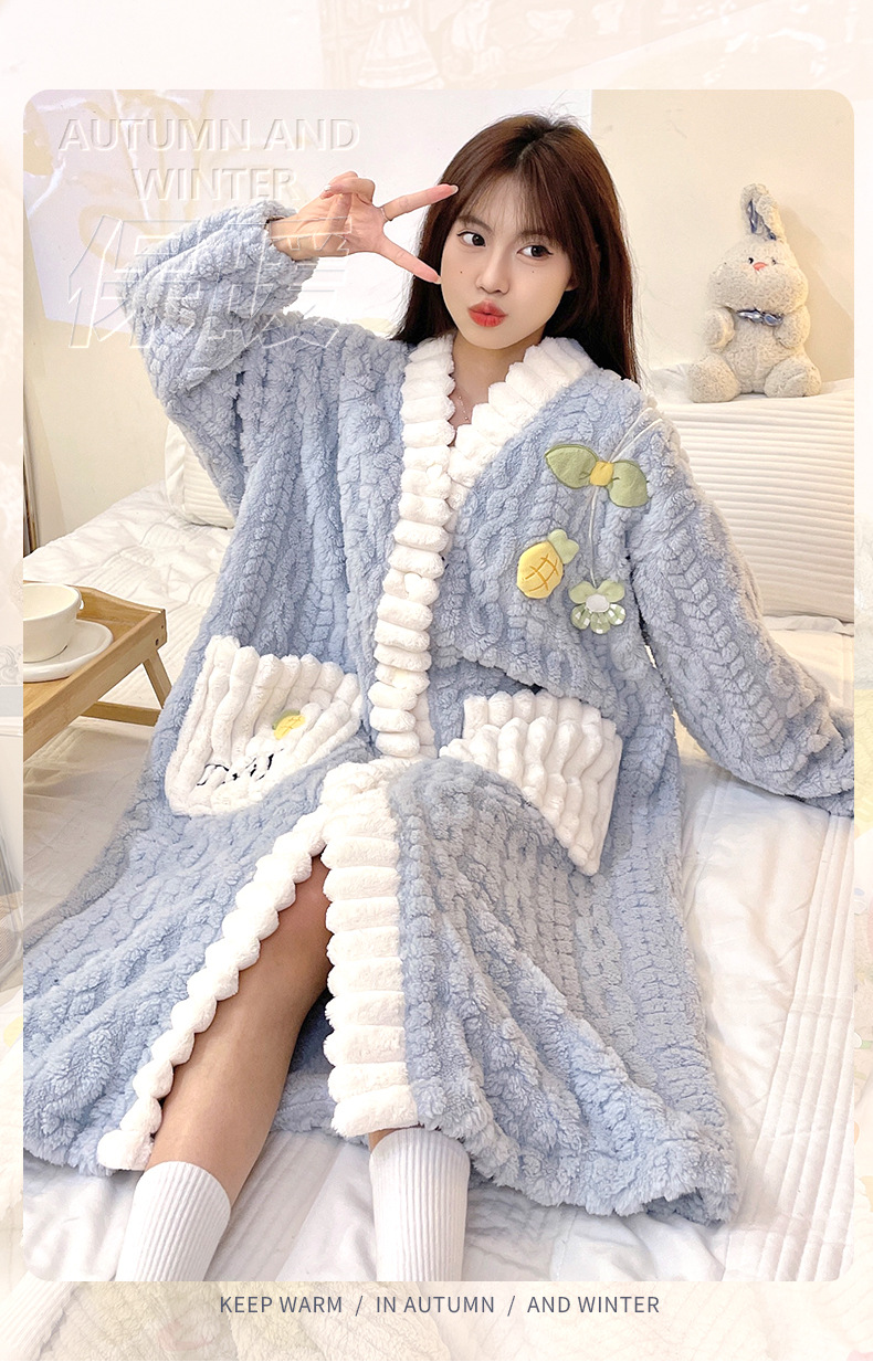 睡衣女冬季珊瑚绒睡裙冬睡衣冬款睡袍女冬长款毛绒浴衣家居服加厚