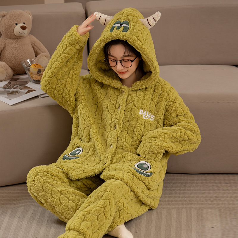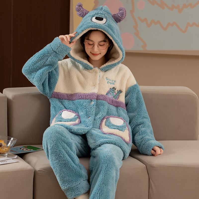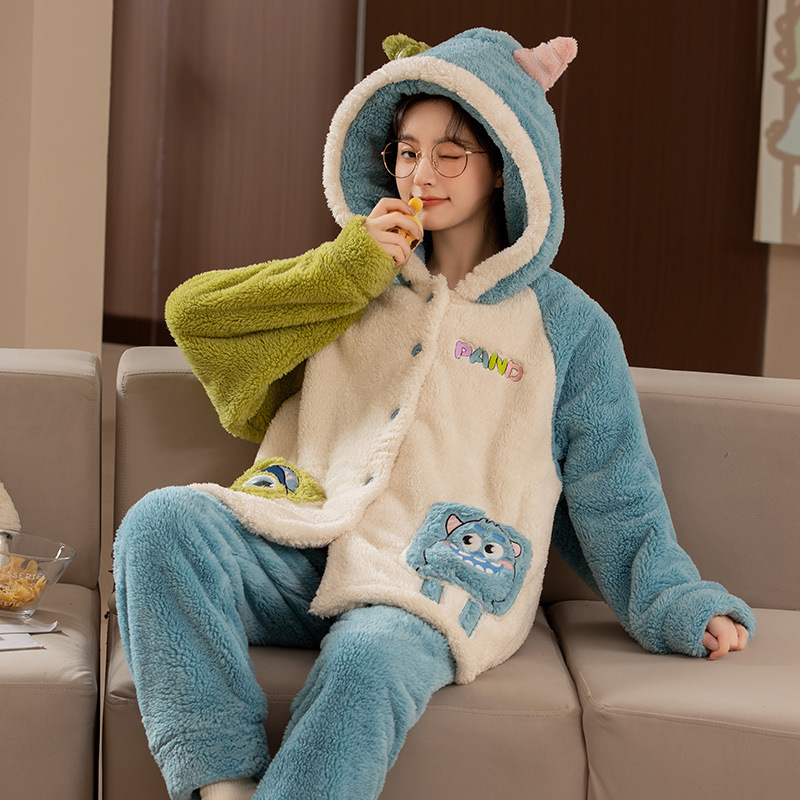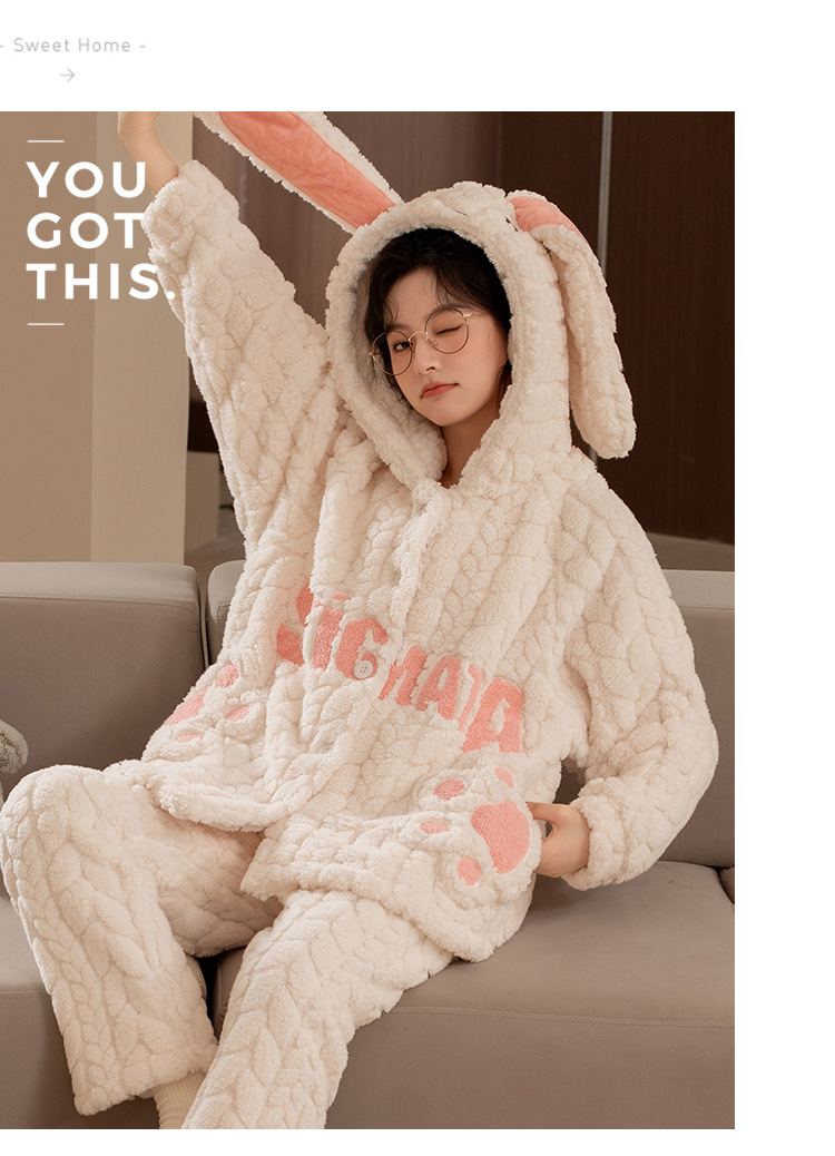 冬季新款2023年珊瑚绒睡衣女可爱甜美风舒适保暖法兰绒套装家居服