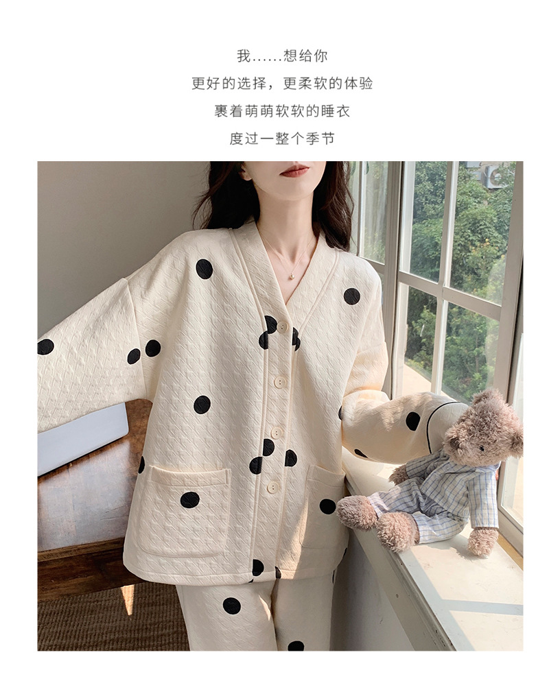 冬季睡衣女空气棉夹层可爱甜美风舒适保暖新款家居服可外穿两件套