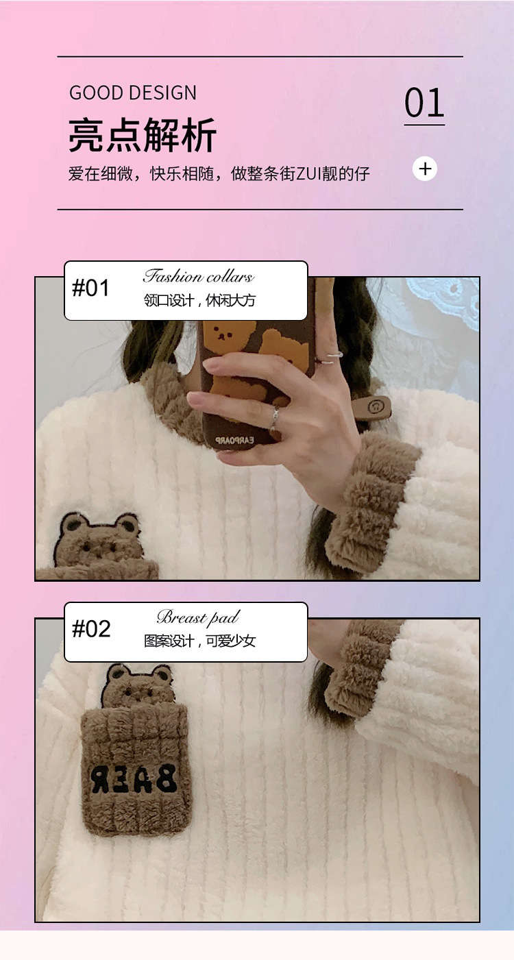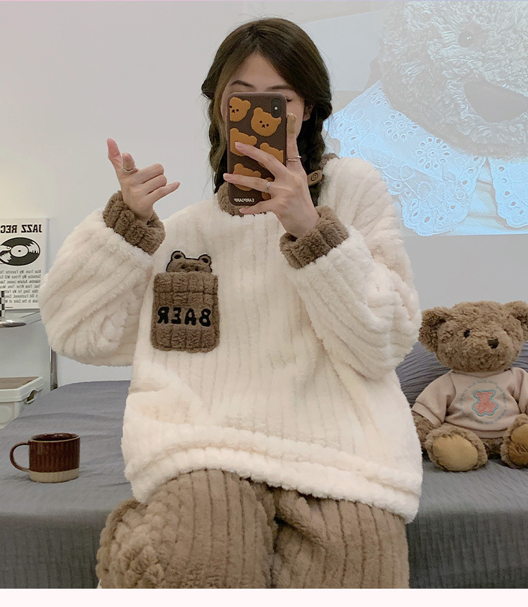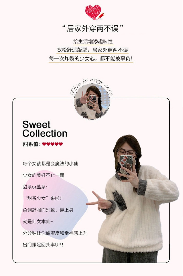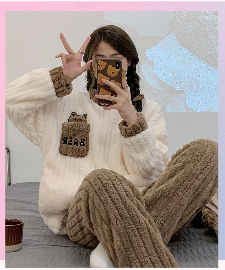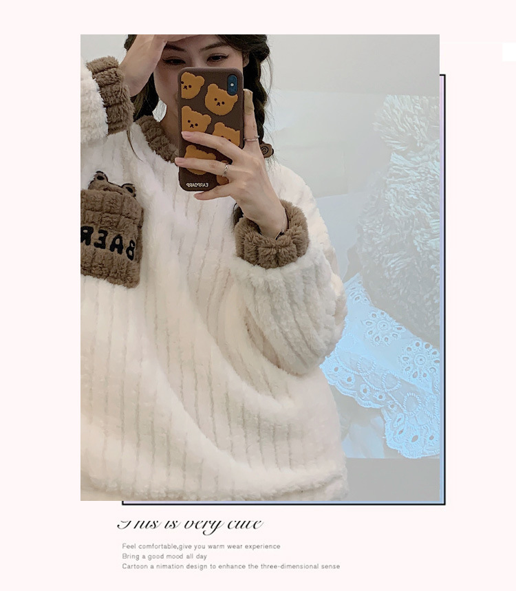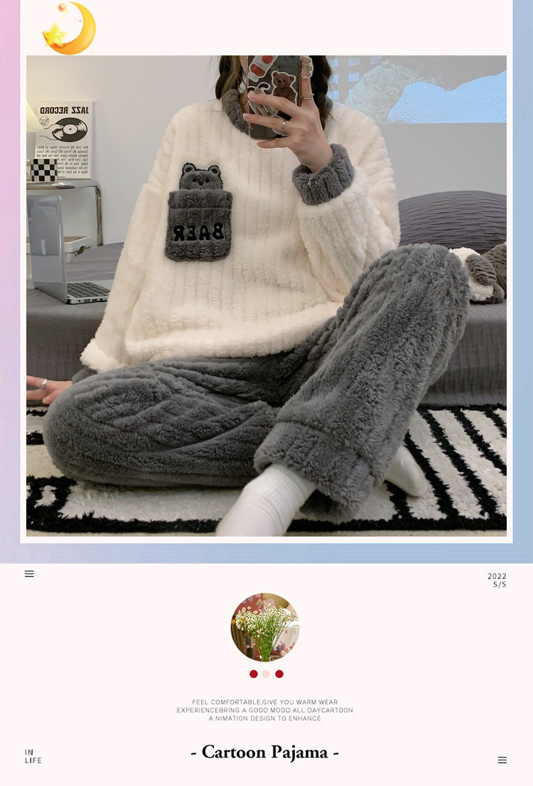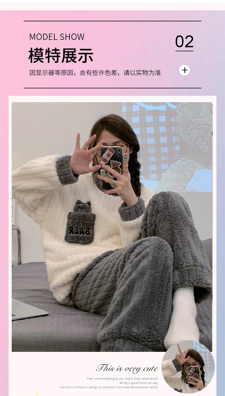 冬季法兰绒睡衣女新款简约舒适套头加厚珊瑚绒家居服两件套可外穿