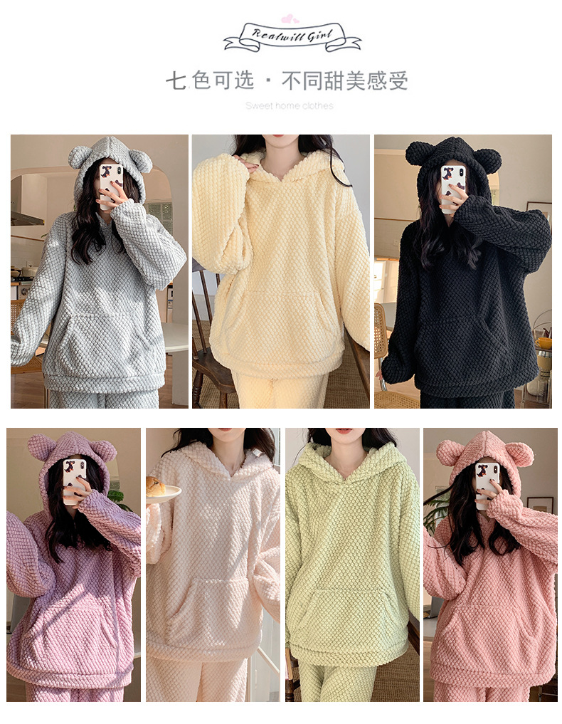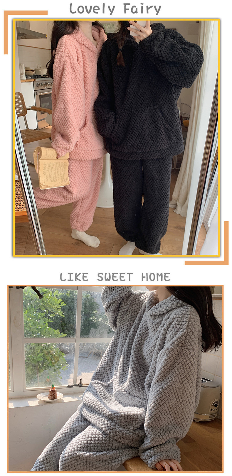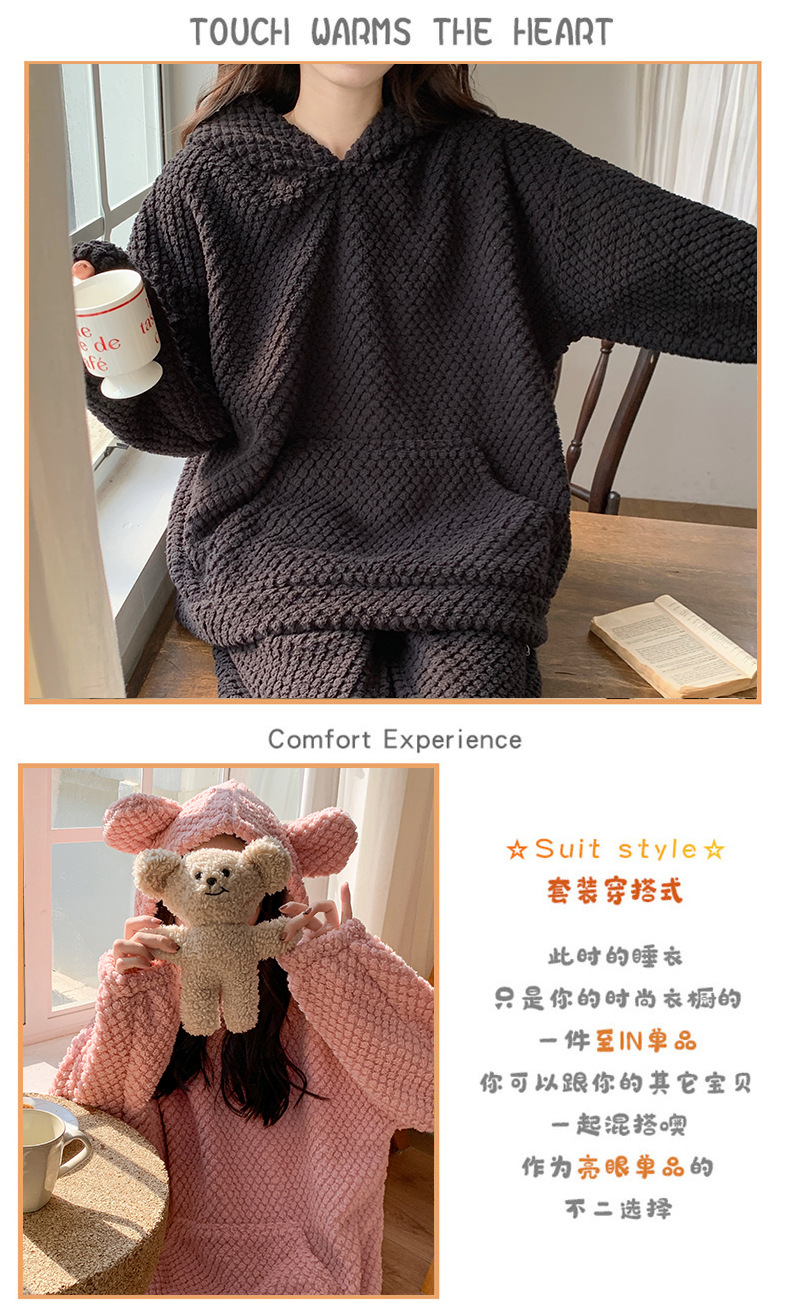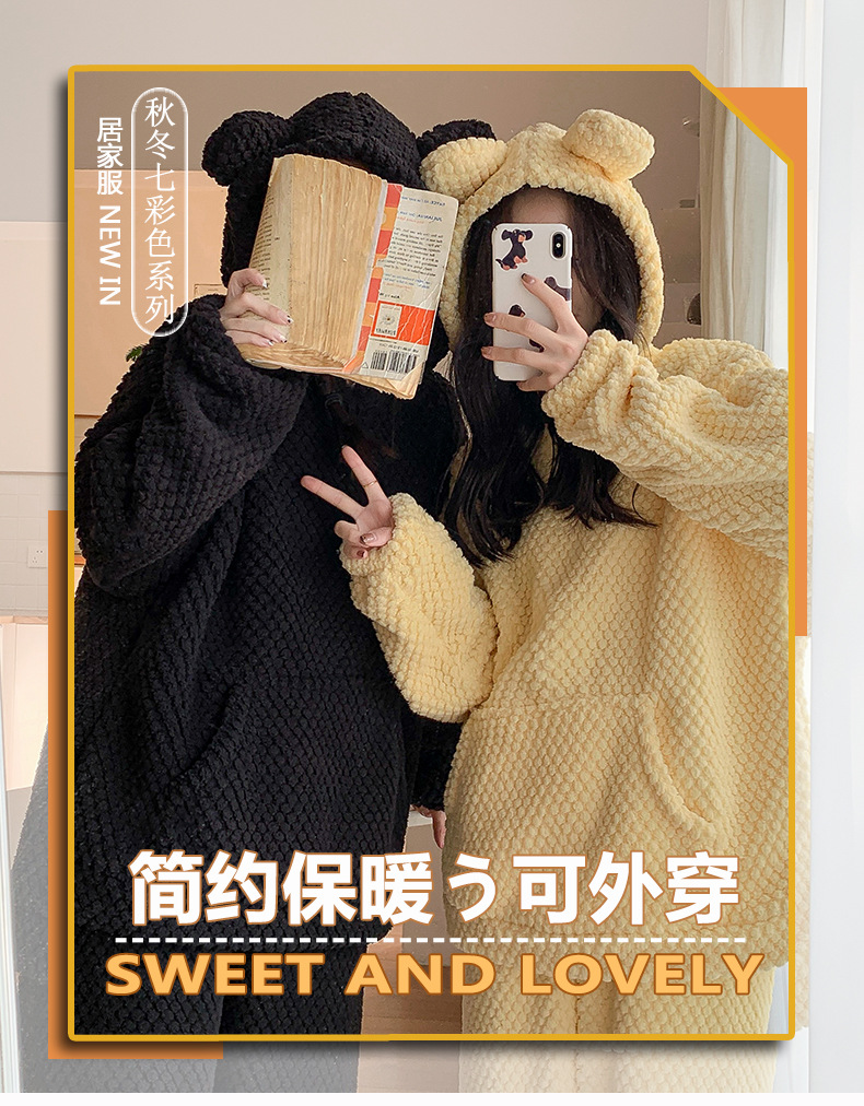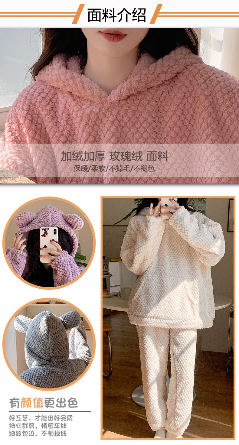 2023年新款冬季珊瑚绒睡衣女闺蜜姐妹装连帽舒适法兰绒家居服套装