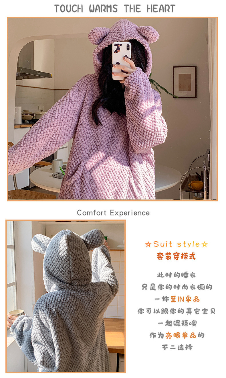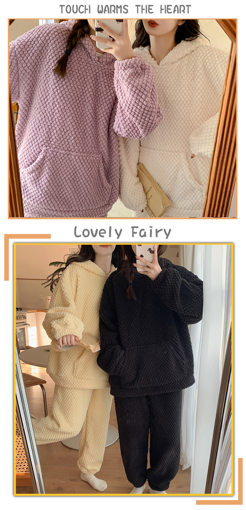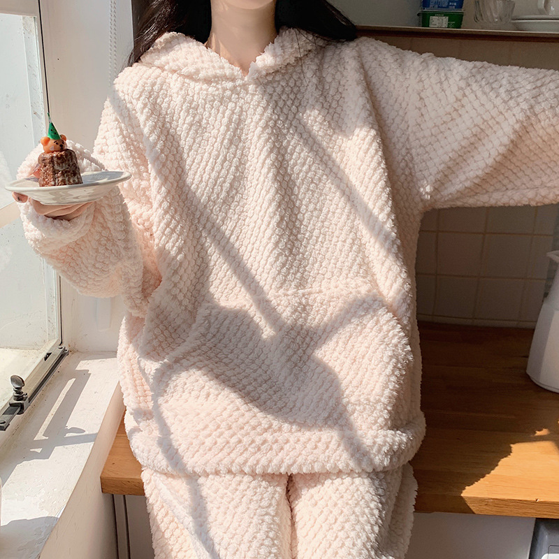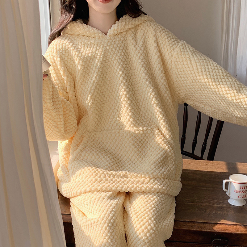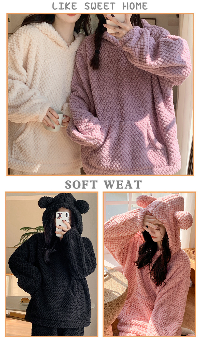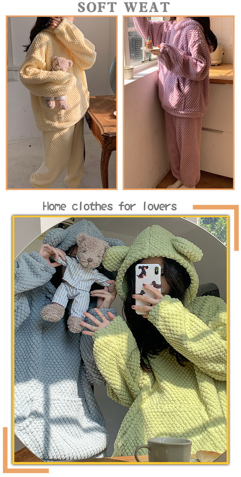 2023年新款冬季珊瑚绒睡衣女闺蜜姐妹装连帽舒适法兰绒家居服套装