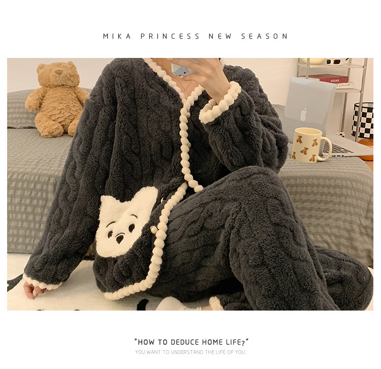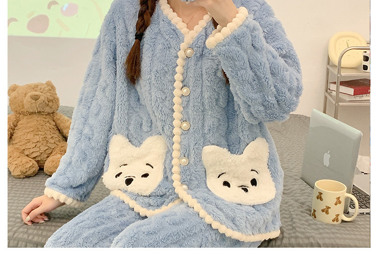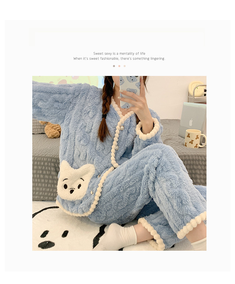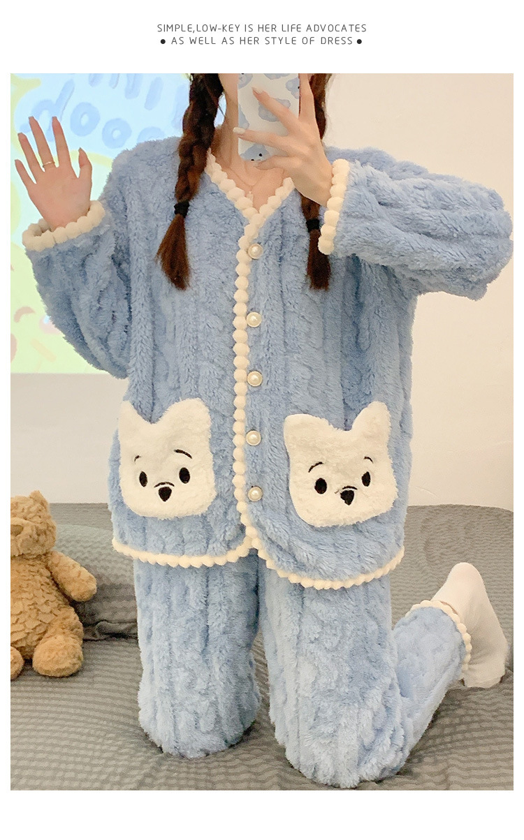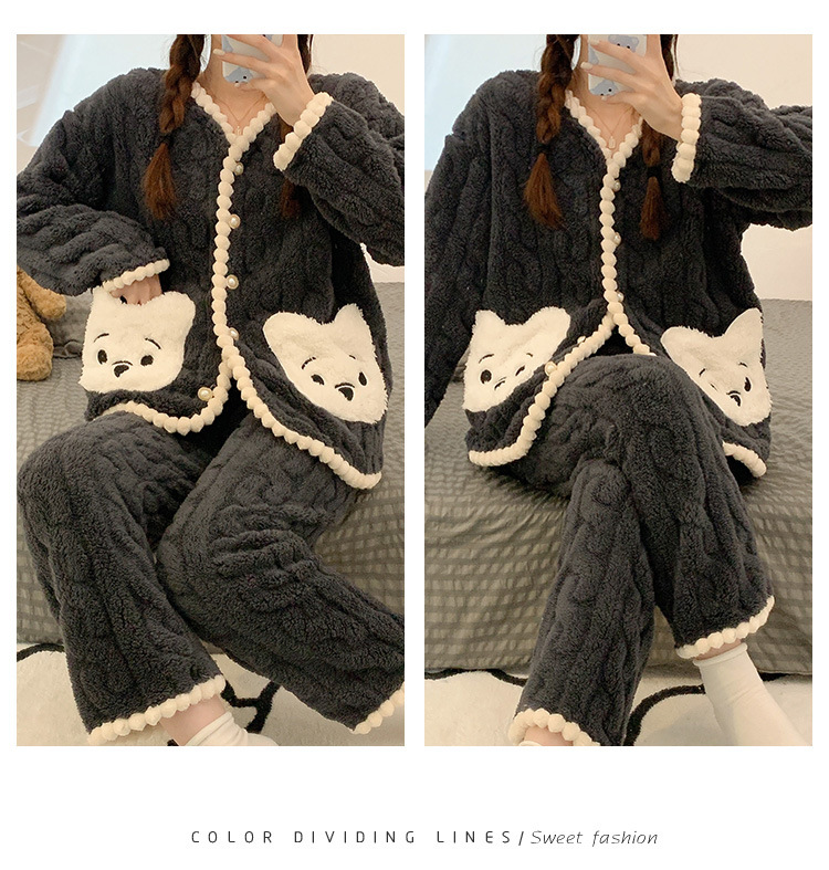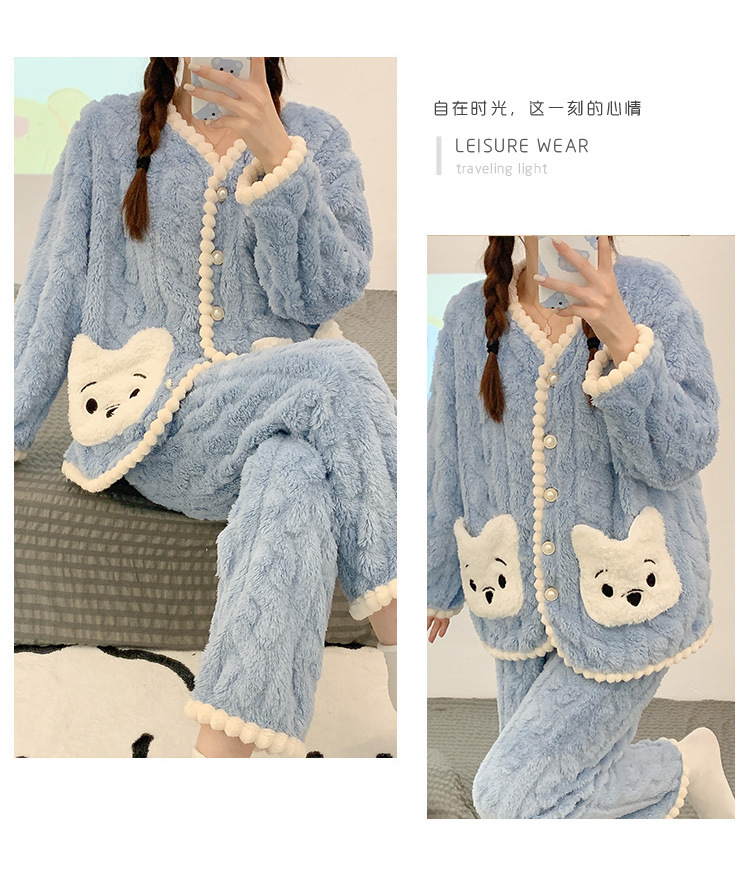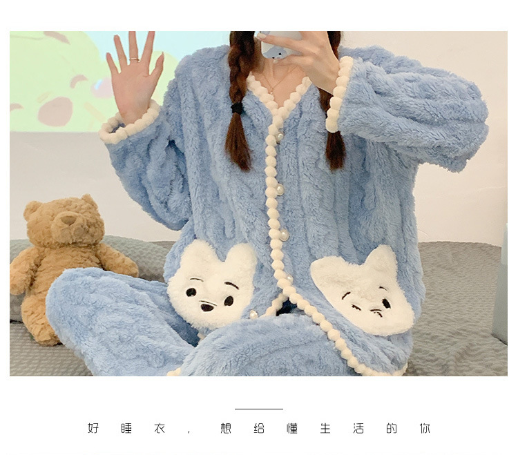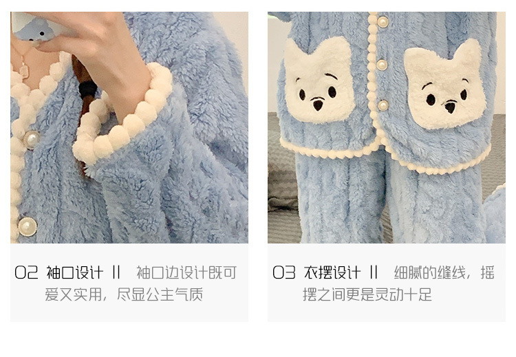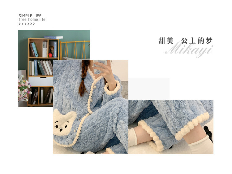 卡通睡衣女冬季珊瑚绒可爱甜美风加厚保暖舒适套装2023新款家居服