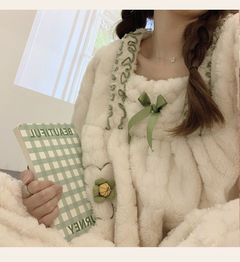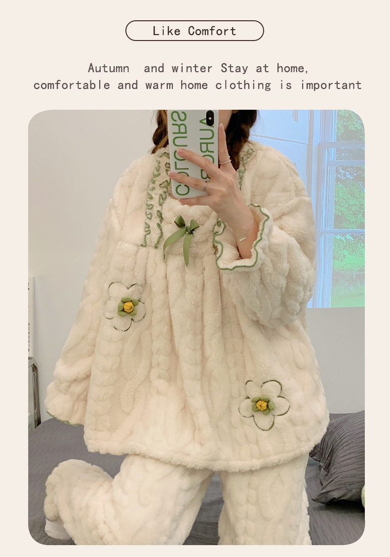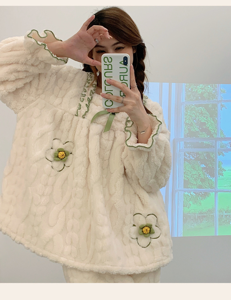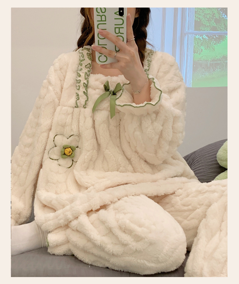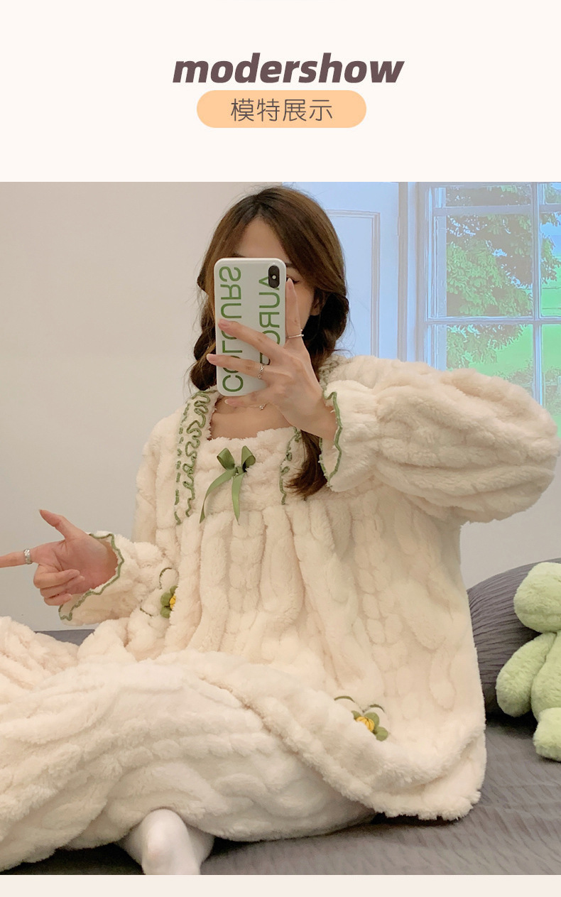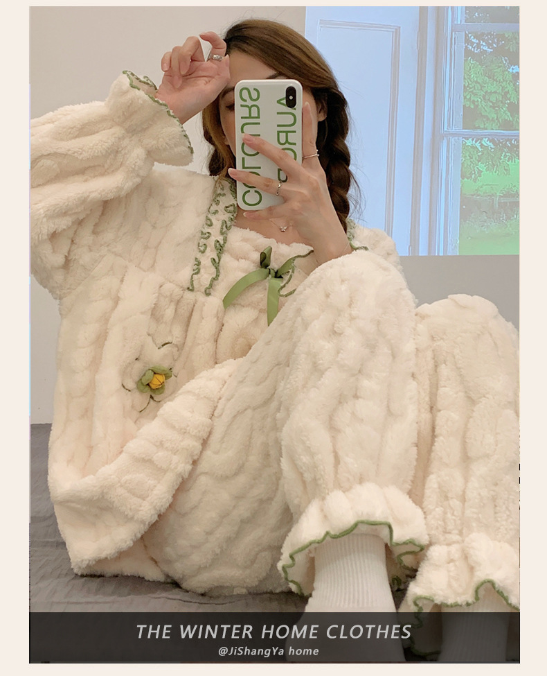 冬季新款睡衣女可爱时尚公主风提花绒保暖舒适感法兰绒套装家居服