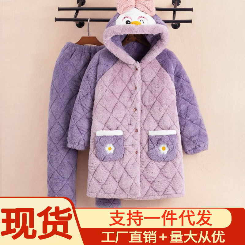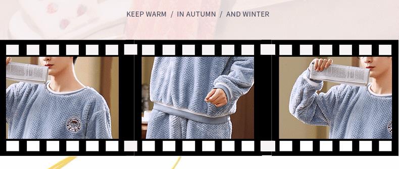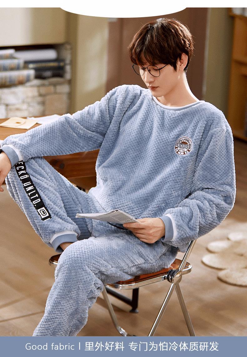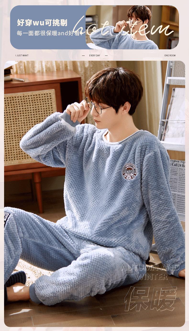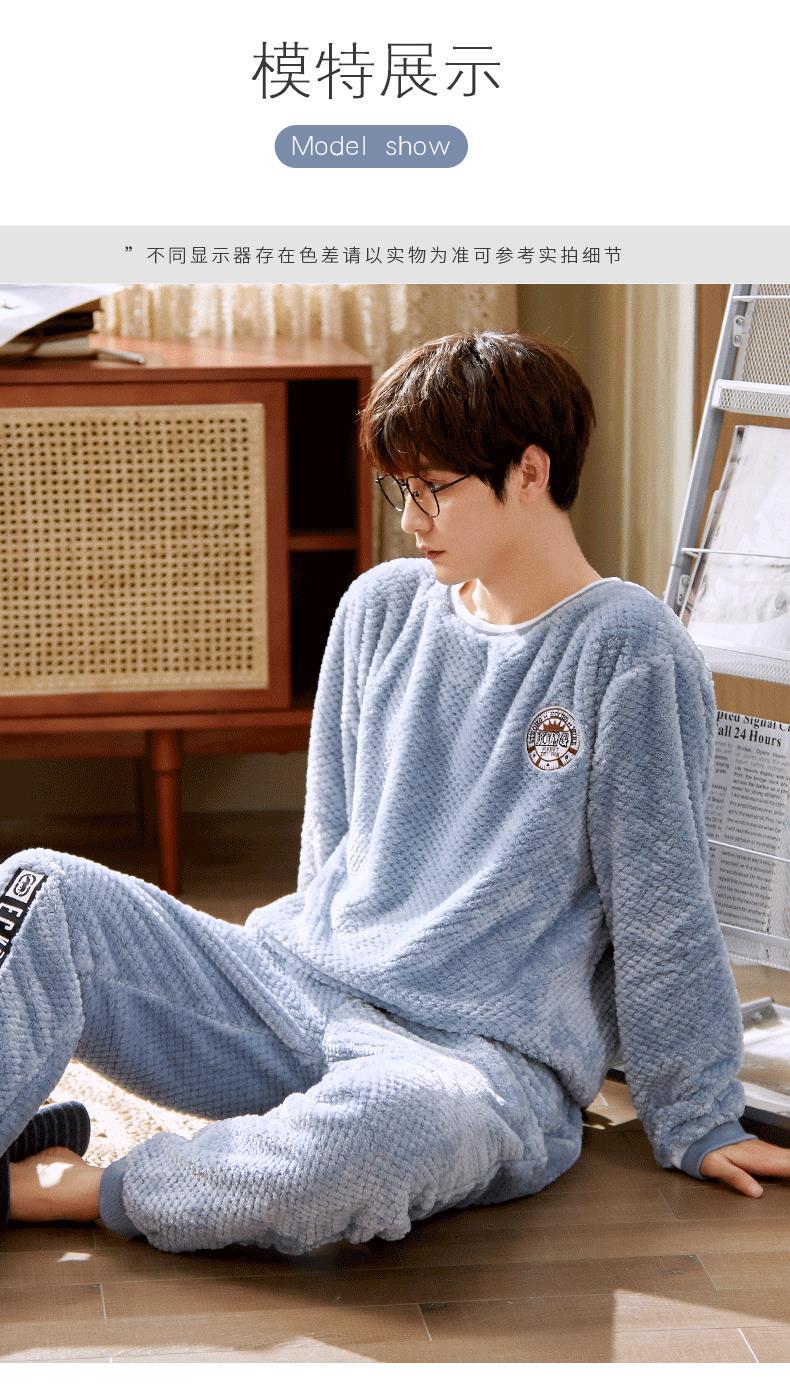 睡衣男秋冬季珊瑚绒加厚加绒保暖法兰绒套头男士秋冬款家居服套装