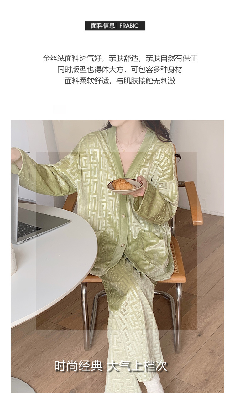 秋冬睡衣女士可爱时尚高级感2023年新款金丝绒舒适套装开衫家居服