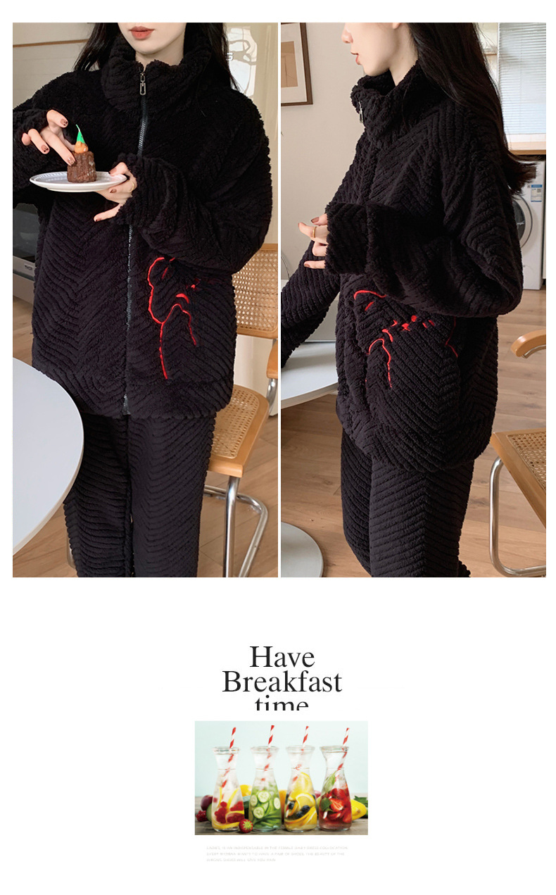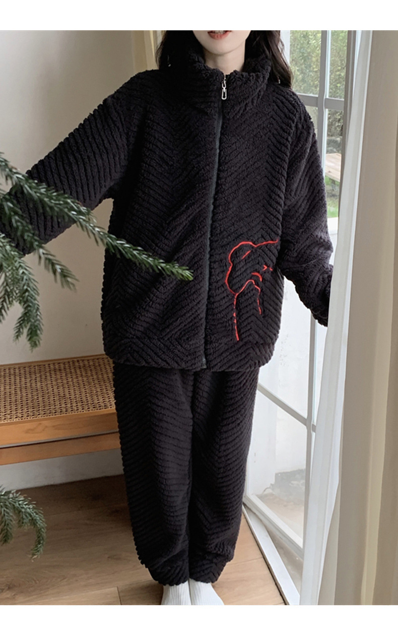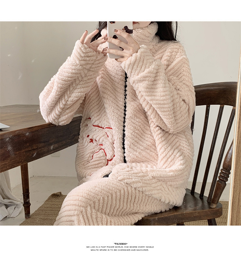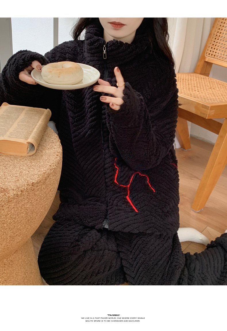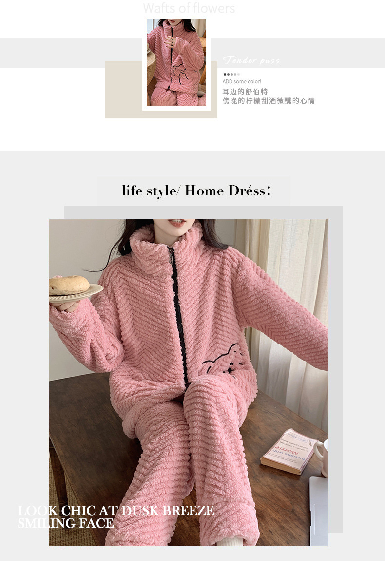冬季珊瑚绒睡衣女2023年新款可爱小熊开衫拉链法兰绒家居服两件套