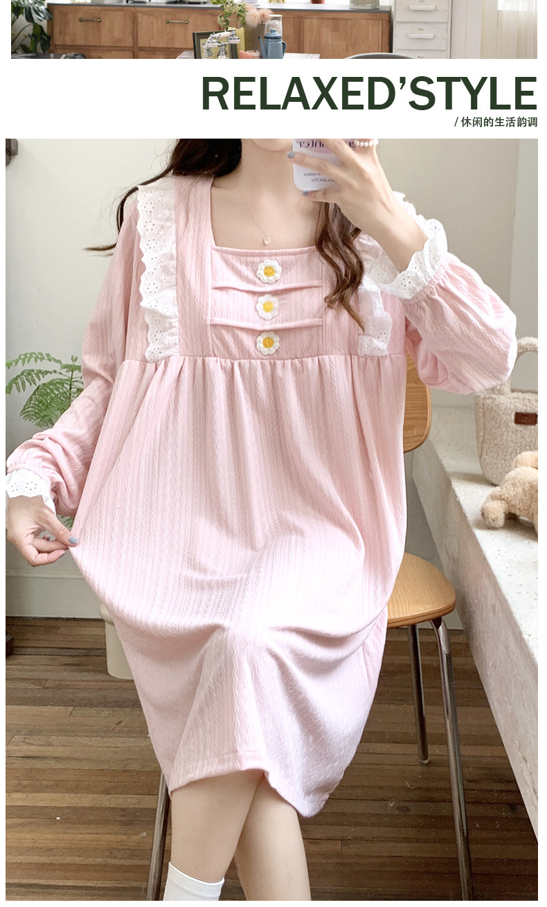 2023年秋天女长袖睡裙可爱甜美公主风新款舒适家居服可外穿带胸垫