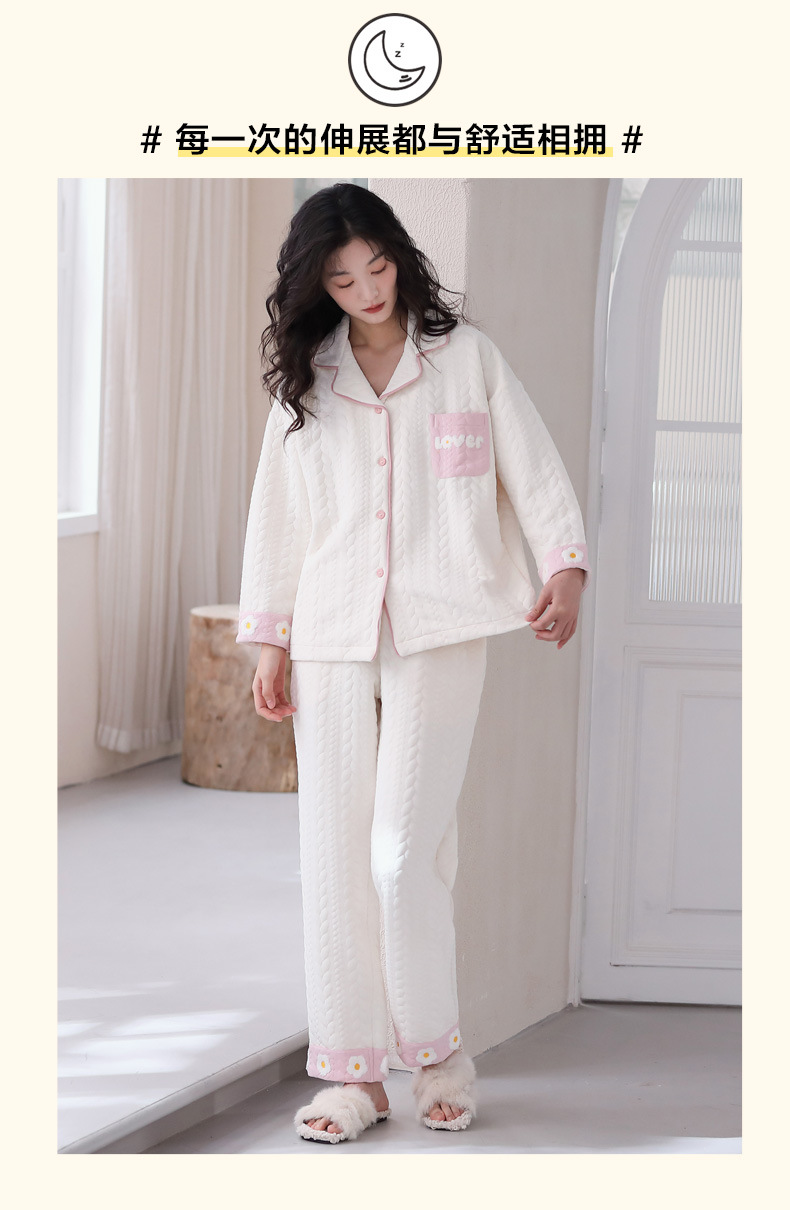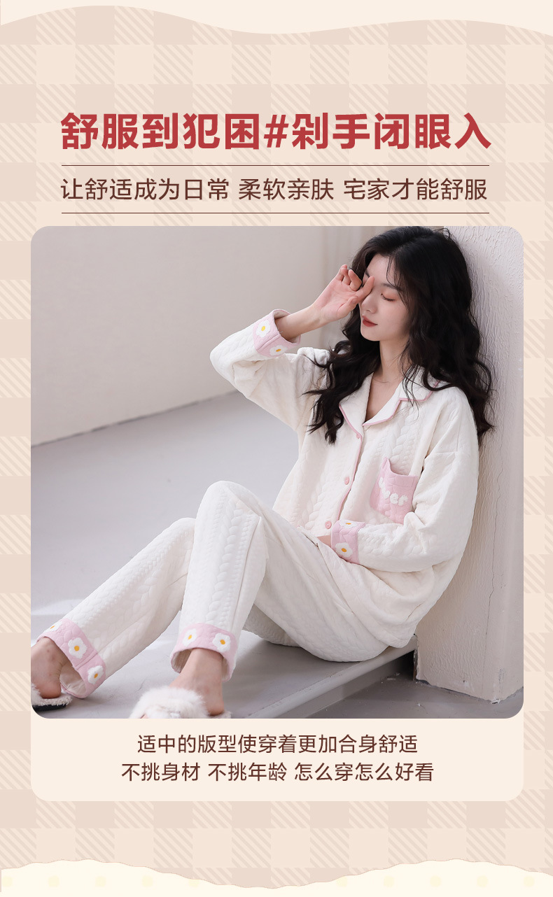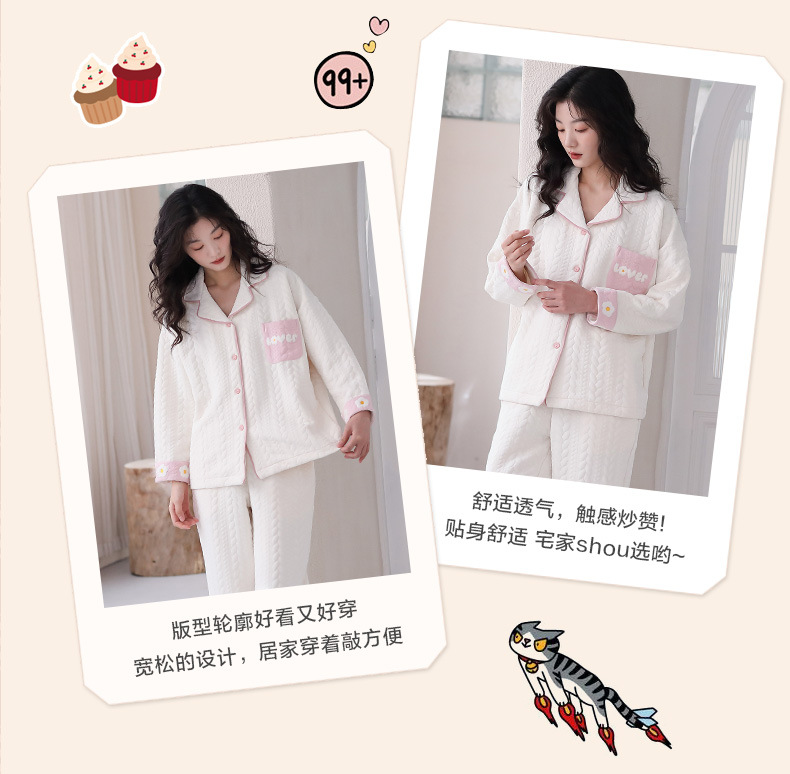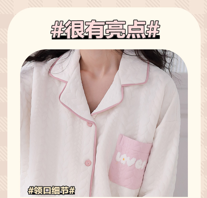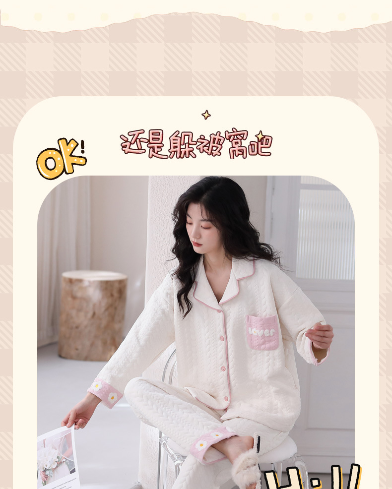 秋冬款空气夹棉睡衣女2023年新款可爱清新舒适保暖休闲家居服套装