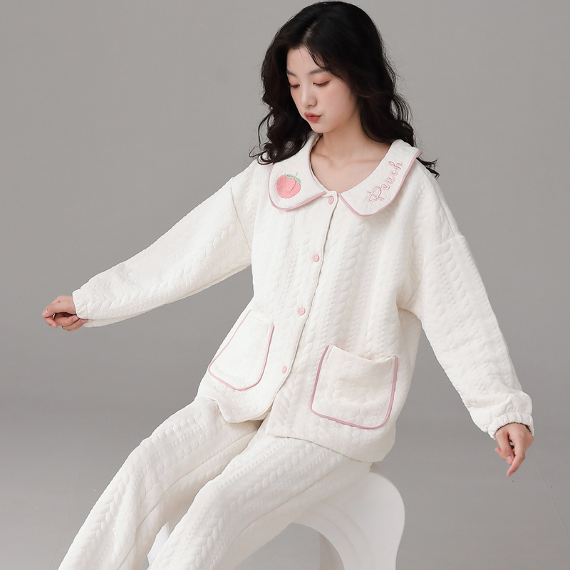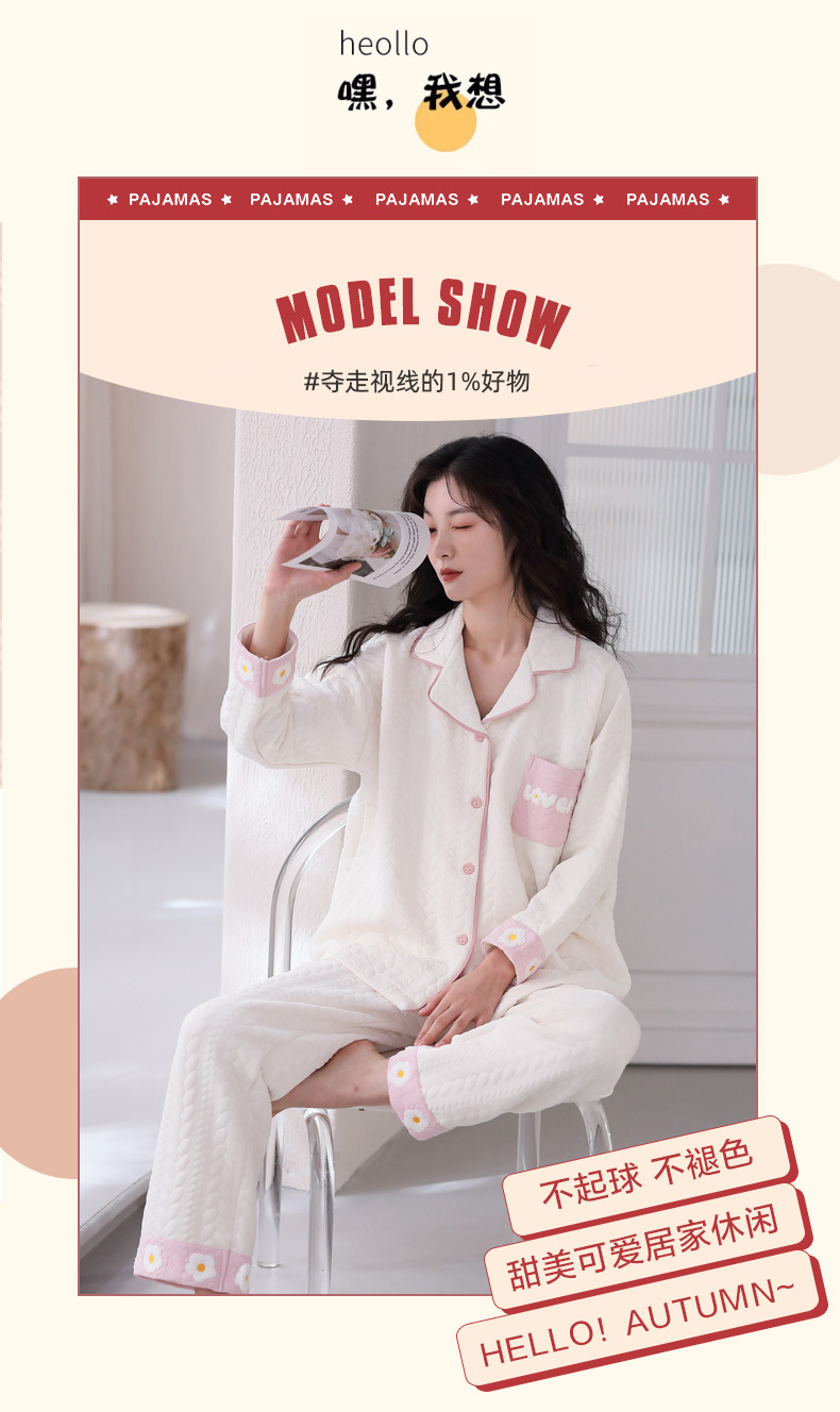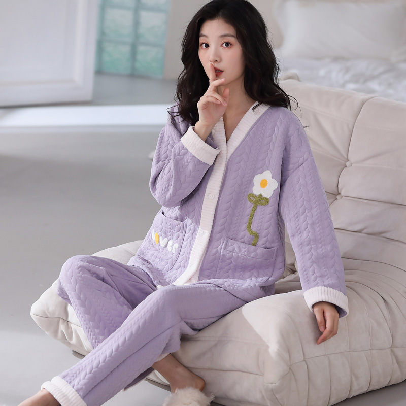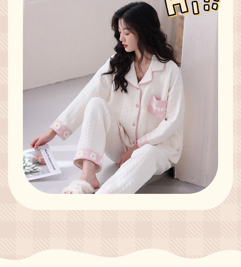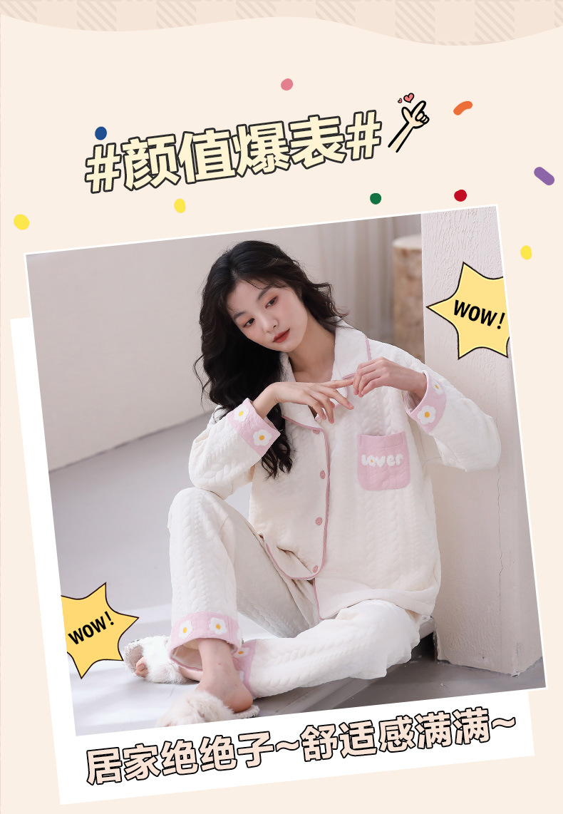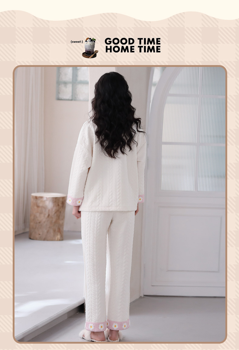秋冬款空气夹棉睡衣女2023年新款可爱清新舒适保暖休闲家居服套装