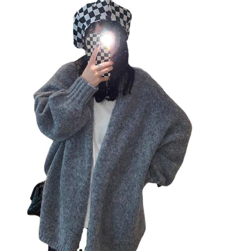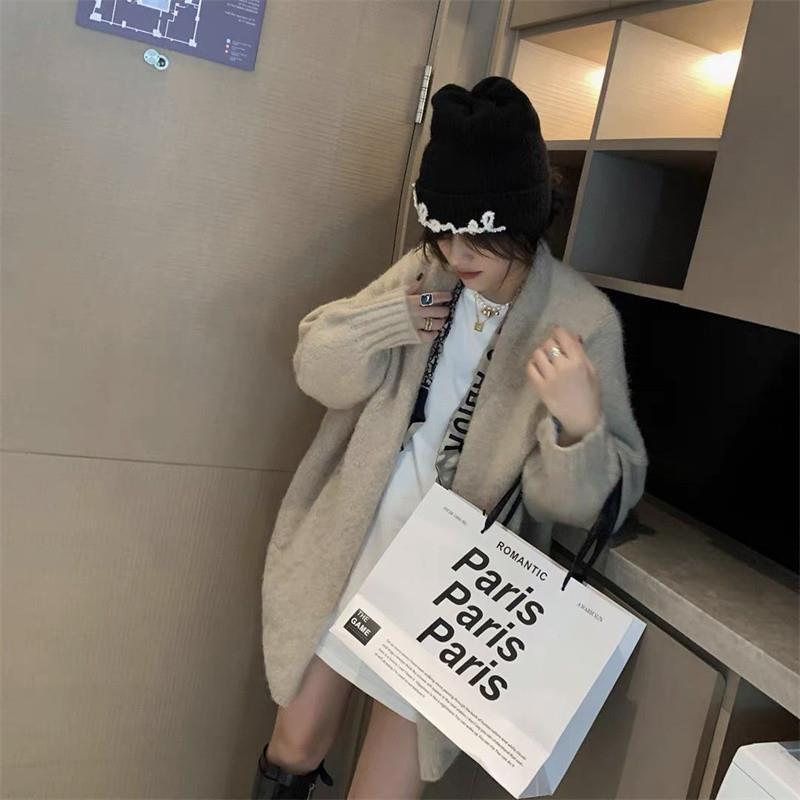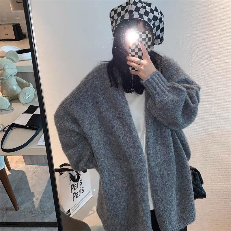 秋冬季中长款浣熊毛长袖针织开衫外套慵懒加厚毛衣女外搭韩系温柔