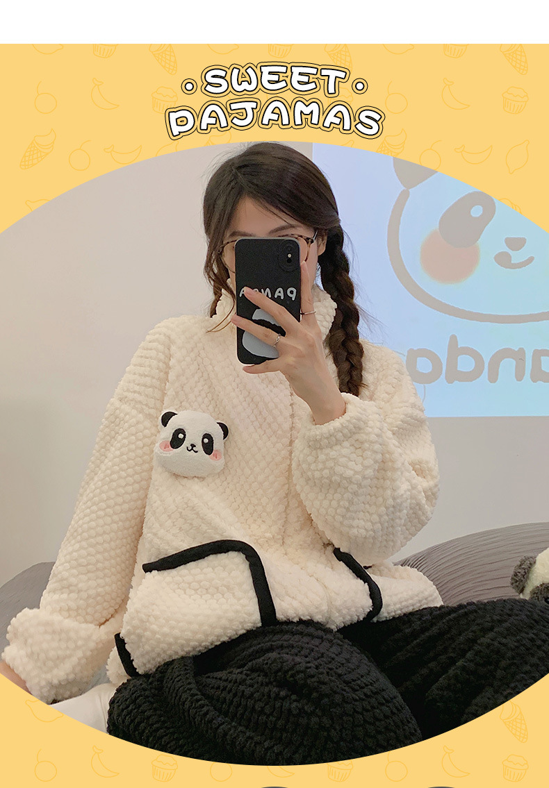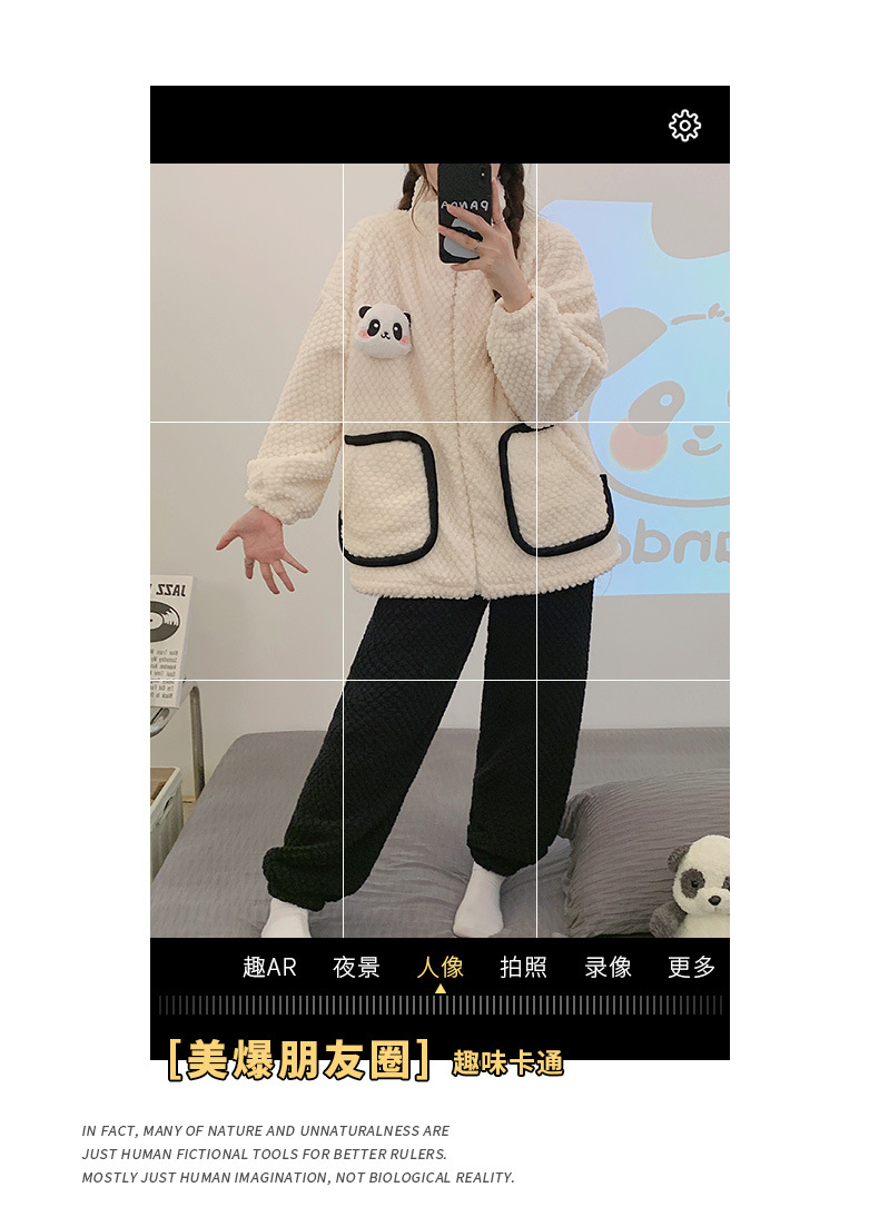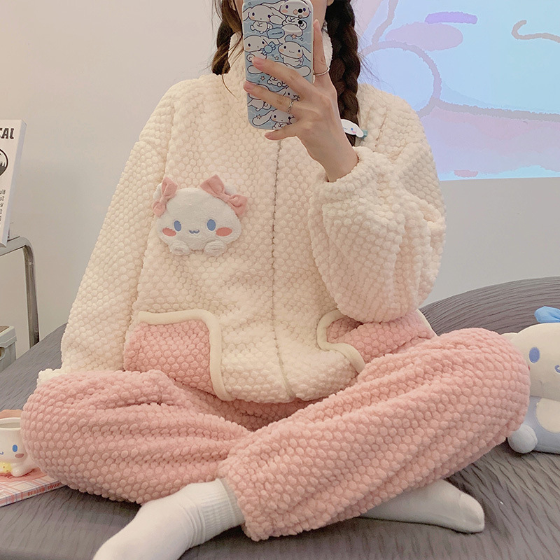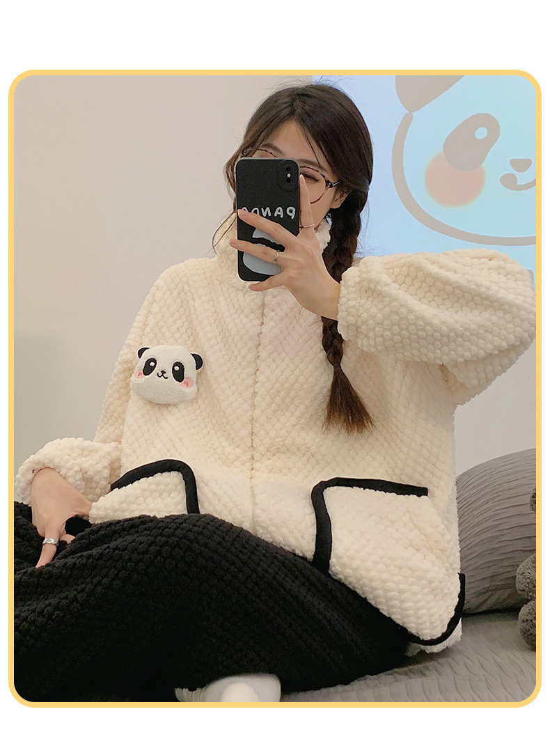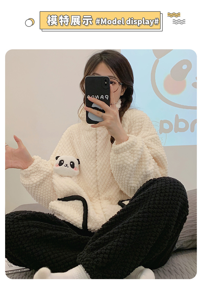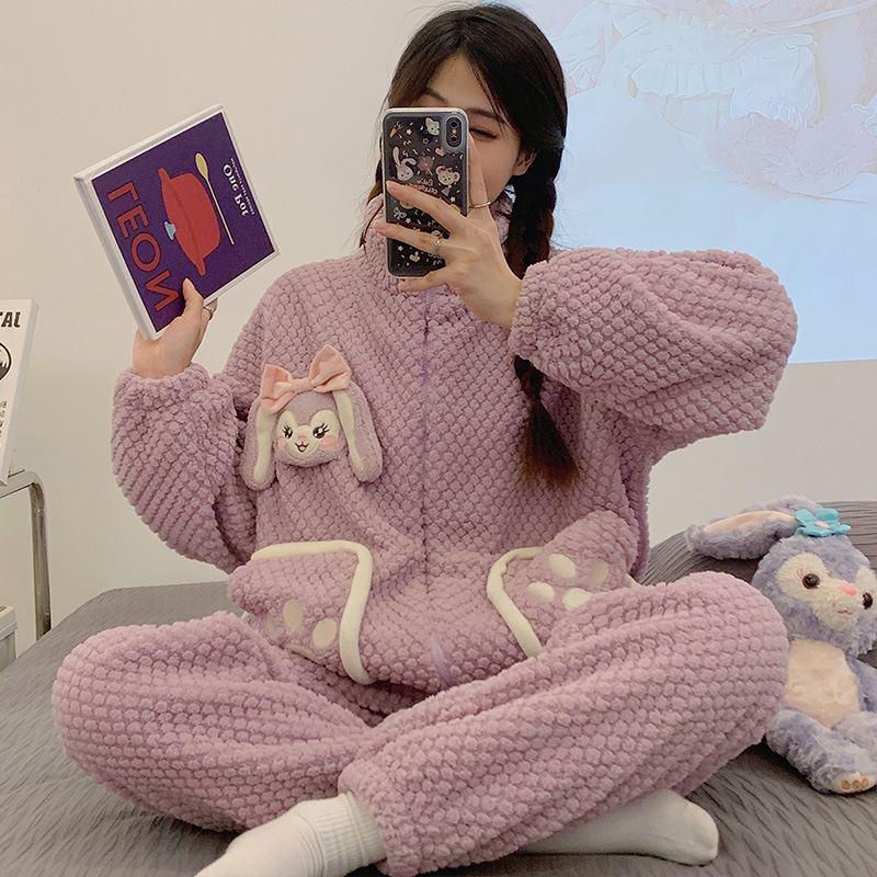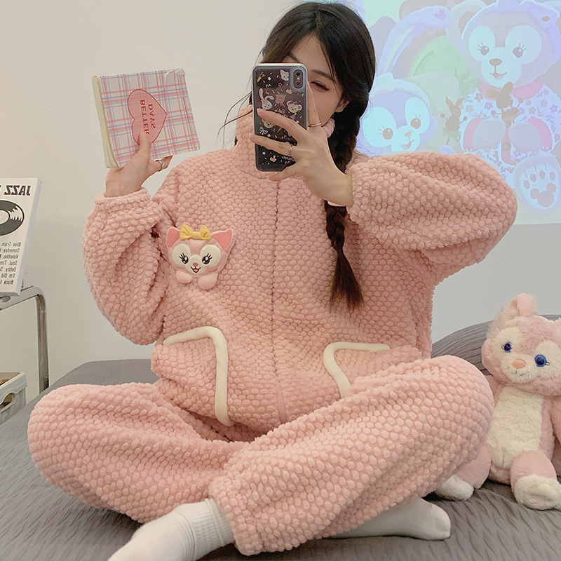 睡衣女可爱卡通风2023冬季新款珊瑚绒舒适保暖加厚开衫拉链家居服