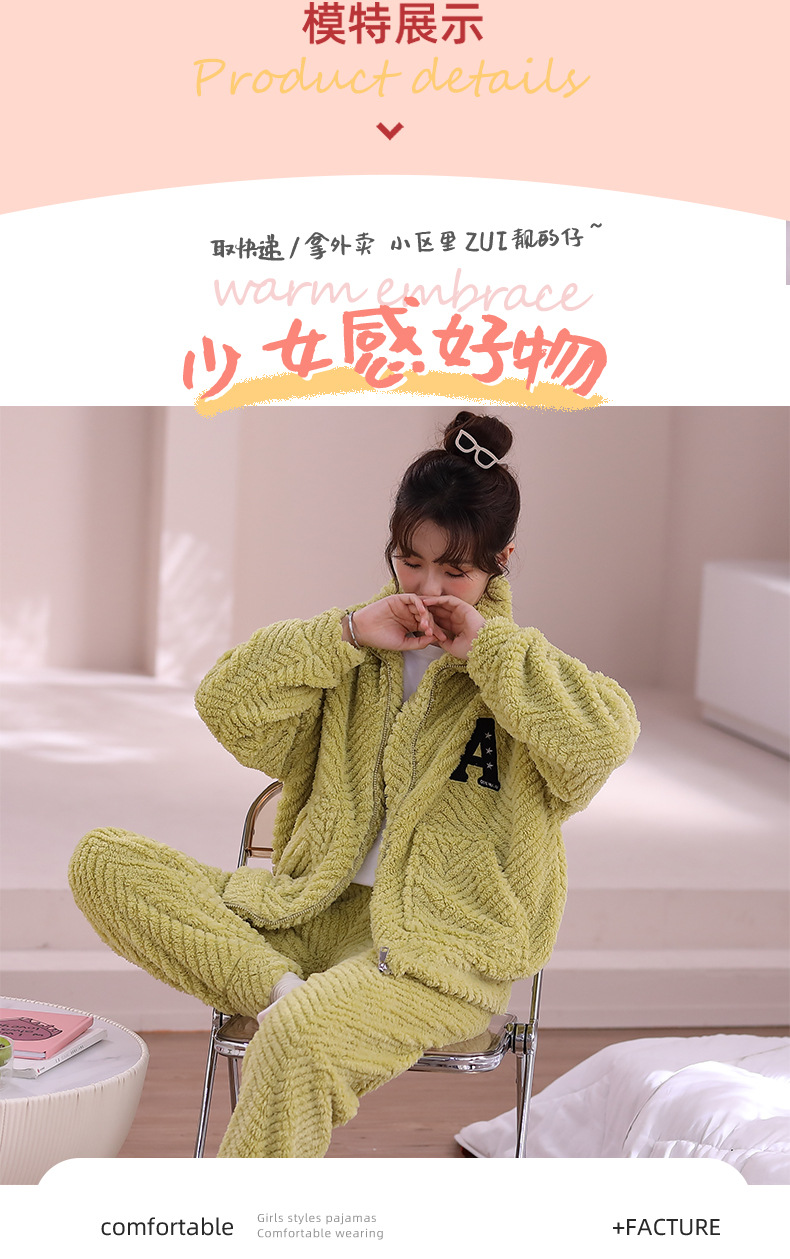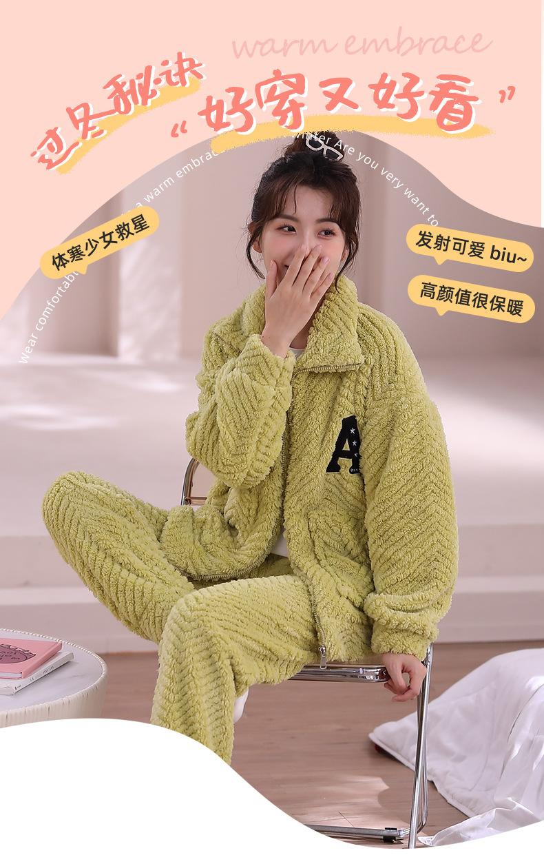 睡衣女秋冬季加厚加绒珊瑚绒可爱2023年新款春秋天保暖家居服套装