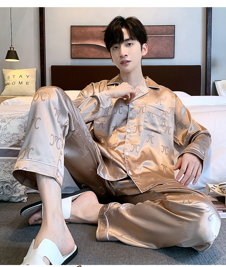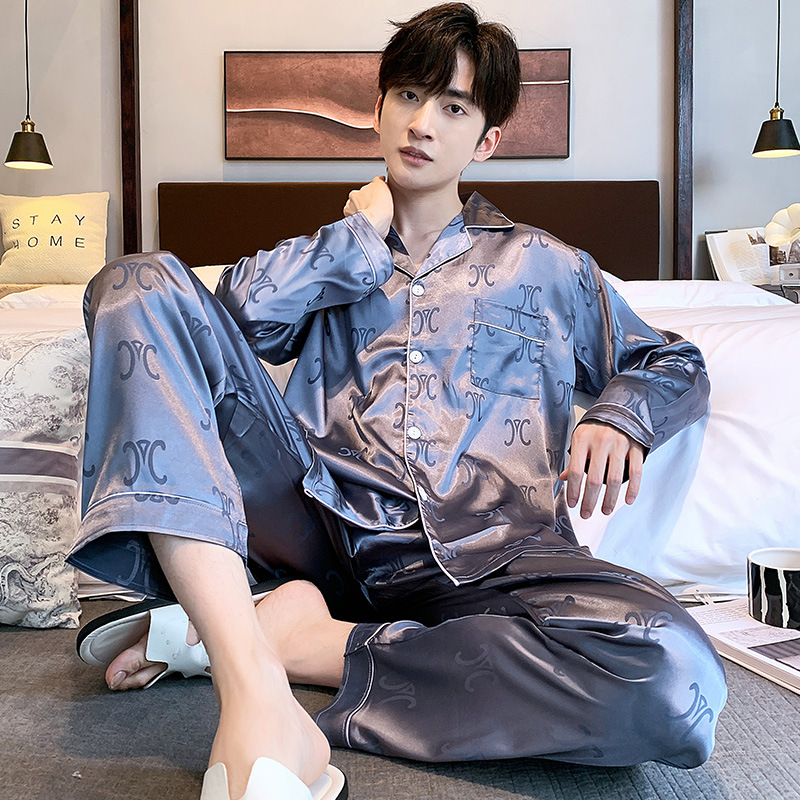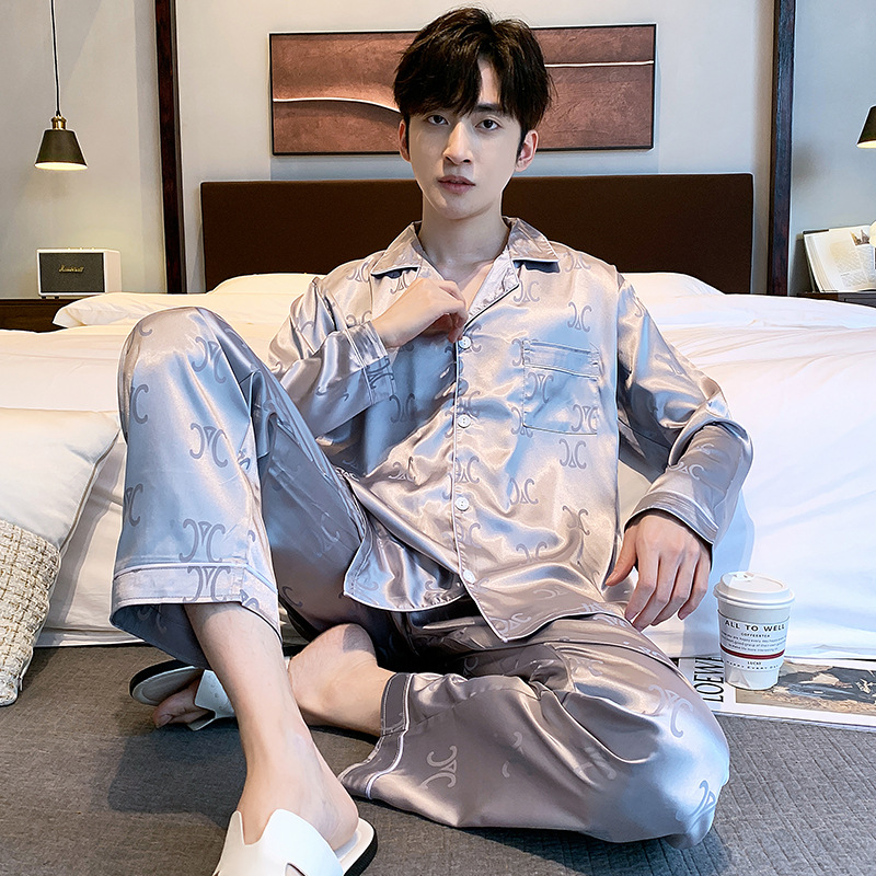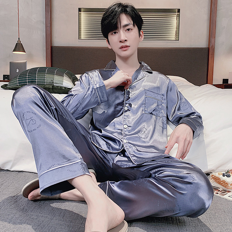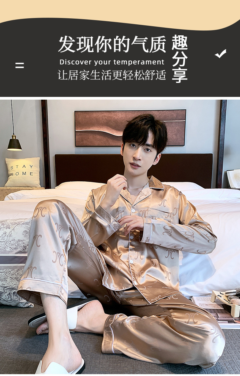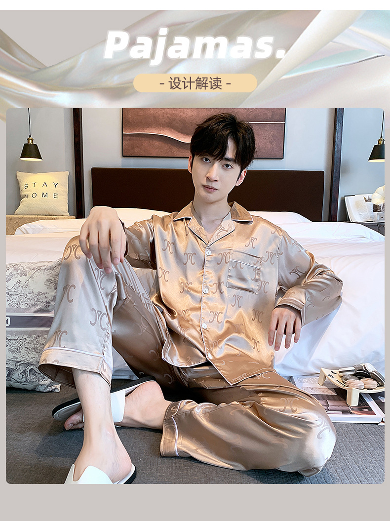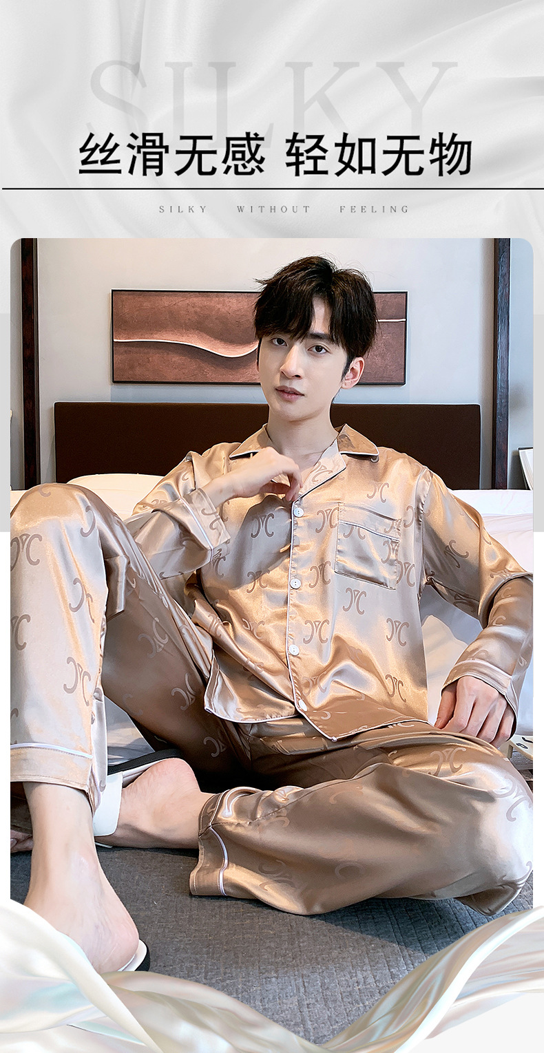 冰丝睡衣男士春秋季夏天长袖薄款仿真丝绸四季款家居服2023年新款