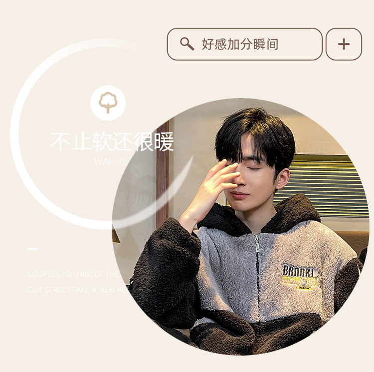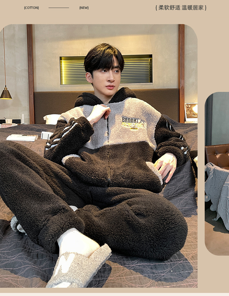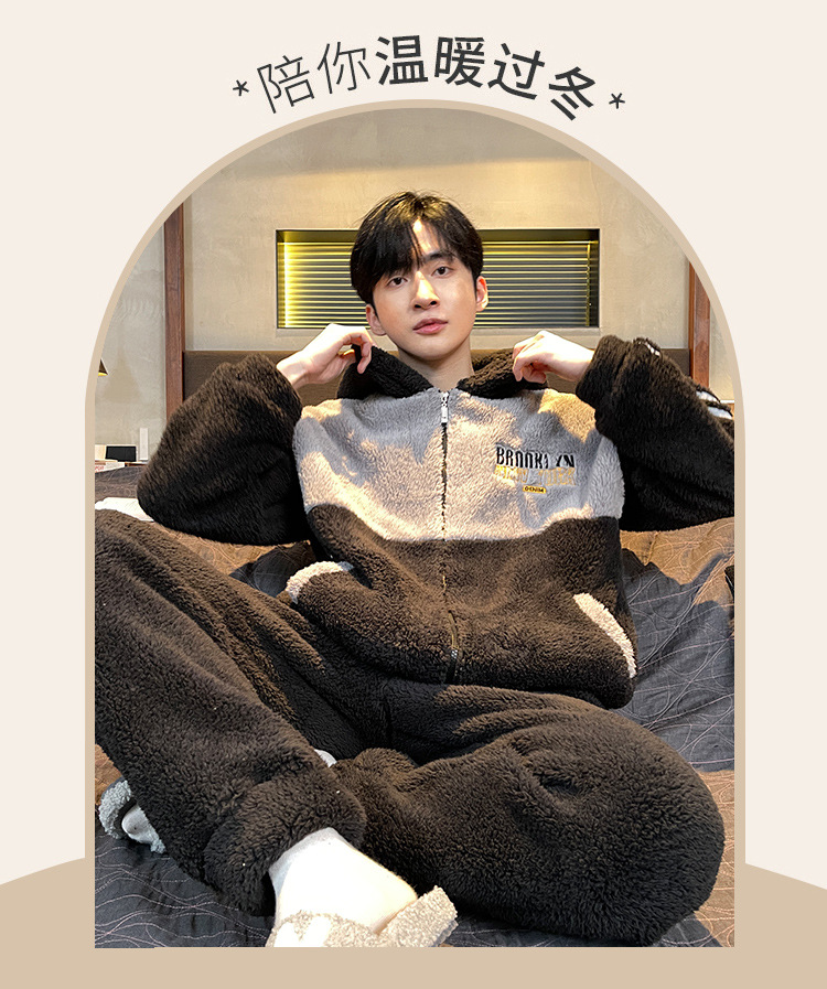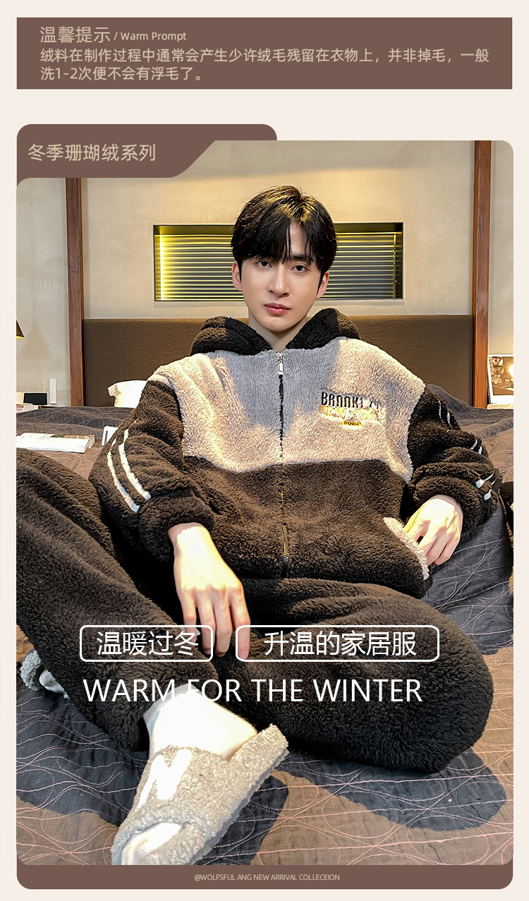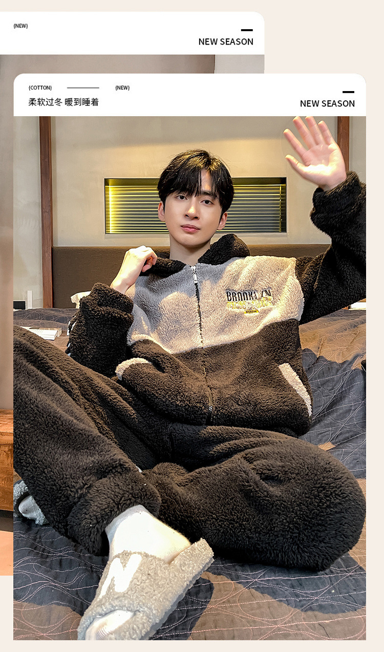 2023年新款珊瑚绒睡衣男加厚保暖舒适法兰绒时尚家居服可外穿套装