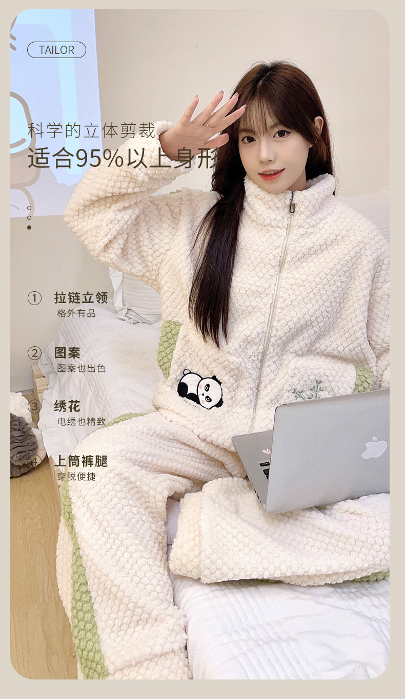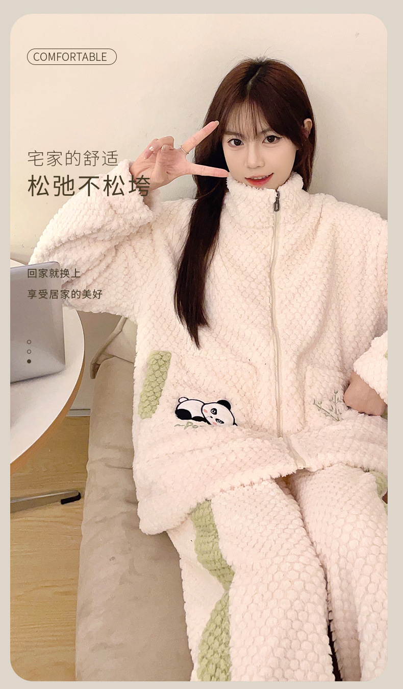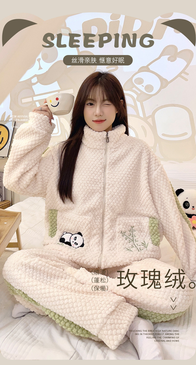 睡衣女珊瑚绒2023年冬季新款可爱开衫加厚法兰绒感家居服套装