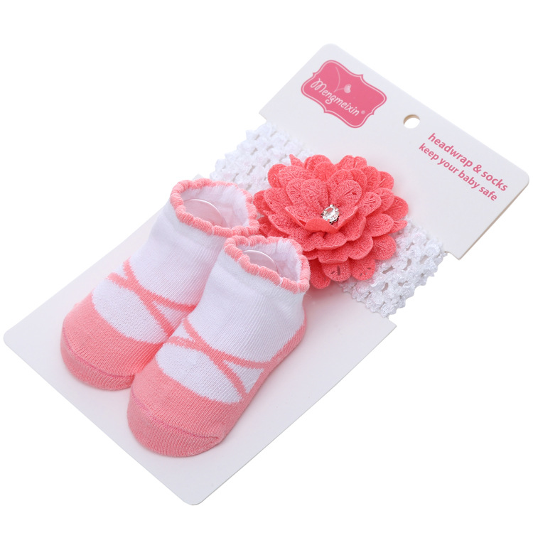 外贸货源糖果公主欧美新生儿袜子 蝴蝶结印花婴儿袜子发带套装