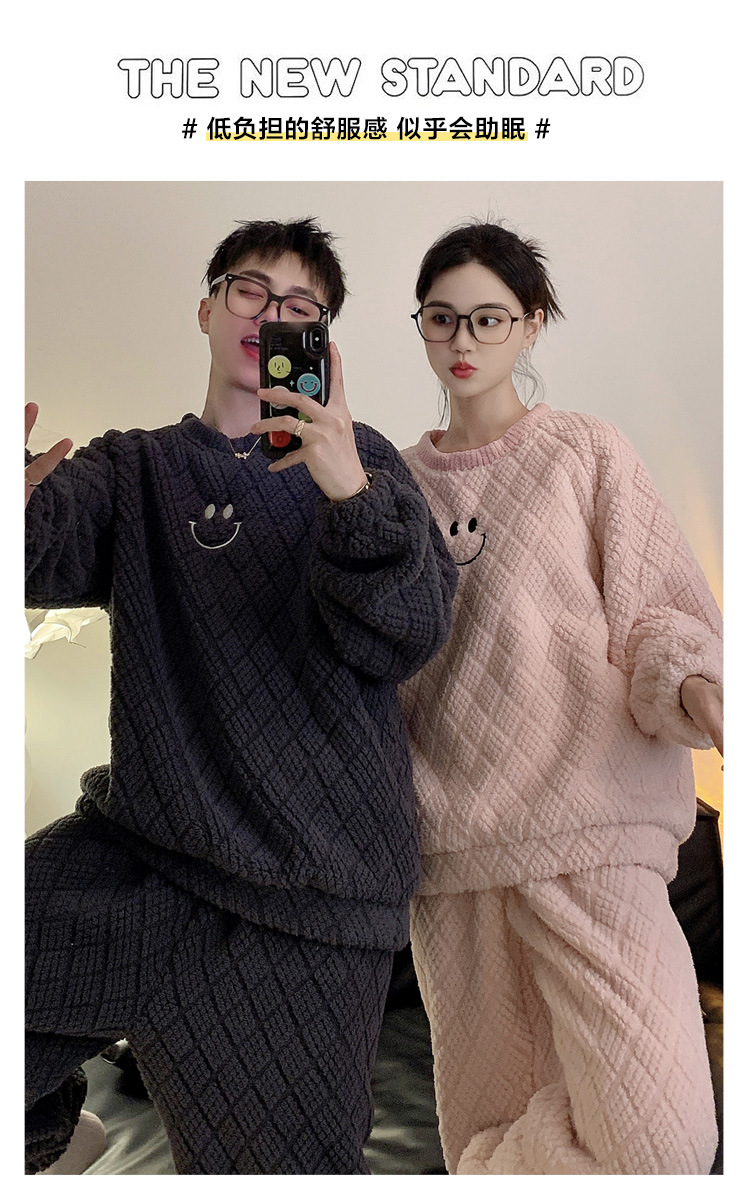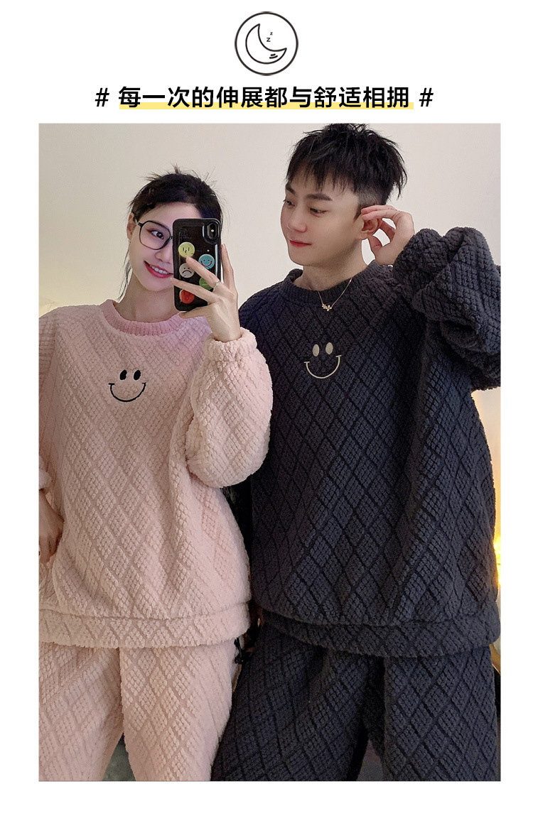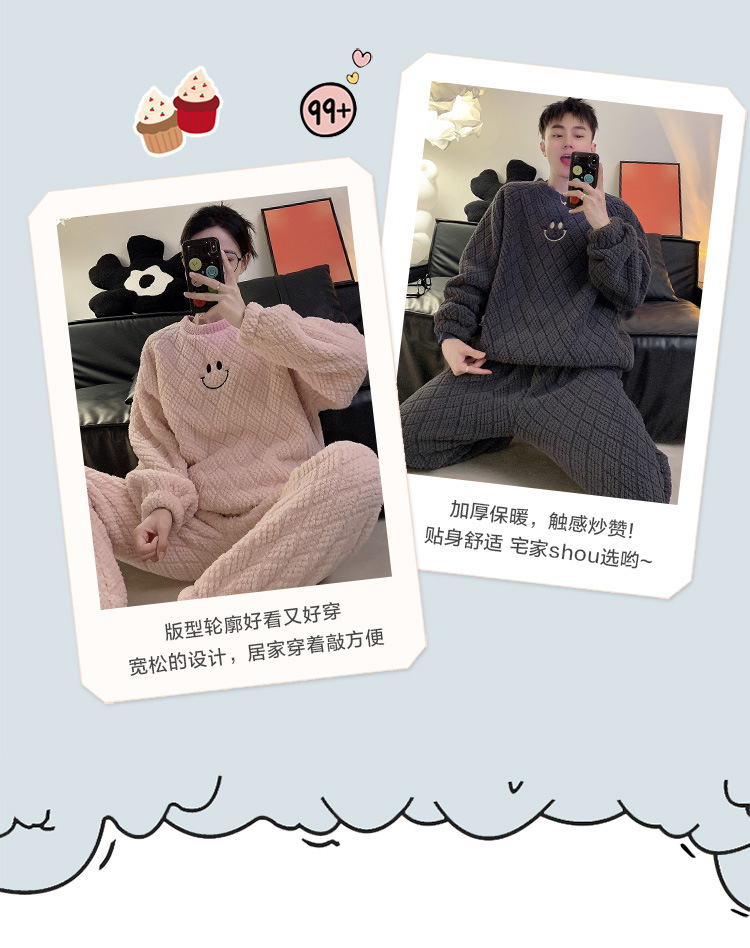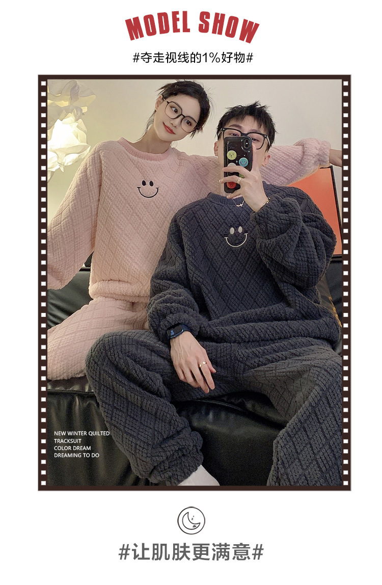 情侣睡衣2023冬季新款珊瑚绒保暖时尚感法兰绒家居服套装