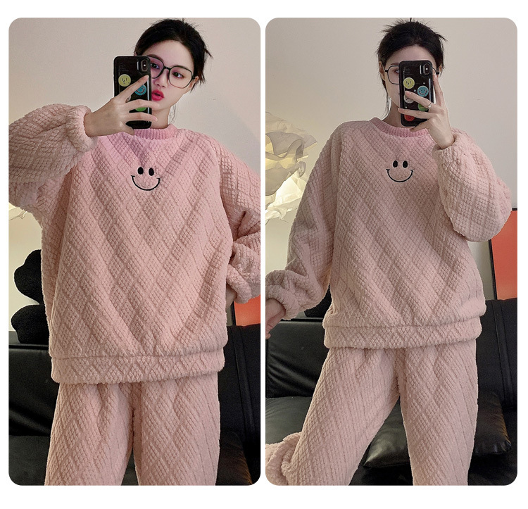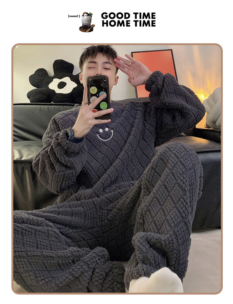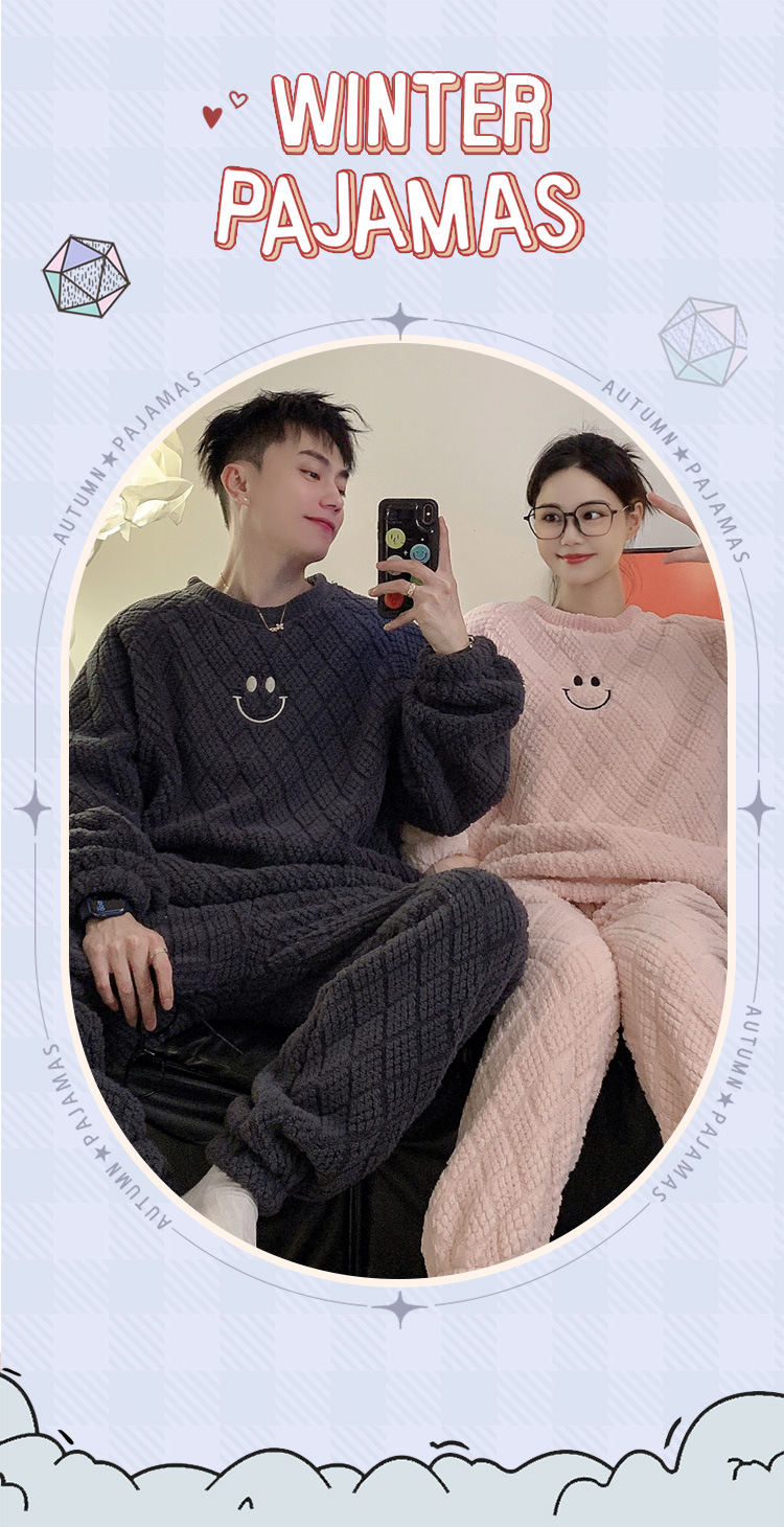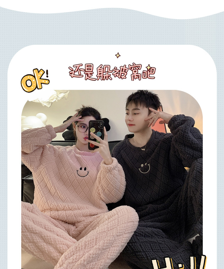 情侣睡衣2023冬季新款珊瑚绒保暖时尚感法兰绒家居服套装