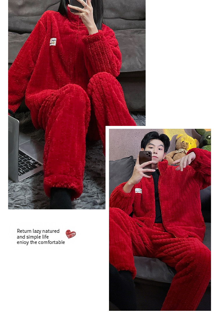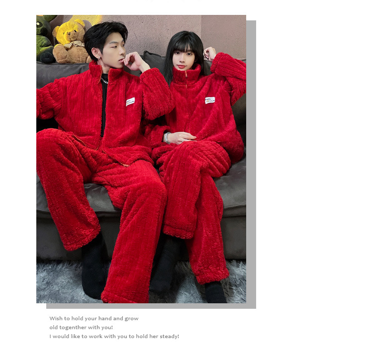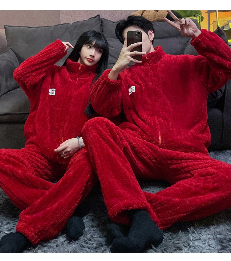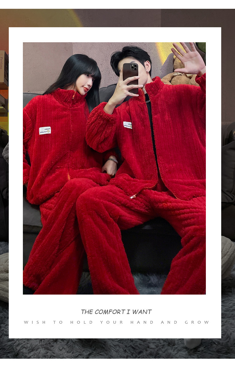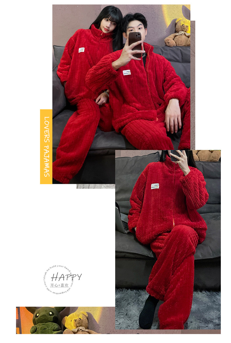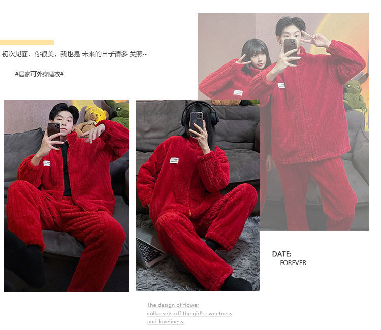 情侣睡衣冬季2023年新款珊瑚绒套装时尚喜庆加厚法兰绒家居服