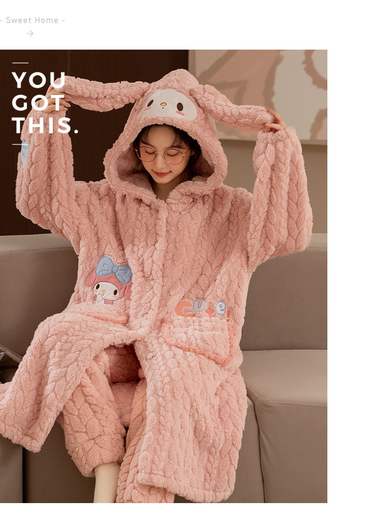 2023年新款可爱甜美风珊瑚绒睡袍女舒适保暖套装法兰绒家居服套装