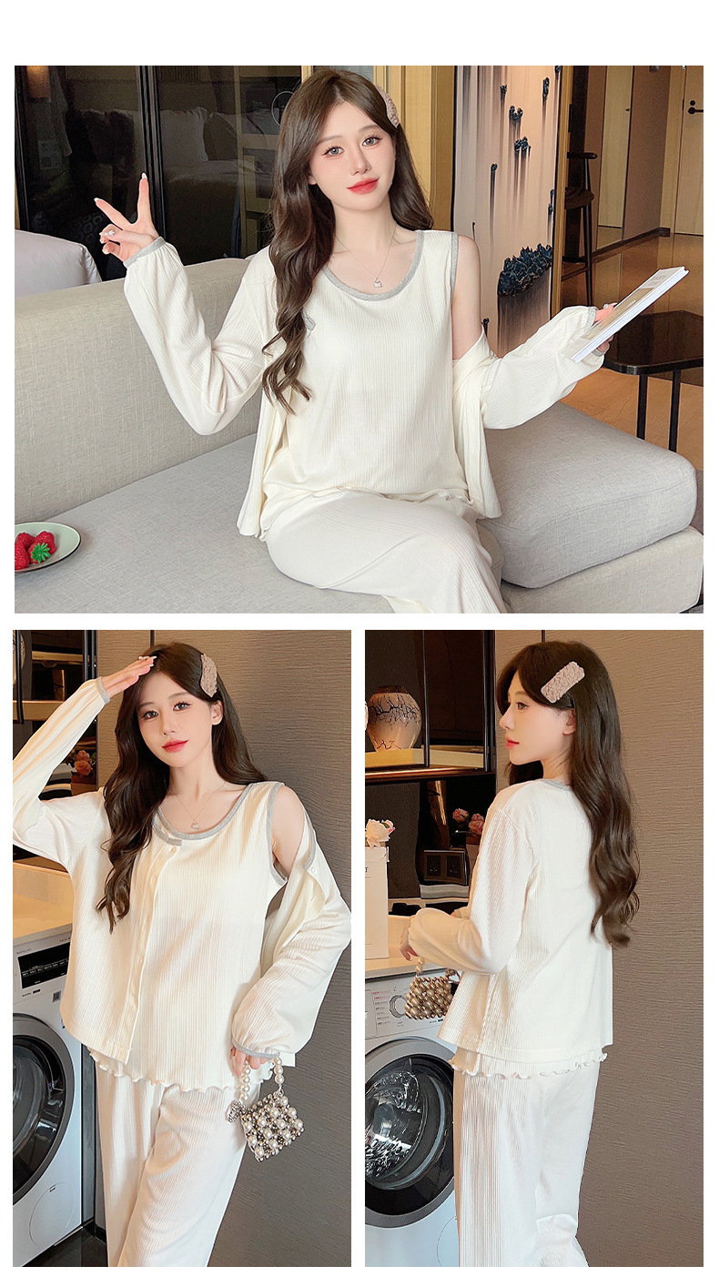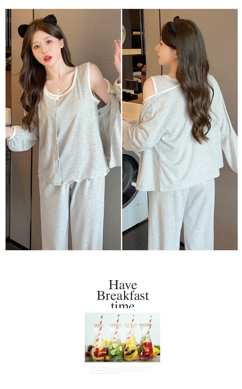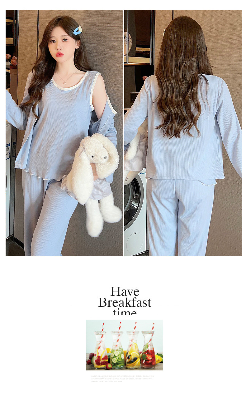2023秋季新款三件套睡衣女可爱公主风棉质家居服套装可外穿带胸垫