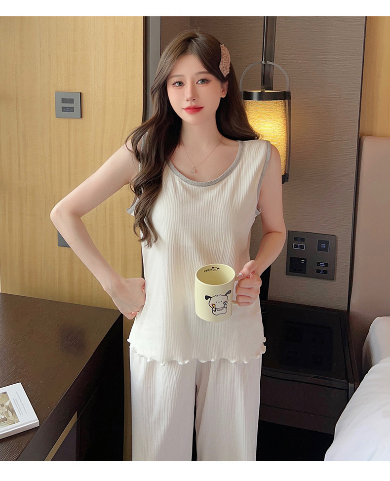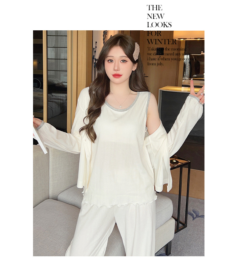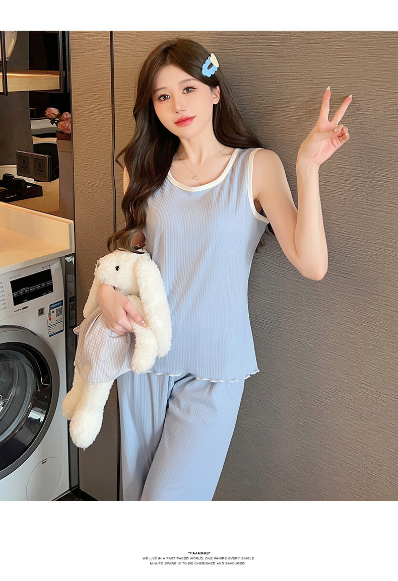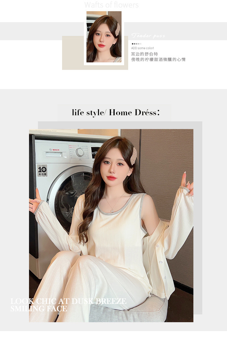 2023秋季新款三件套睡衣女可爱公主风棉质家居服套装可外穿带胸垫
