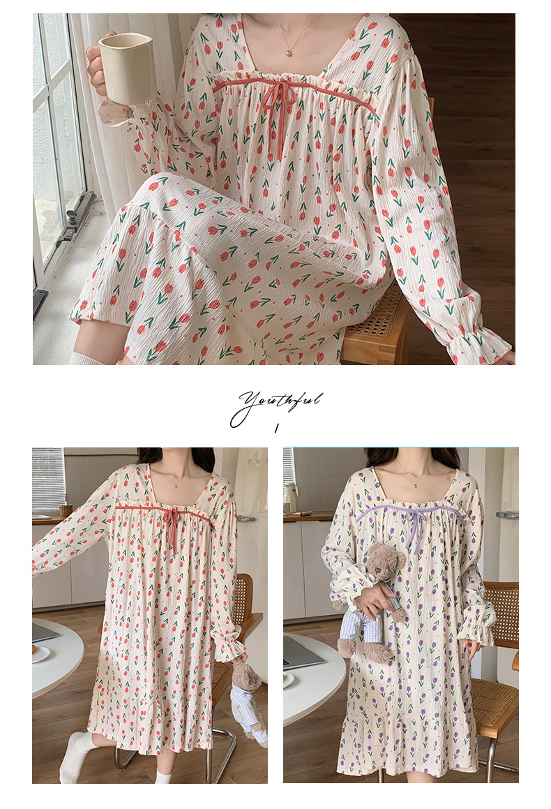 2023睡裙女秋季新款可爱甜美闺蜜装长裙家居服带可拆卸胸垫可外穿