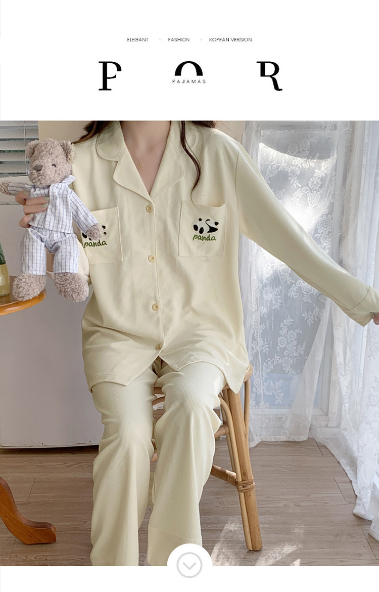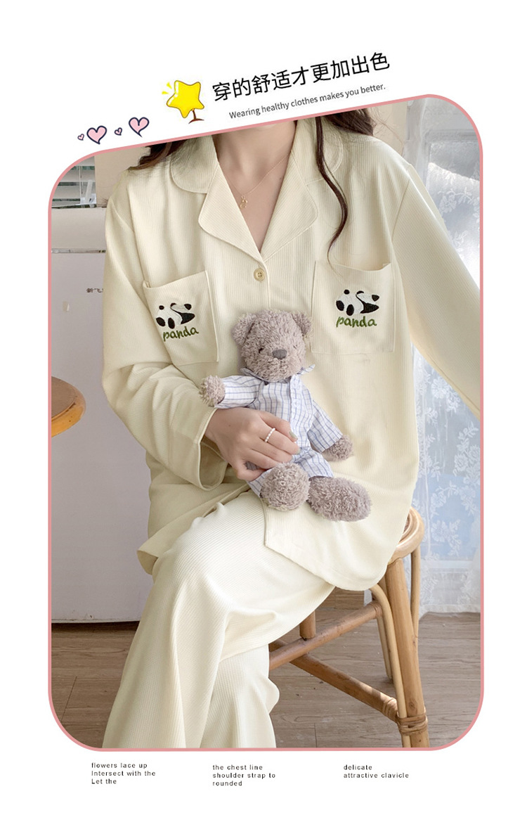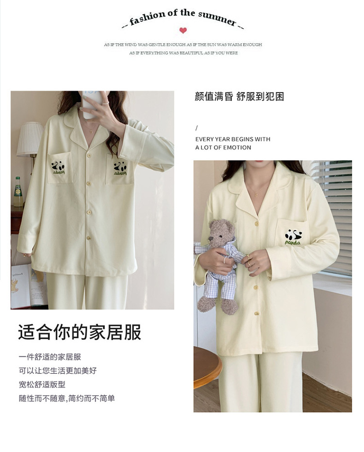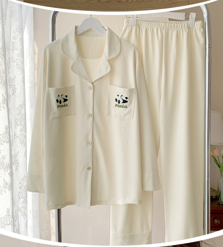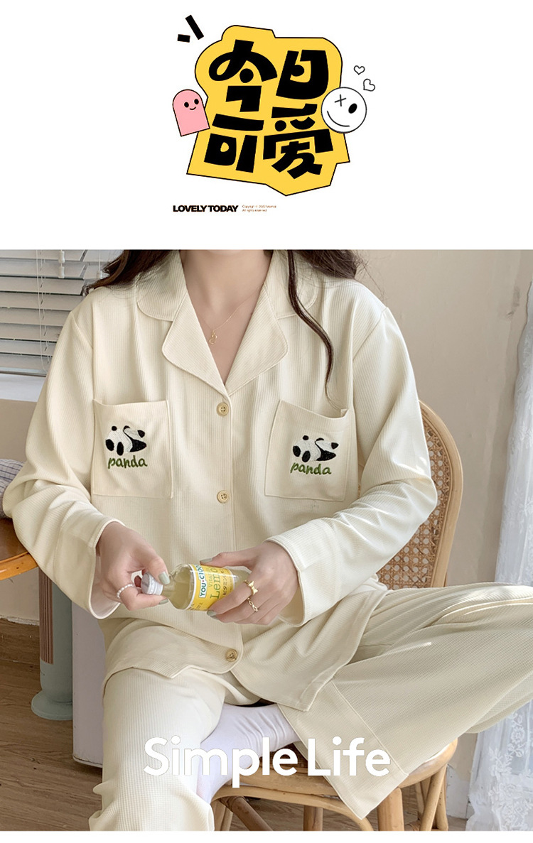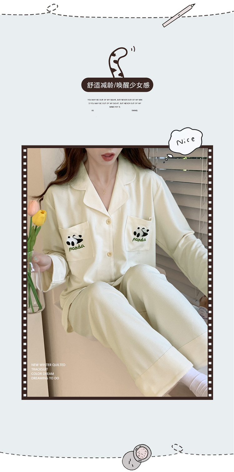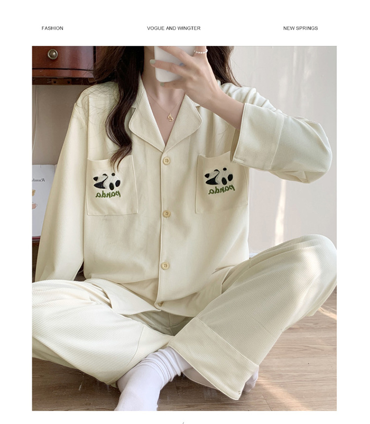 秋天开衫睡衣女士卡通可爱小清新华夫格家居服2023年新款舒适套装